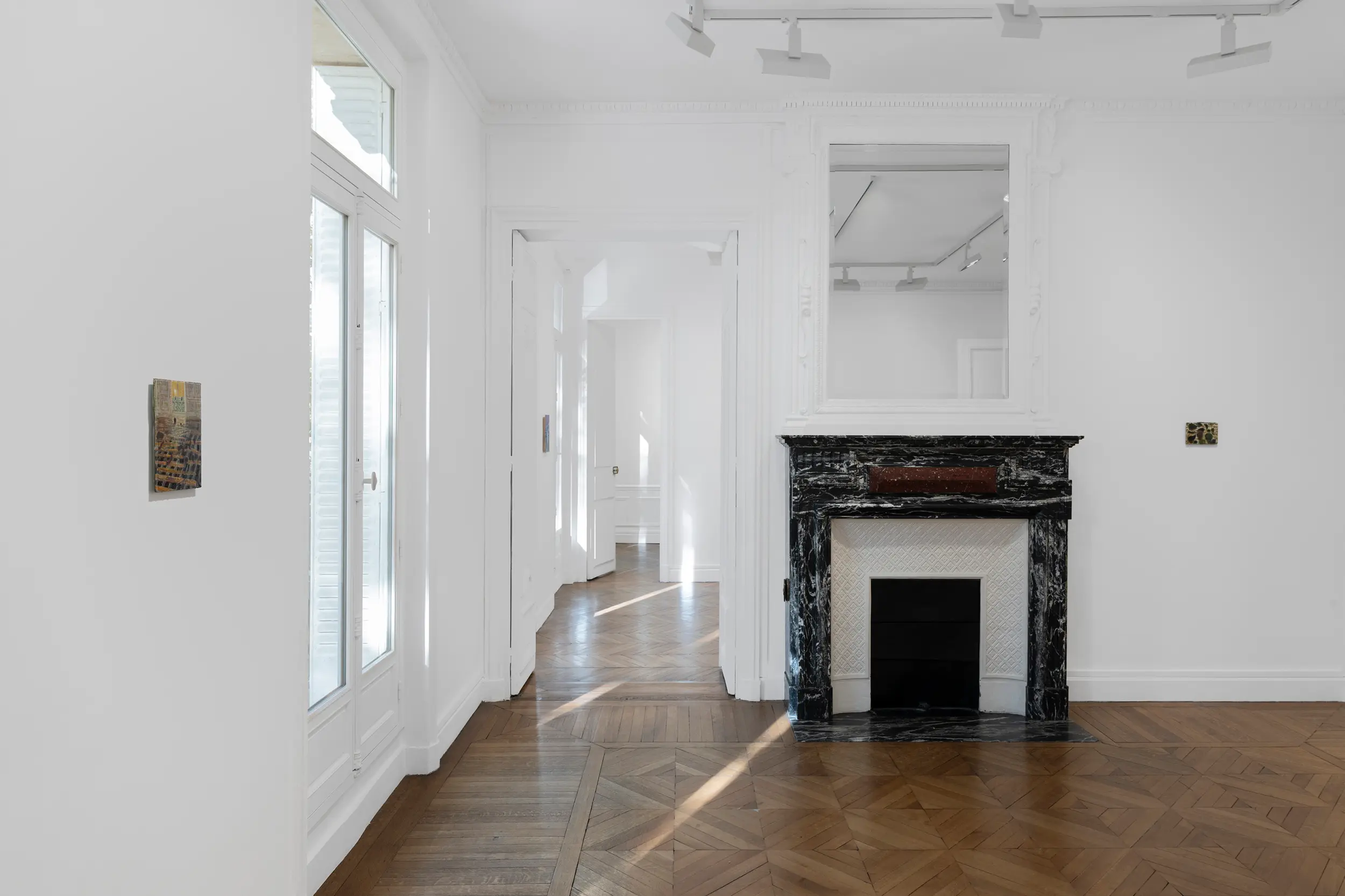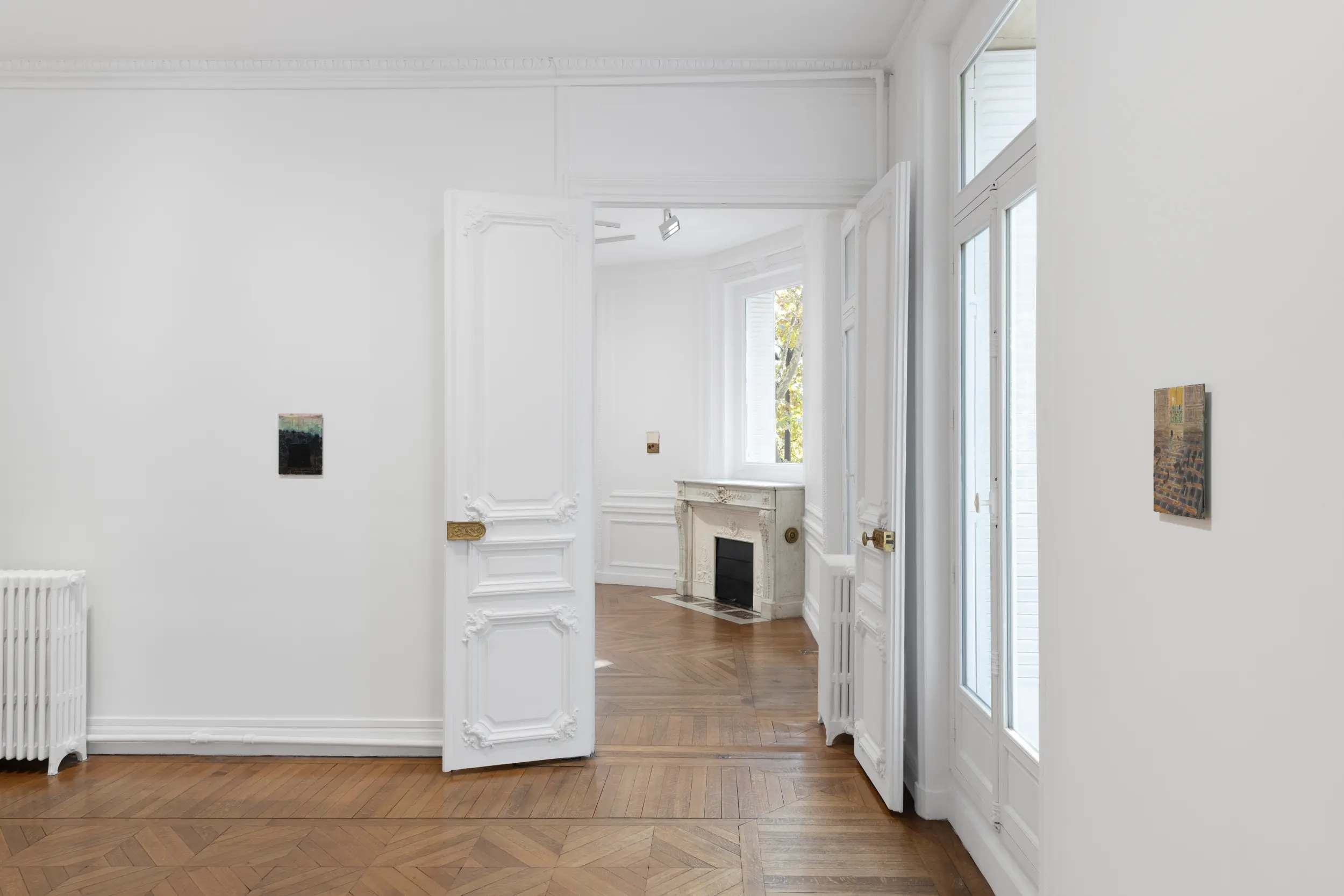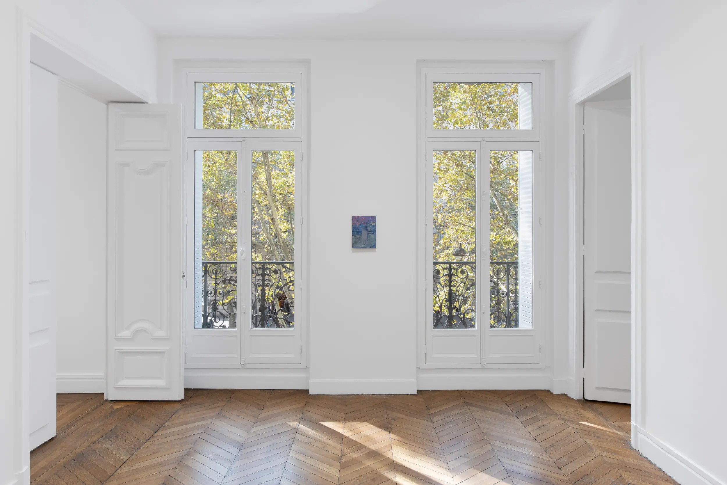 This group of paintings continues the artist’s ongoing and daily studio practice of painting on hardback book covers. Each cover acts as a portal or window to multiple histories, here calling upon influences ranging from Edgar Allan Poe, Gustave Caillebotte’s ‘floor scrapers’, and the artist’s own memories.