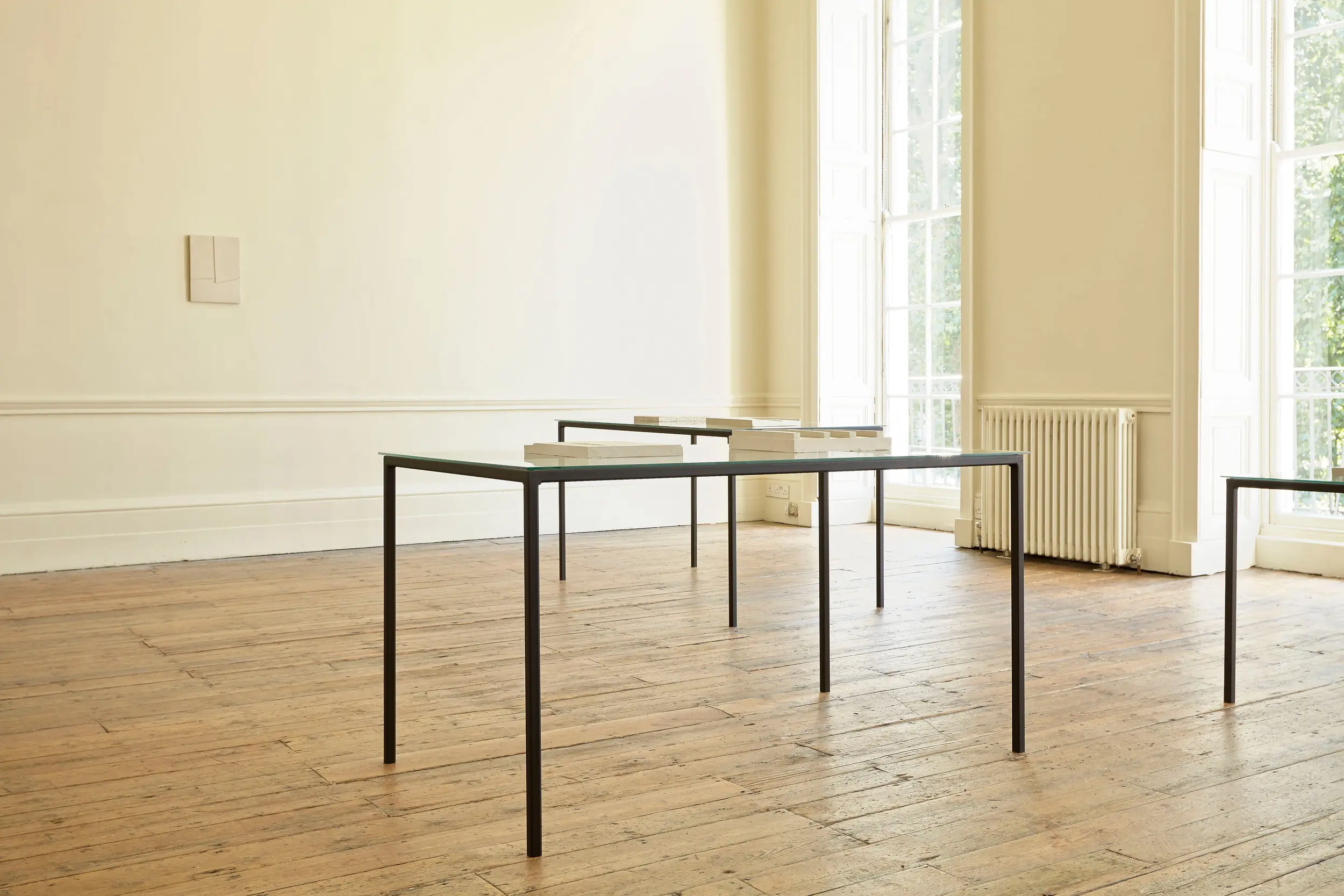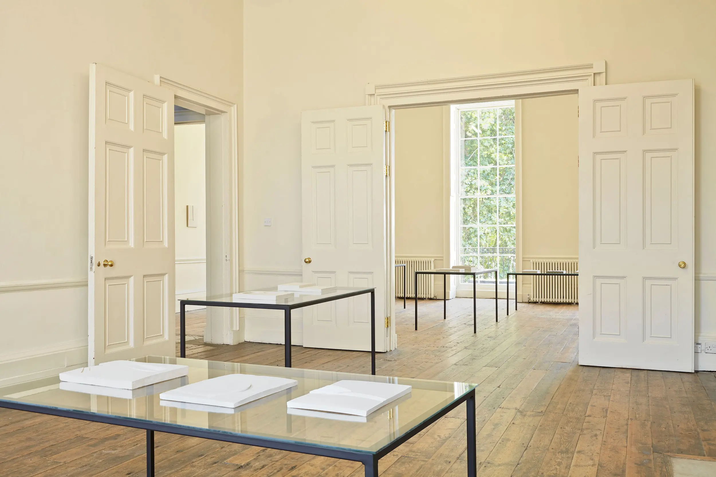 Anna-Bella Papp makes delicate tablet-like reliefs, sculpted by hand in unfired clay. Her work is shown flat on a table, or hung on the wall.
