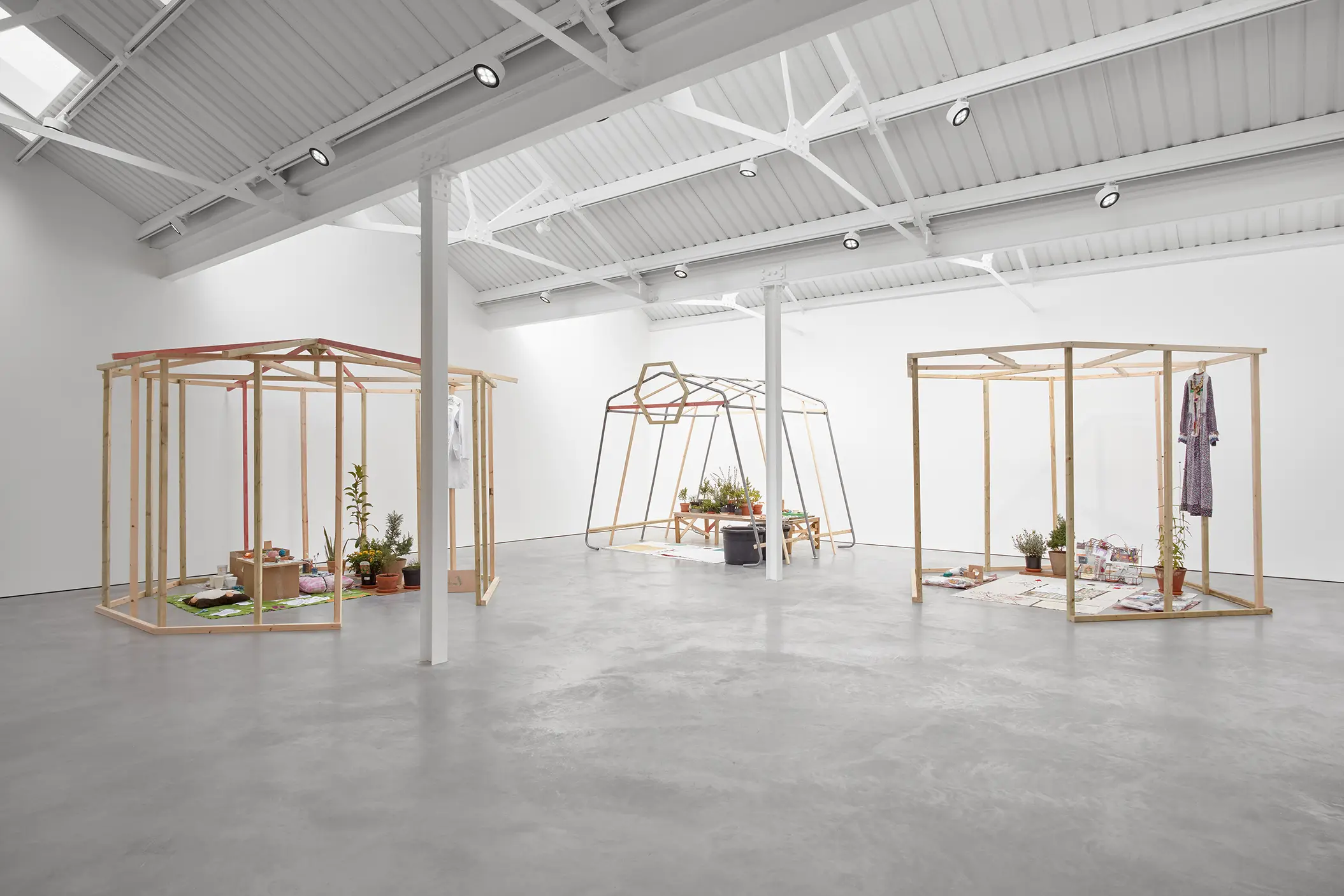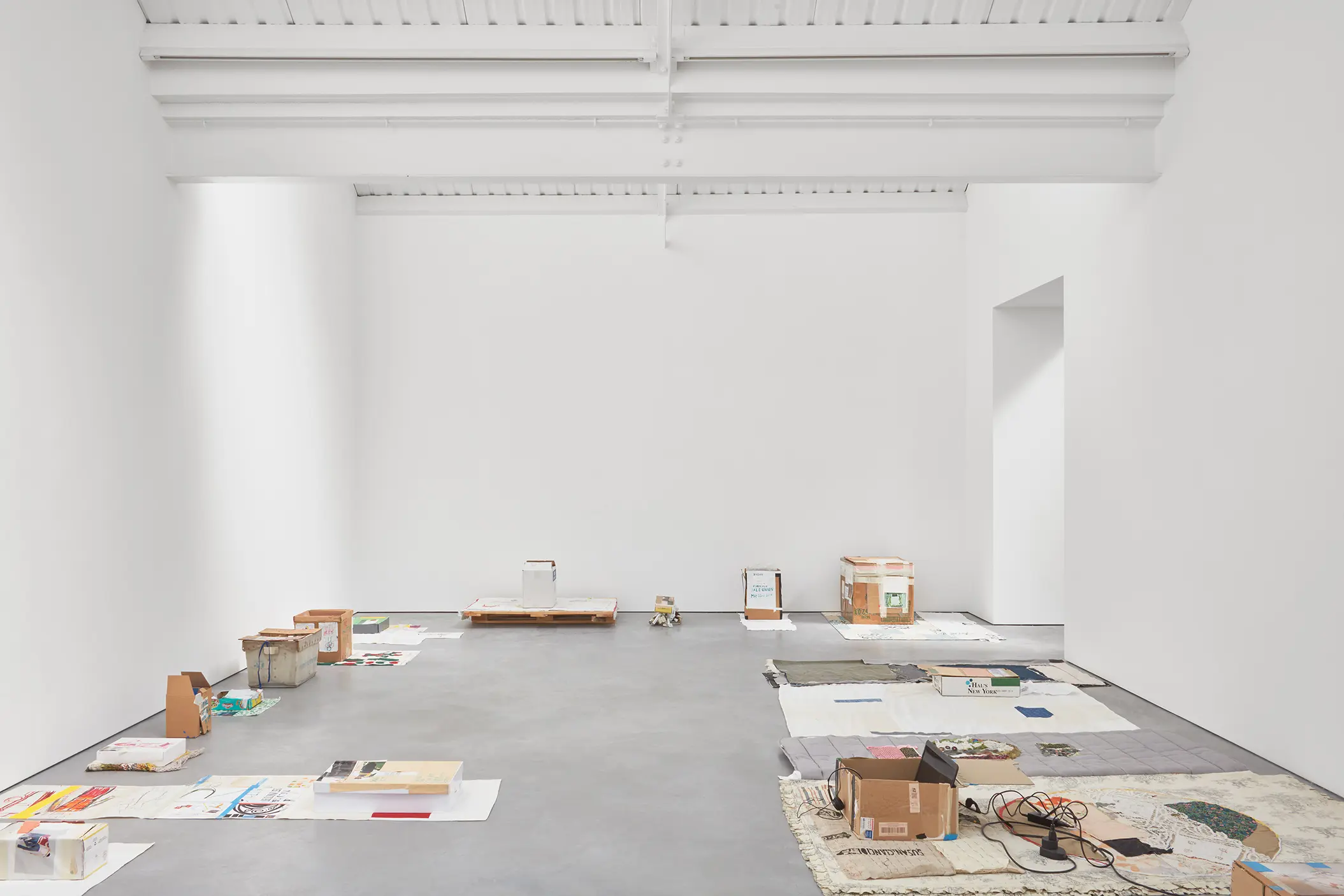 Susan Cianciolo’s works are composite things. Their material elements include fragments of sculptures, drawings, costumes, and meaningful units of ephemera from her life and work – the difference between which, for Cianciolo, is and has always been willfully eschewed. Her exhibition at Modern Art includes a selection of filled boxes that Cianciolo terms ‘kits’, a prototypical format of her work, which are assemblages of items from her archives that are reworked, and reformulated for public presentation as a tool-boxes cum biographical archives. Cianciolo’s exhibition will also include new body of sculptural works, tapestries, and drawings that characterize the many physical forms her work has taken across the arc of her oeuvre.