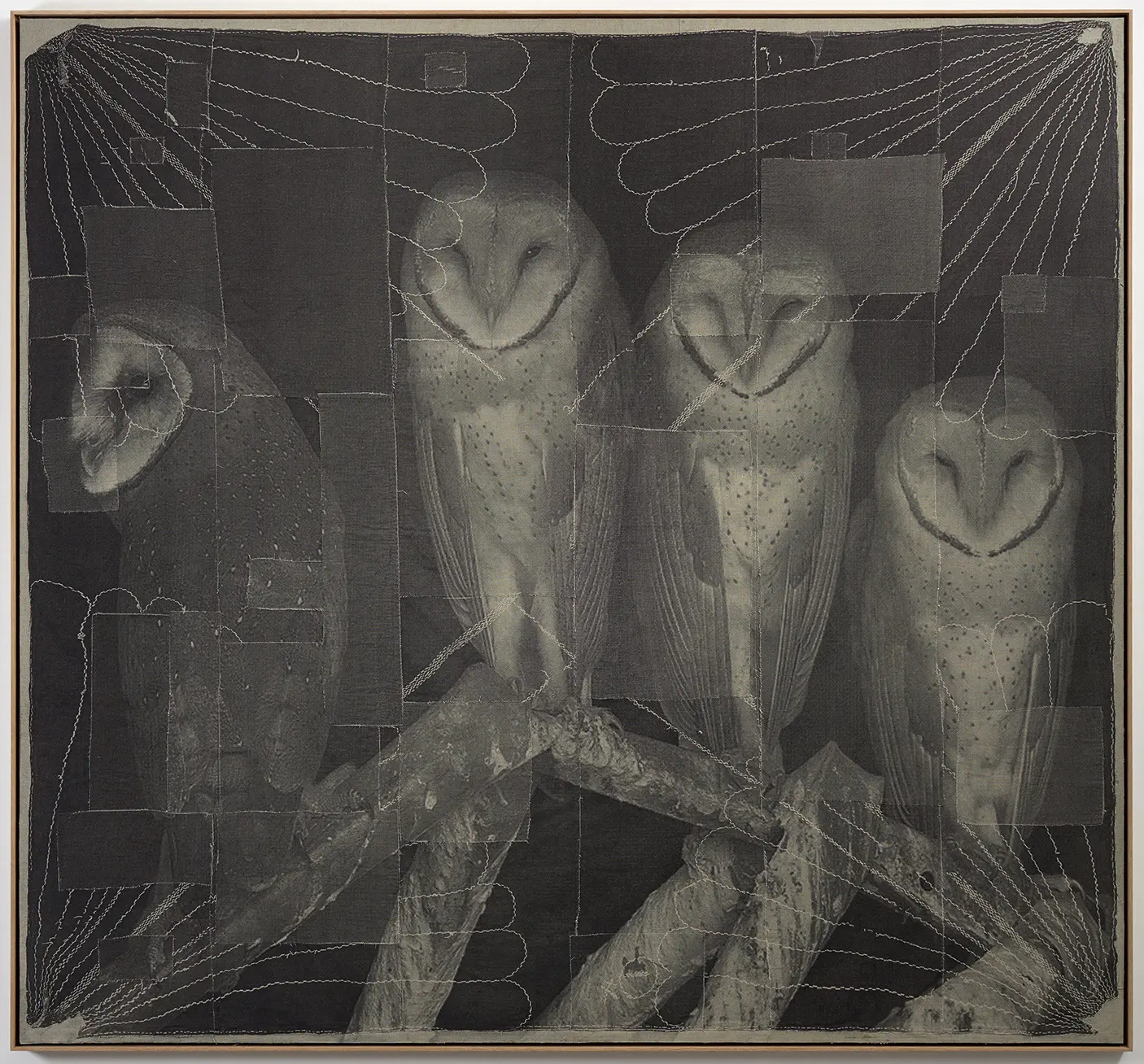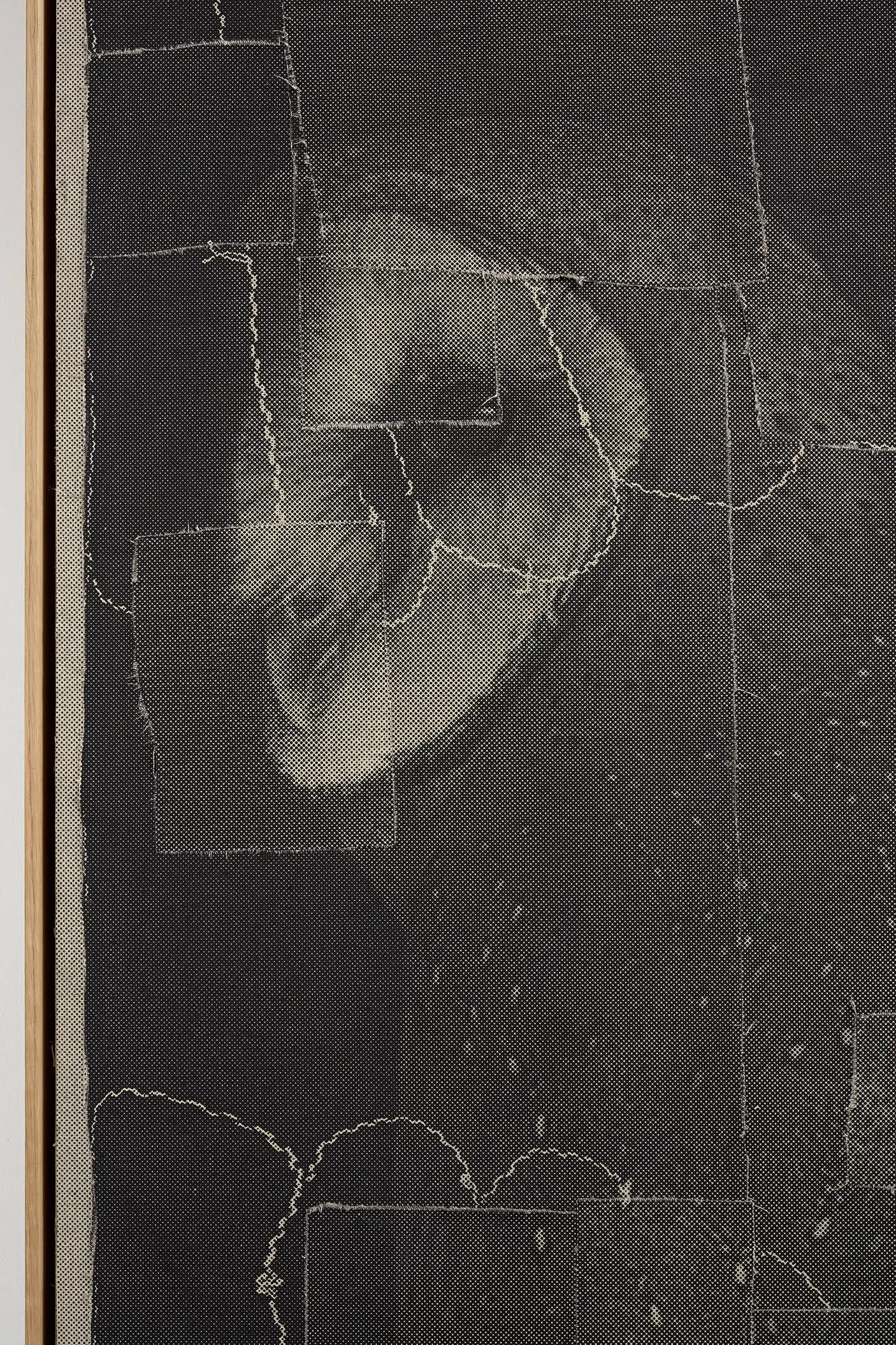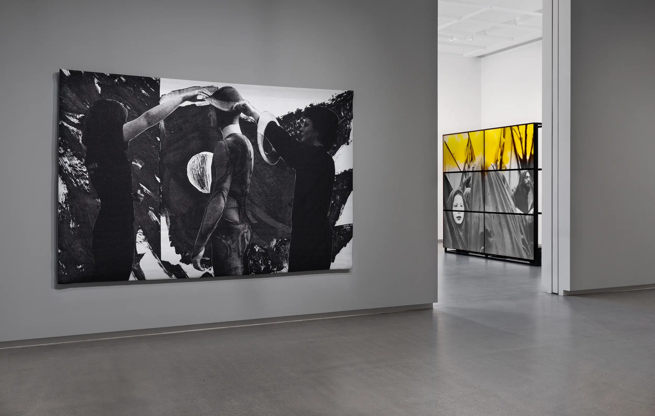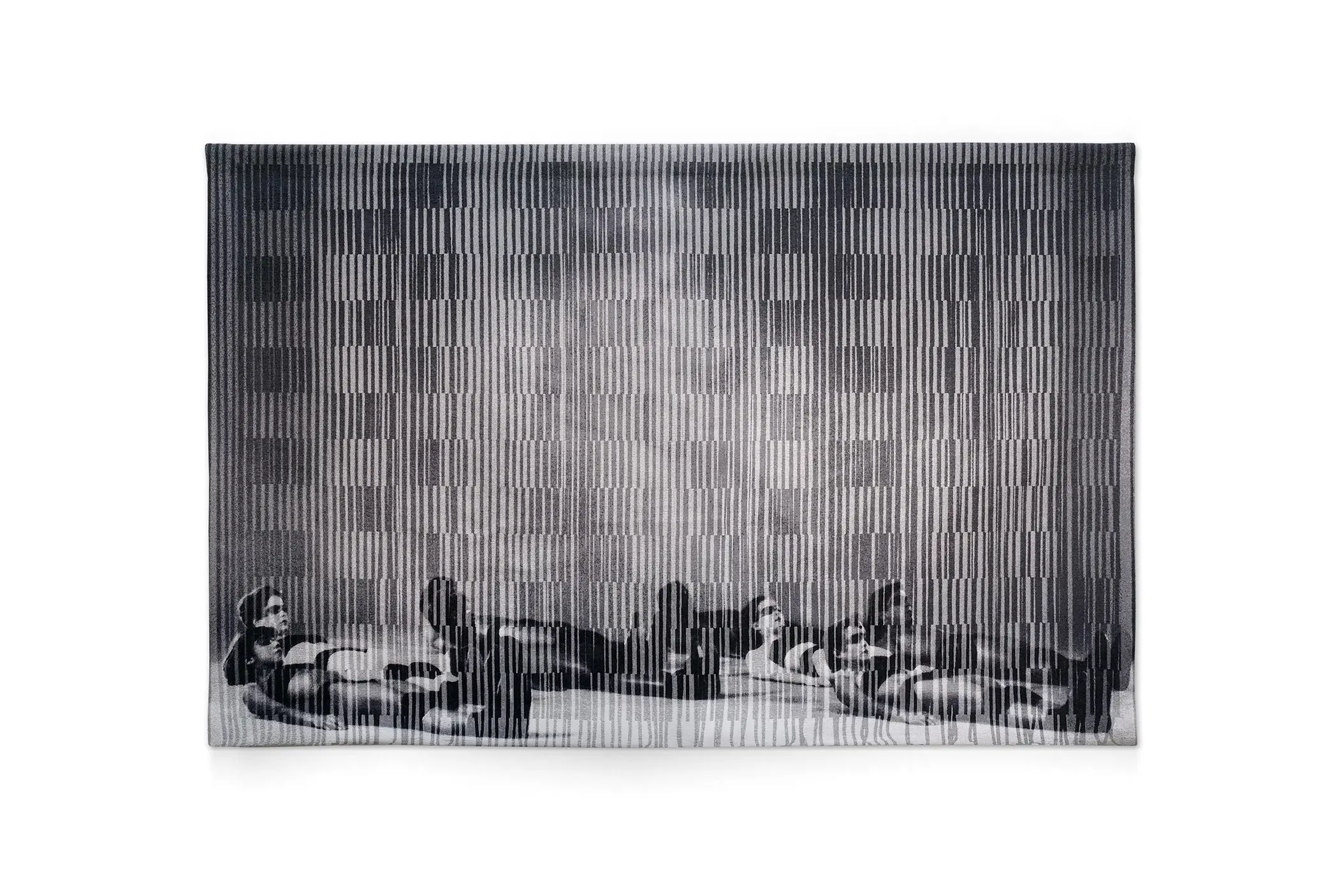 David Noonan’s collages, films, paintings, sculptural objects, tapestries and installations are characterised by a complex layering of found historical and contemporary images. In his work, he is interested in the liminal and temporal; in the dialogue between figuration and abstraction and a de-linear sense of time; in ambiguities, contradictions and in-between spaces. As Jennifer Higgie notes: ‘Every image is a fragment. This is how we see things; how we remember what we don’t fully understand. Creation is always cumulative. Pictures and films develop in an intuitive way, often in response to something that has already been made’. His work often displays a monochromatic palette that references his source material and presents a distilled aesthetic. He explores how materials behave together and influence each other to create a form of visual and material harmonics that inform his creative processes.