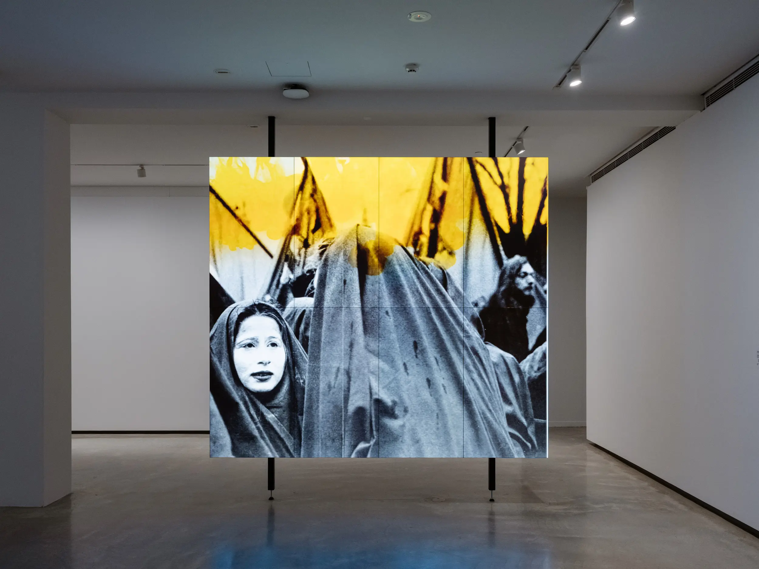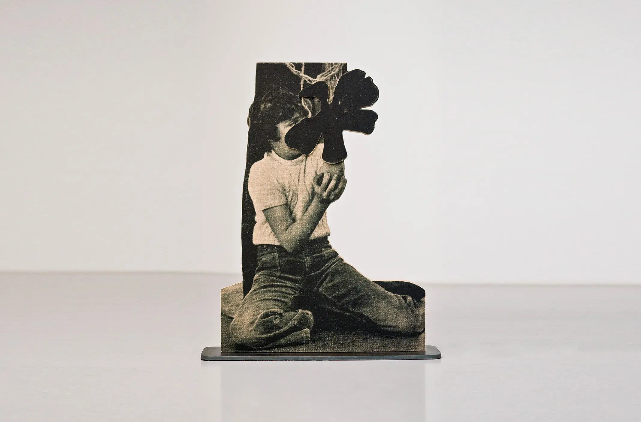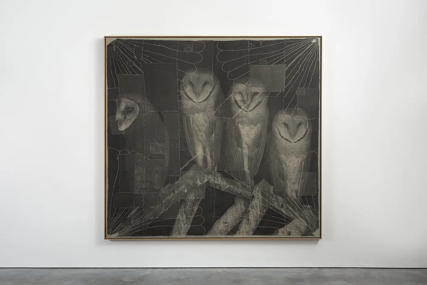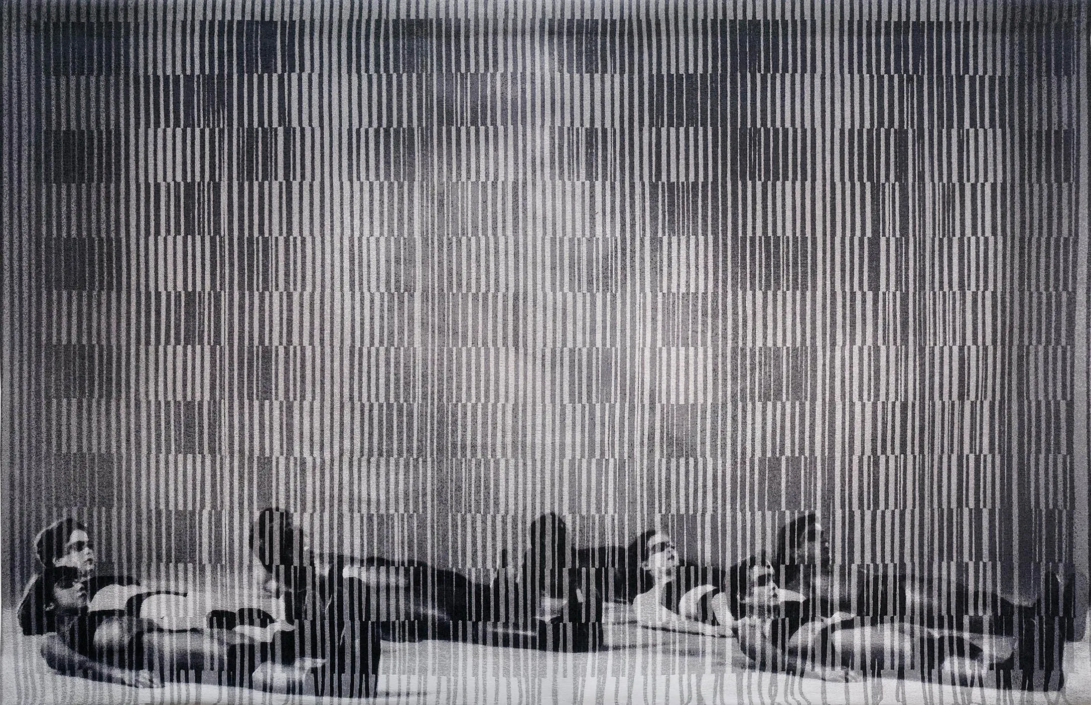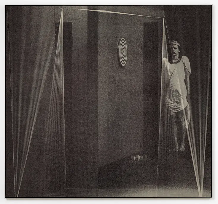 David Noonan’s collages, films, paintings, sculptural objects, tapestries and installations are characterised by a complex layering of found historical and contemporary images. In his work, he is interested in the liminal and temporal; in the dialogue between figuration and abstraction and a de-linear sense of time; in ambiguities, contradictions and in-between spaces. As Jennifer Higgie notes: ‘Every image is a fragment. This is how we see things; how we remember what we don’t fully understand. Creation is always cumulative. Pictures and films develop in an intuitive way, often in response to something that has already been made’. His work often displays a monochromatic palette that references his source material and presents a distilled aesthetic. He explores how materials behave together and influence each other to create a form of visual and material harmonics that inform his creative processes.