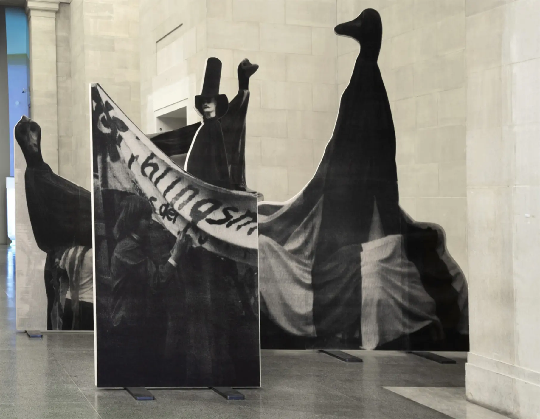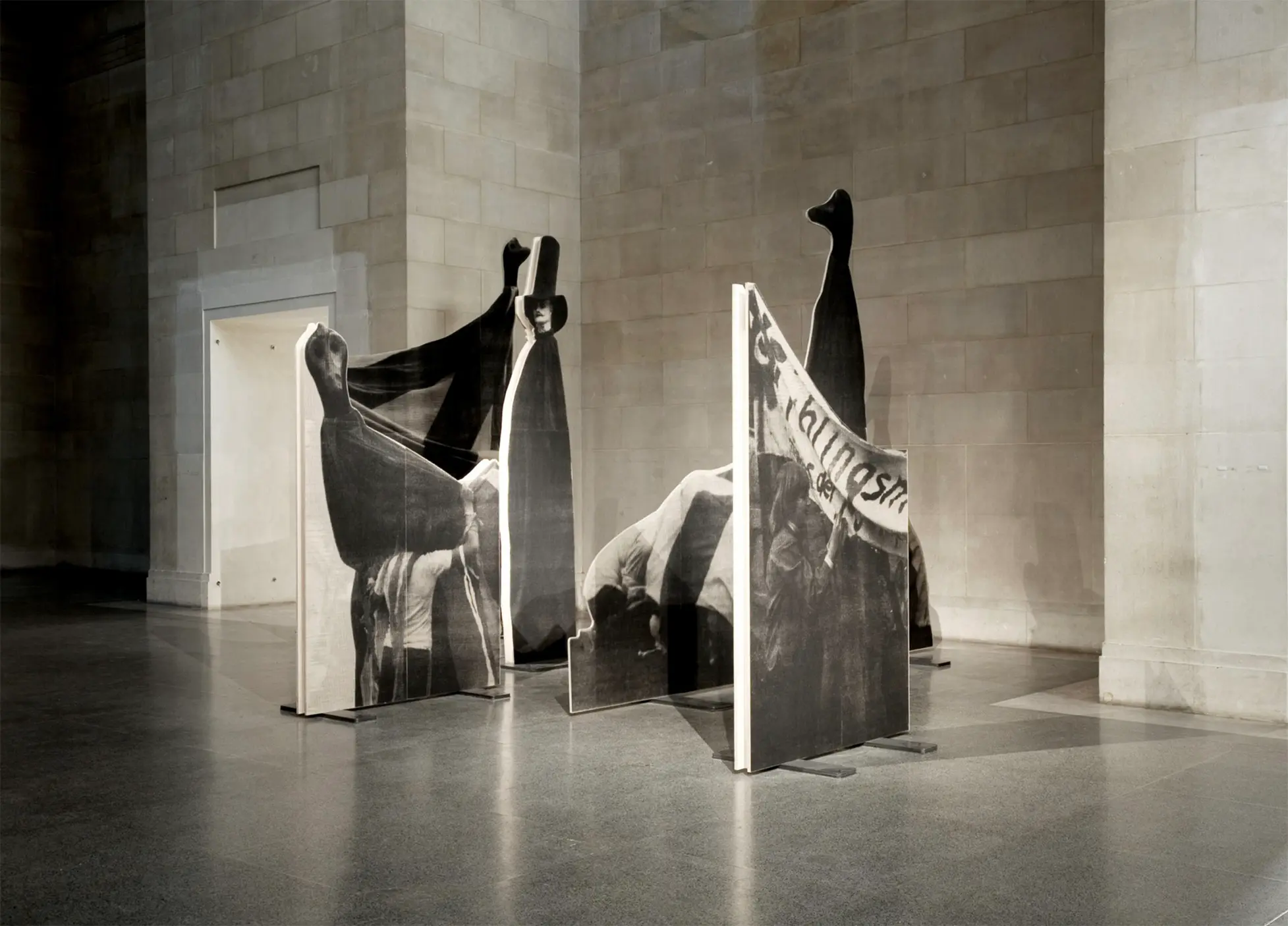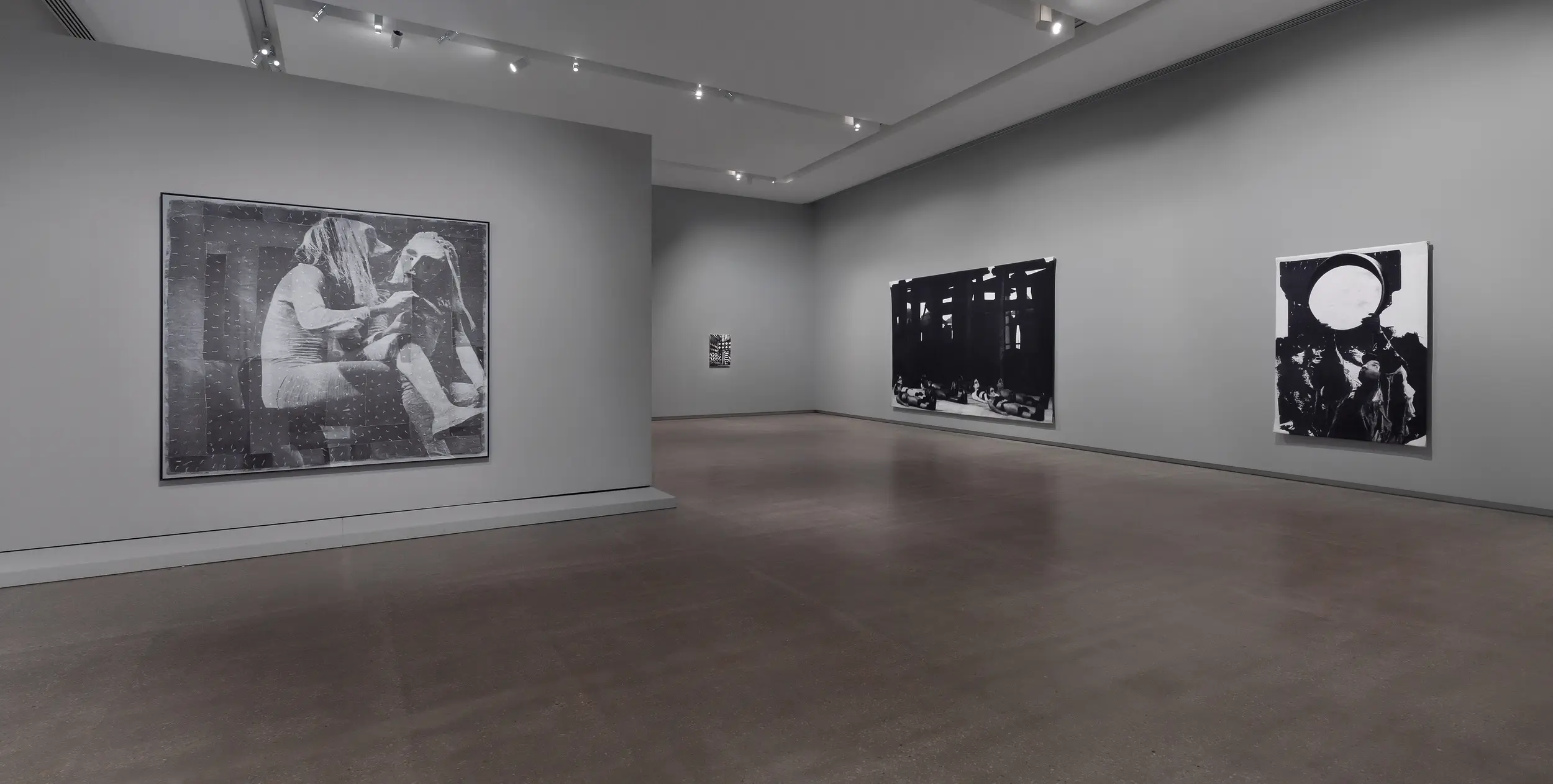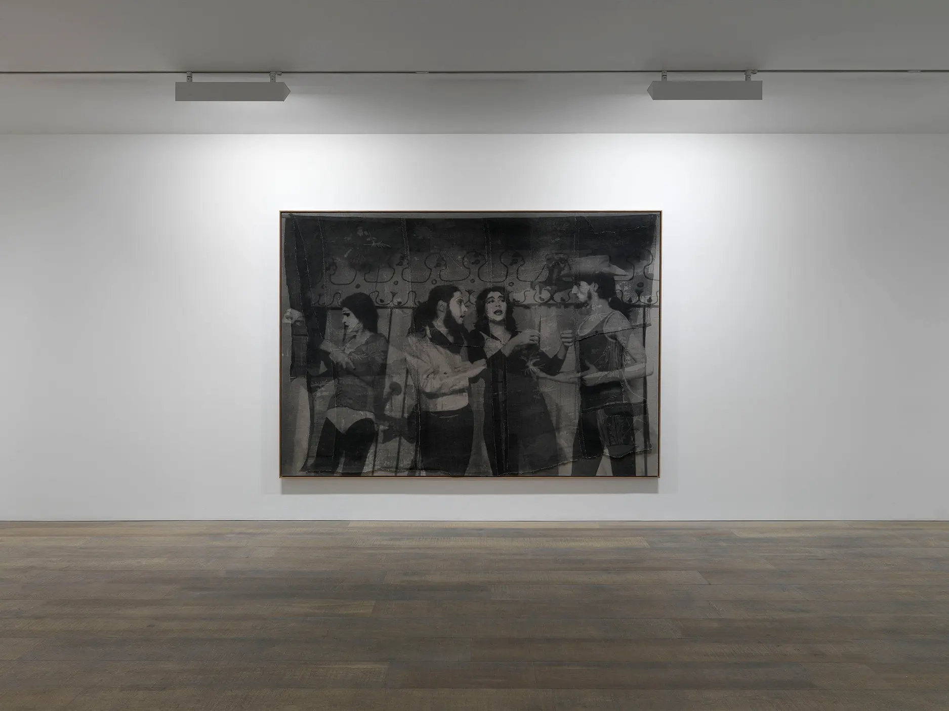 David Noonan’s collages, films, paintings, sculptural objects, tapestries and installations are characterised by a complex layering of found historical and contemporary images. In his work, he is interested in the liminal and temporal; in the dialogue between figuration and abstraction and a de-linear sense of time; in ambiguities, contradictions and in-between spaces. As Jennifer Higgie notes: ‘Every image is a fragment. This is how we see things; how we remember what we don’t fully understand. Creation is always cumulative. Pictures and films develop in an intuitive way, often in response to something that has already been made’. His work often displays a monochromatic palette that references his source material and presents a distilled aesthetic. He explores how materials behave together and influence each other to create a form of visual and material harmonics that inform his creative processes.