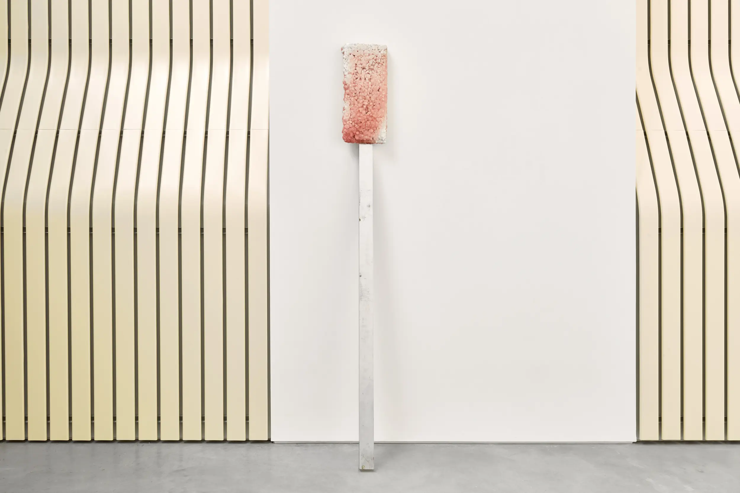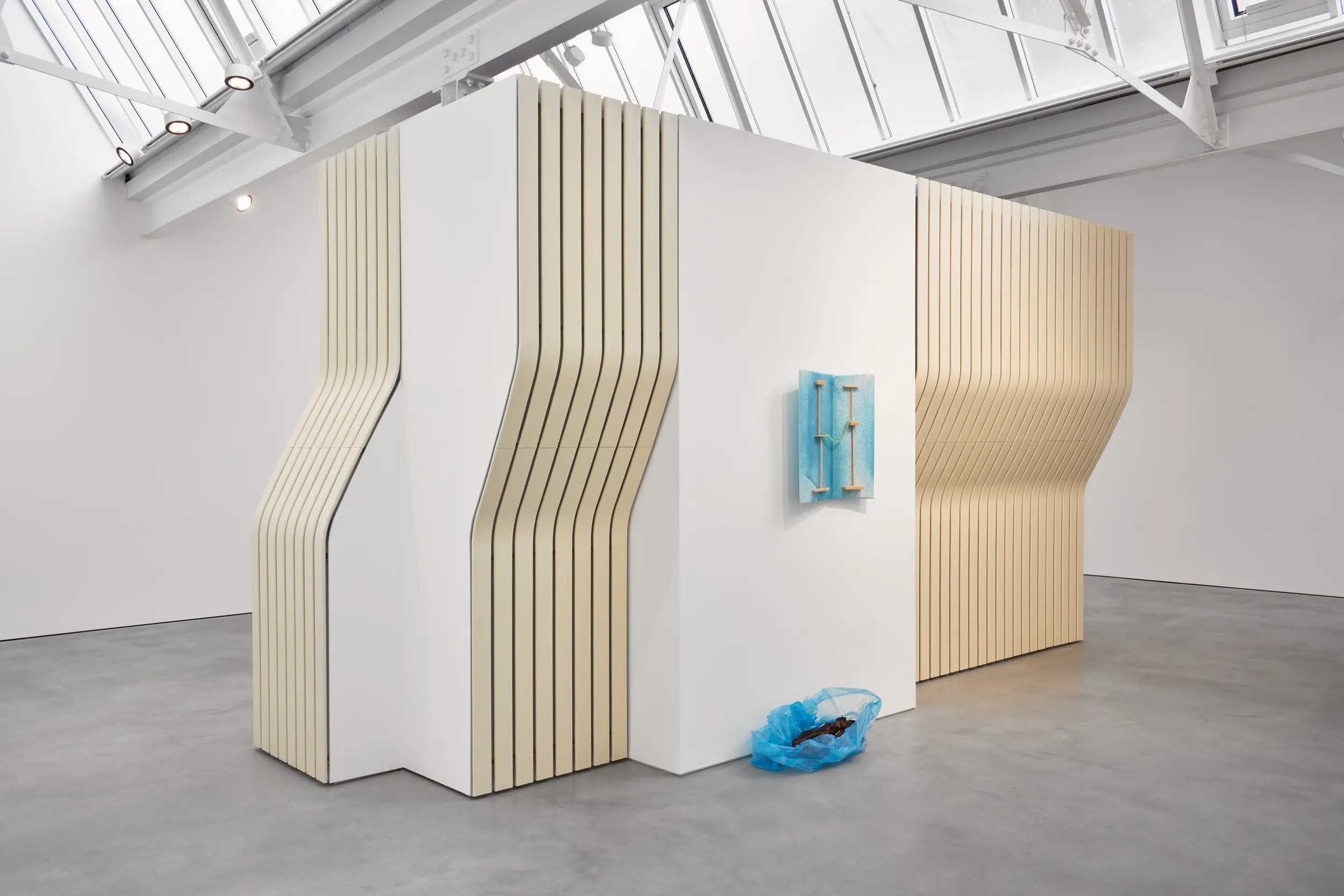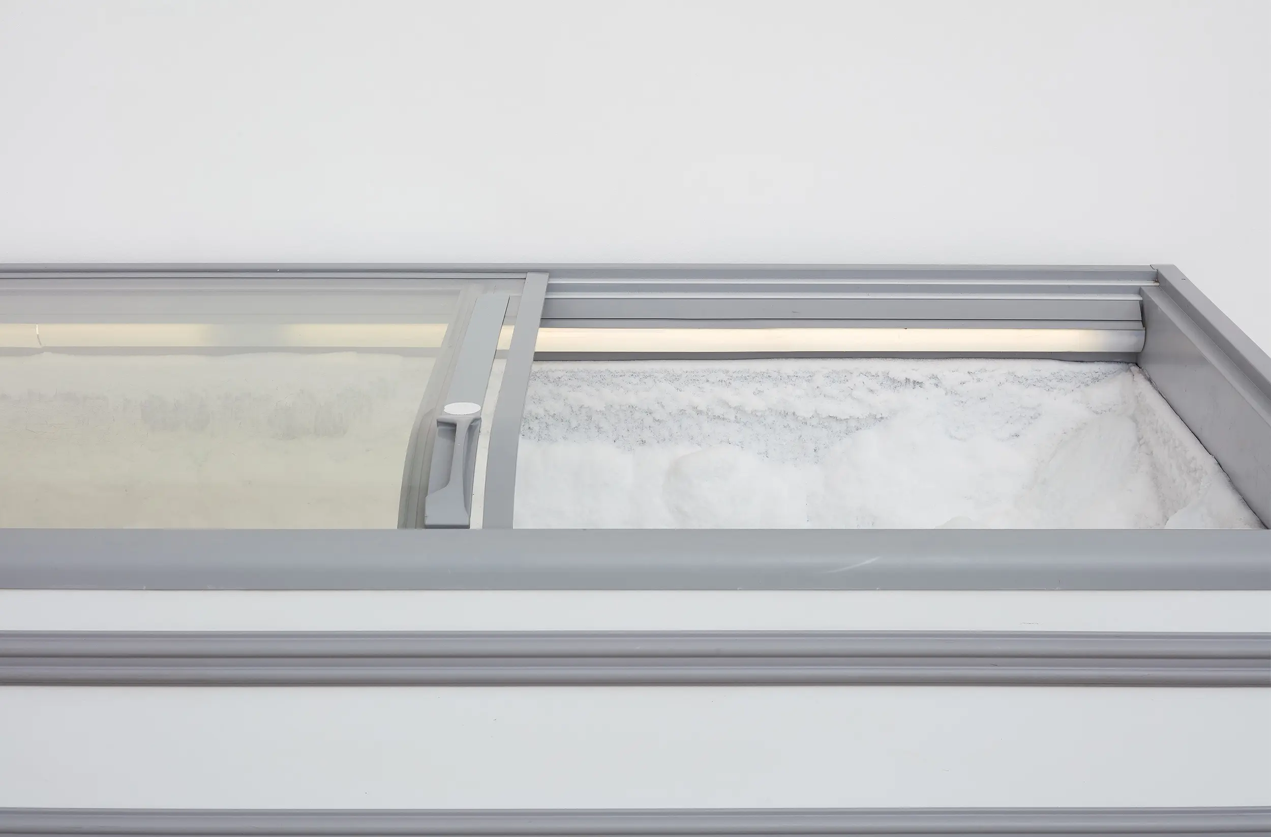 Bojan Šarčević works in sculpture and film, with materials mined for their specificities: wax, onyx, human hair, raw meat and hollowed watermelons are just several examples of his chosen constituents. His works involve sculptural interventions into the gallery space in order to recreate fragmented and abstracted experiences of bodily encounters that are at once familiar and uncanny: such moments might include browsing a lyrical supermarket aisle; snagging on a tree branch, or edging around a seemingly discarded plastic bag containing jerky. Though they may hint at broader movements and historical events, including Modernism, Constructivism, Retrofuturism, and thesocialist states transtion to capitalism and its consequences, the precise meanings of Šarčević’s works are left indeterminate. His installations arise from a research-based practice rooted in philosophical and scientific inquiry and permeated with ideas of aspiration and nostalgia. For his 2018 exhibition at Modern Art, Sentimentality is the Core, he installed a series of commercial freezers containing transducer speakers, which transmitted fragmented 1980s pop songs by George Michael and Sade through the farmed ice crystals that lined their interiors. This work, like almost all Šarčević’s works, traces its beginnings back through specific histories and narratives – in this case the political legacies of the 1980s both in the Soviet Union and in the USA and UK – while connecting personal sentiment with collective experience.
