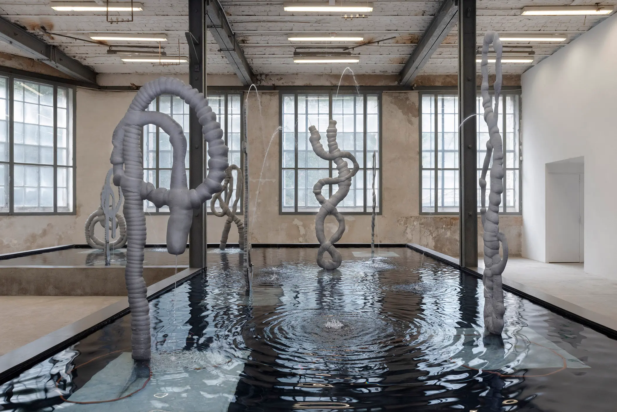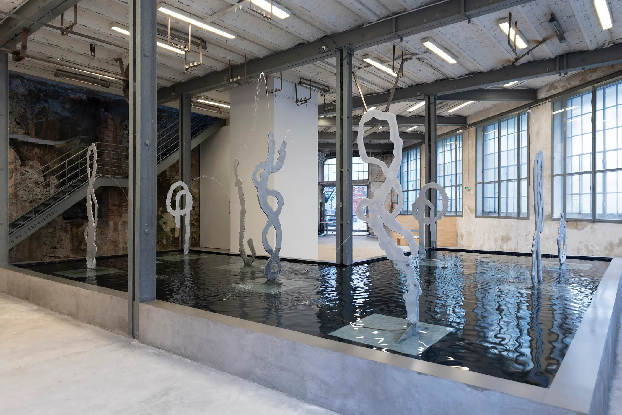 cast aluminium, stainless steel and water, 225 x 82 x 6 cm, 88 5/8 x 32 1/4 x 2 3/8 ins