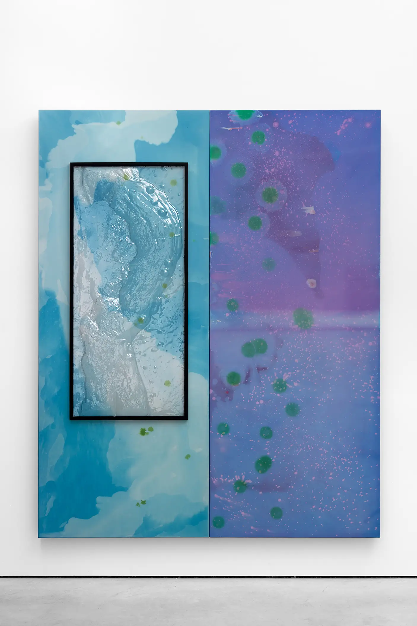 Jesmonite, plastic, brass, steel, hot water, 120.5 x 193.5 x 20 cm, 47 1/2 x 76 1/8 x 7 7/8 in