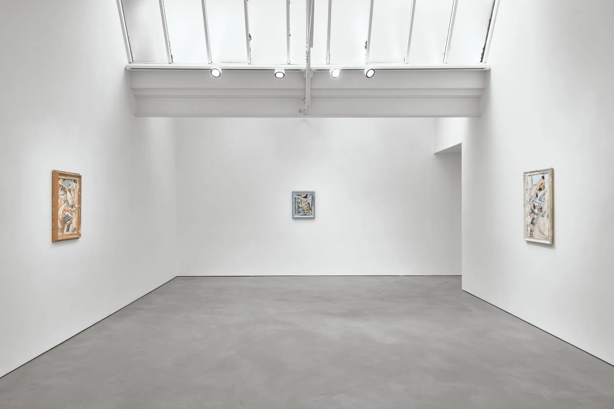 Each painting in Moran’s new body of work for Modern Art is created on a found surface, an approach characteristic of her recent practice and found in different ways throughout her oeuvre. More often than not, these readymades are framed paintings, which Moran has reworked through her own vocabulary of gestural improvisations – smears, drips, or careful brushstrokes. At times, sections of the original surface are exposed; perhaps just a thin edge or small fragment, at other times it is the details of the original frame that endure into its new life. Akin to collage, this process of layering enlists the character of the found surface to create a poetic collision of forms, colours and textures. In her new body of work, Moran’s paintings traverse a vast terrain of moods.