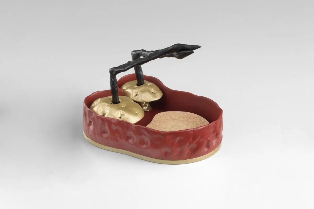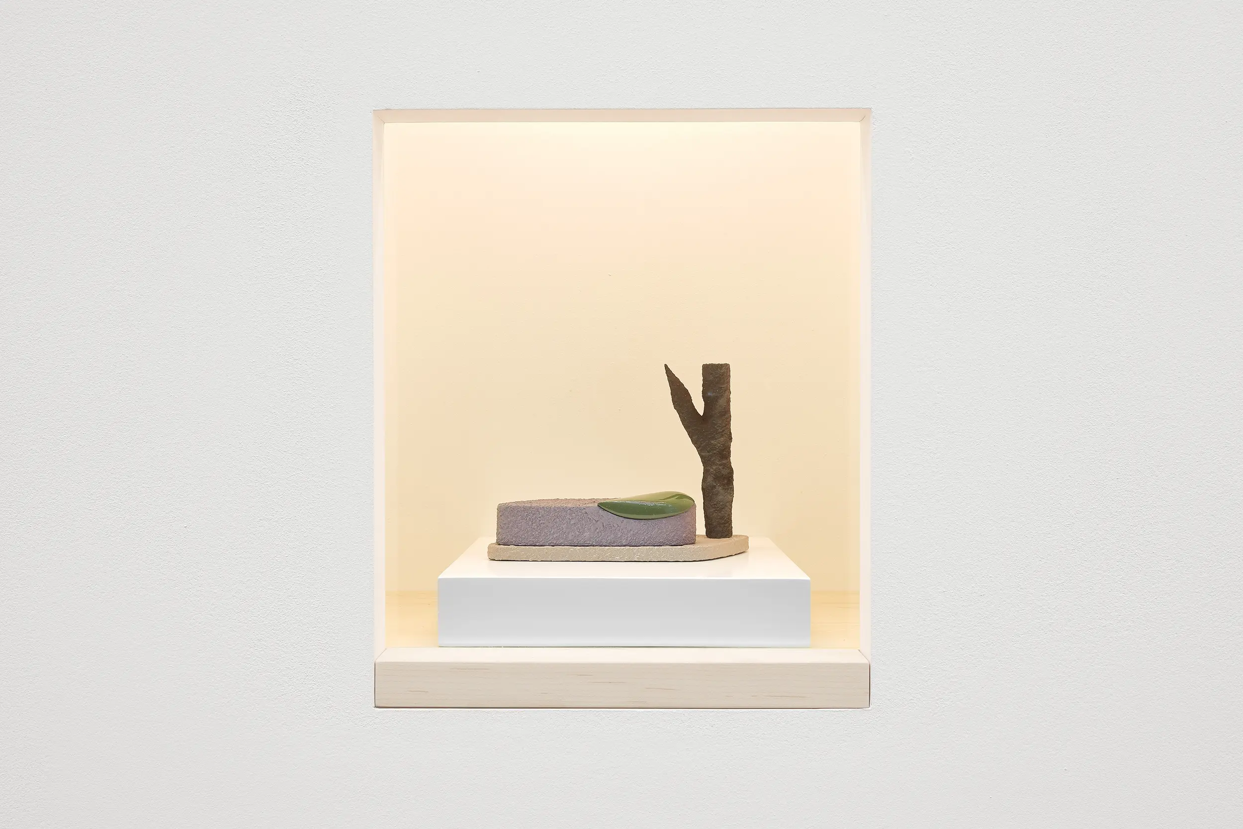For over five decades, Ron Nagle has produced intimate sculptural works. Each work is created from a variety of materials and is a careful arrangement of contrasting forms, colours, and textures that reflect a breadth of influences including the paintings and drawings of Giorgio Morandi, Philip Guston, Josef Albers, the custom cars and hot rods of the West Coast from the 1930s-50s, and Wabi-Sabi qualities of Japanese Momoyama ceramics.