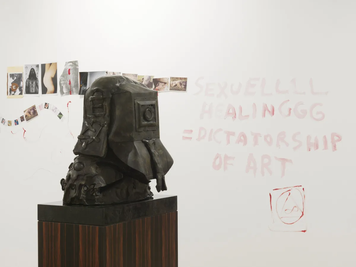 Throughout the work of Jonathan Meese, there exists a hopeful re-ordering through chaos, where the artist proposes a very particular, personal world that dedicates itself to the "revolution of art". Meese's enthusiastic role as "Art Dictator" employs the language and intensity of despotism, while proposing something much more pure, optimistic, naive even. Through this, Meese's unaffected innocence is transformed into an insistent production.