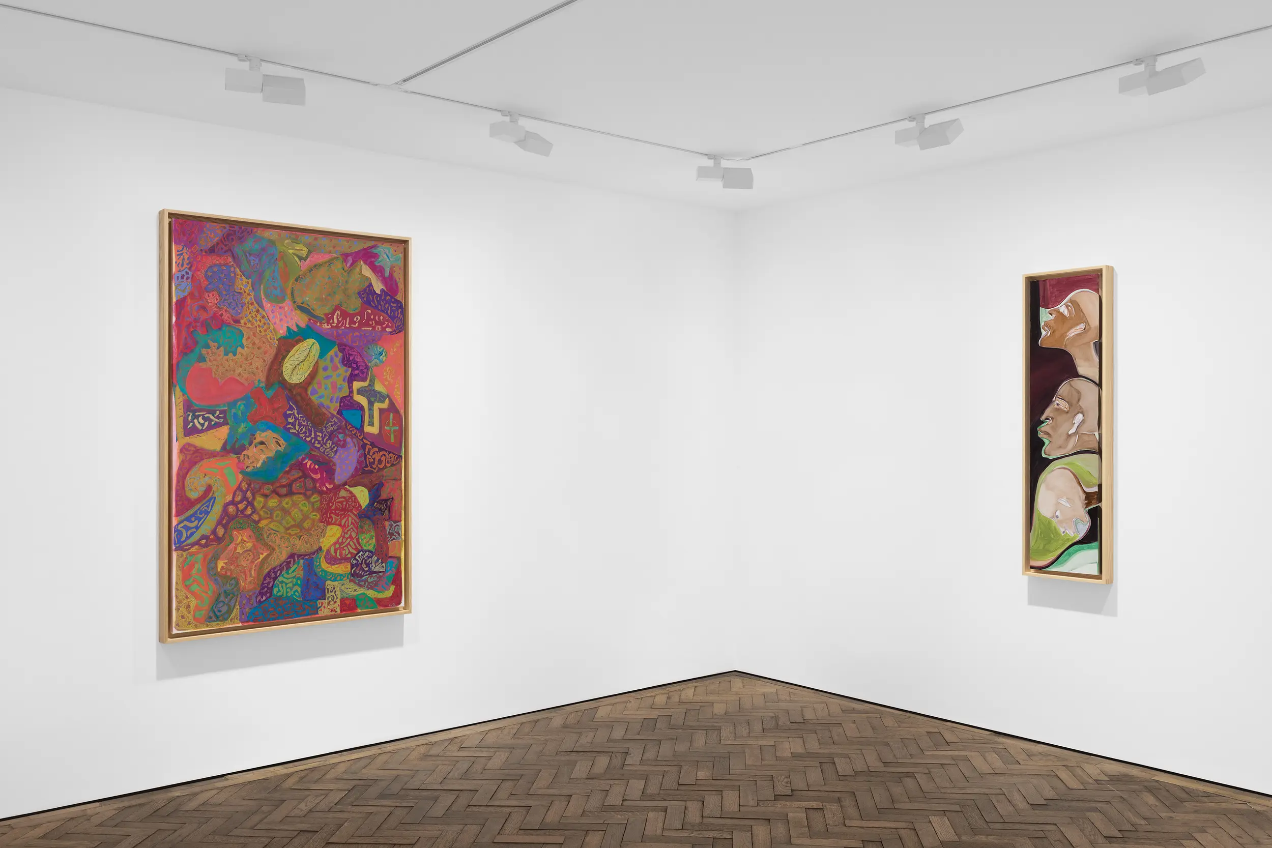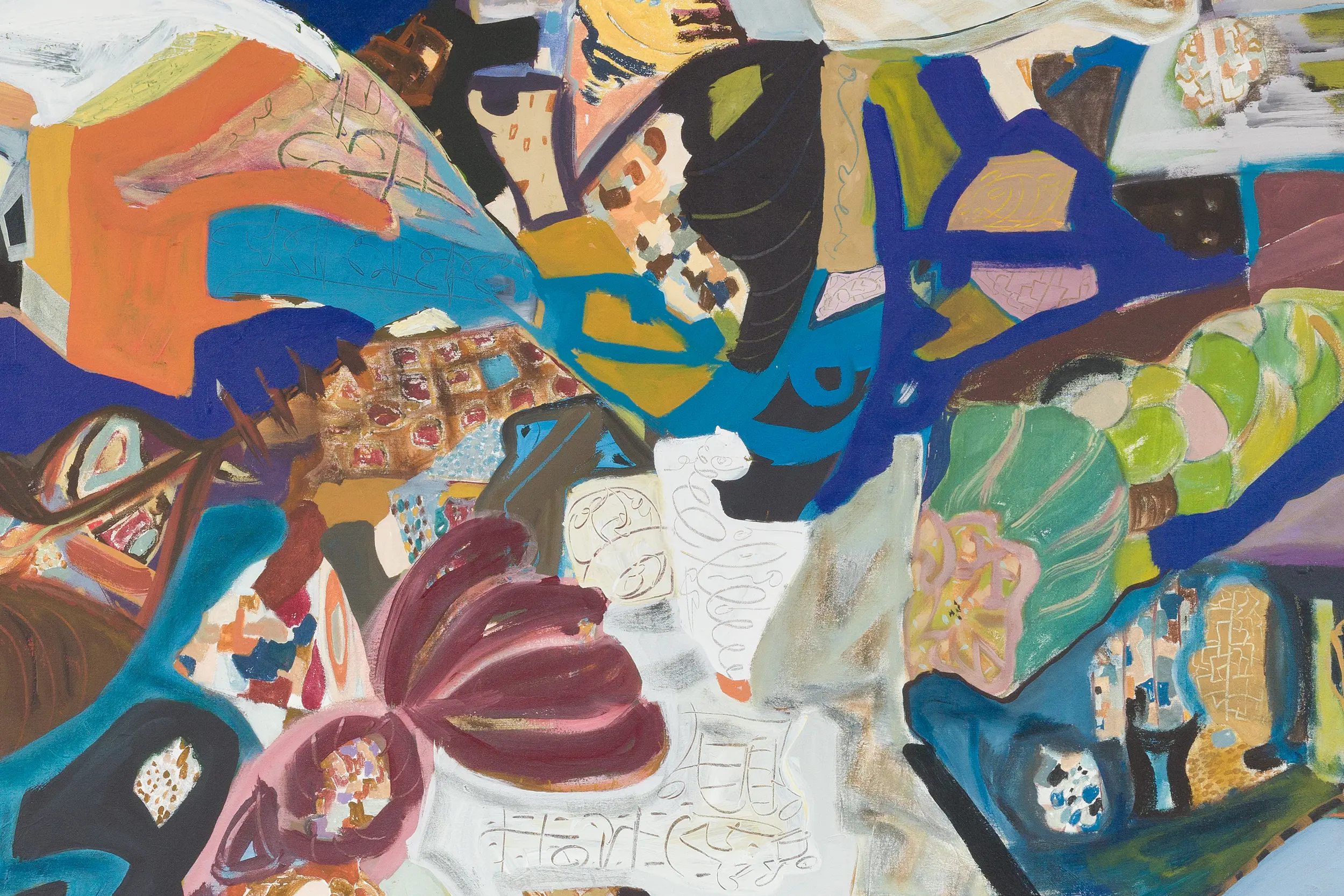 Often in these works, fragments of figures – human and nonhuman – crowd and jostle around the canvas, as though flashes of memories of people, creatures, textures, sounds and smells. These paintings are crammed with life. And while Ghebreyesus’s paintings depict an array of feeling - from longing and yearning, to dynamism, spirituality, connection and very frequently, joy - they are never simply representational. His curiosity about process, his experimentation with colour, and his unique formal vocabulary convey the depth of his investment in his medium and in the historical tensions between abstraction and representation as they have evolved over the 20th century.