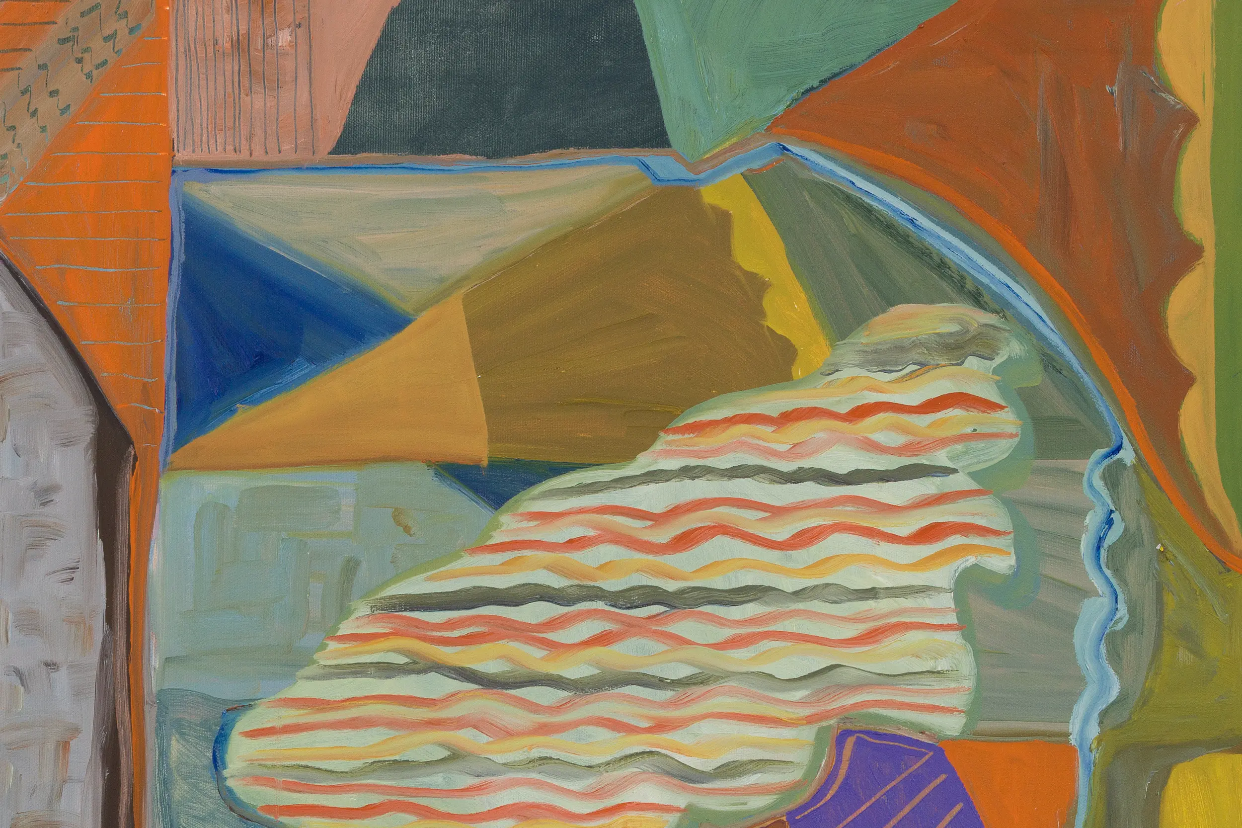 A different reoccurring motif is that of a musician playing a string instrument, sitting, full of energy and vitality, housed in a warm interior; a loving portrayal of the feeling of home, or perhaps a yearning for one. In the largest painting, ‘Map/Quilt’ from 1999, what could be a kaleidoscopic topography simultaneously evokes the patterns and colours of Eritrean textiles. Indeed, many of Ghebreyesus’s paintings are deeply multifarious and unruly.