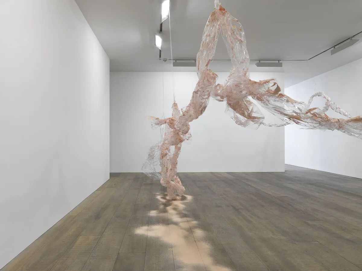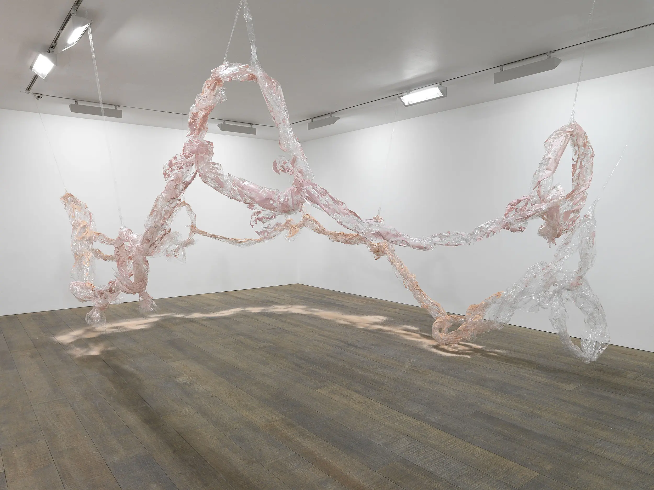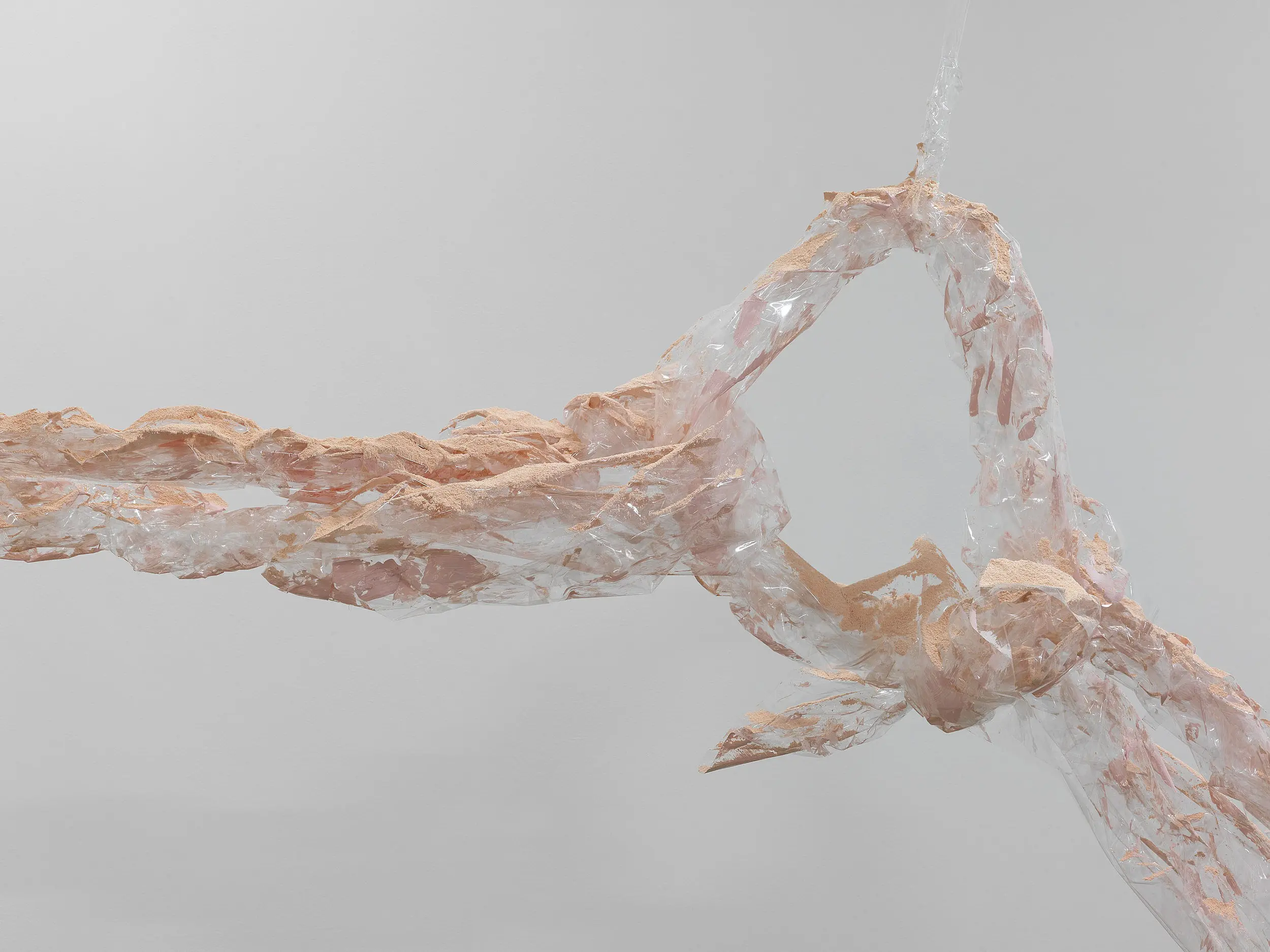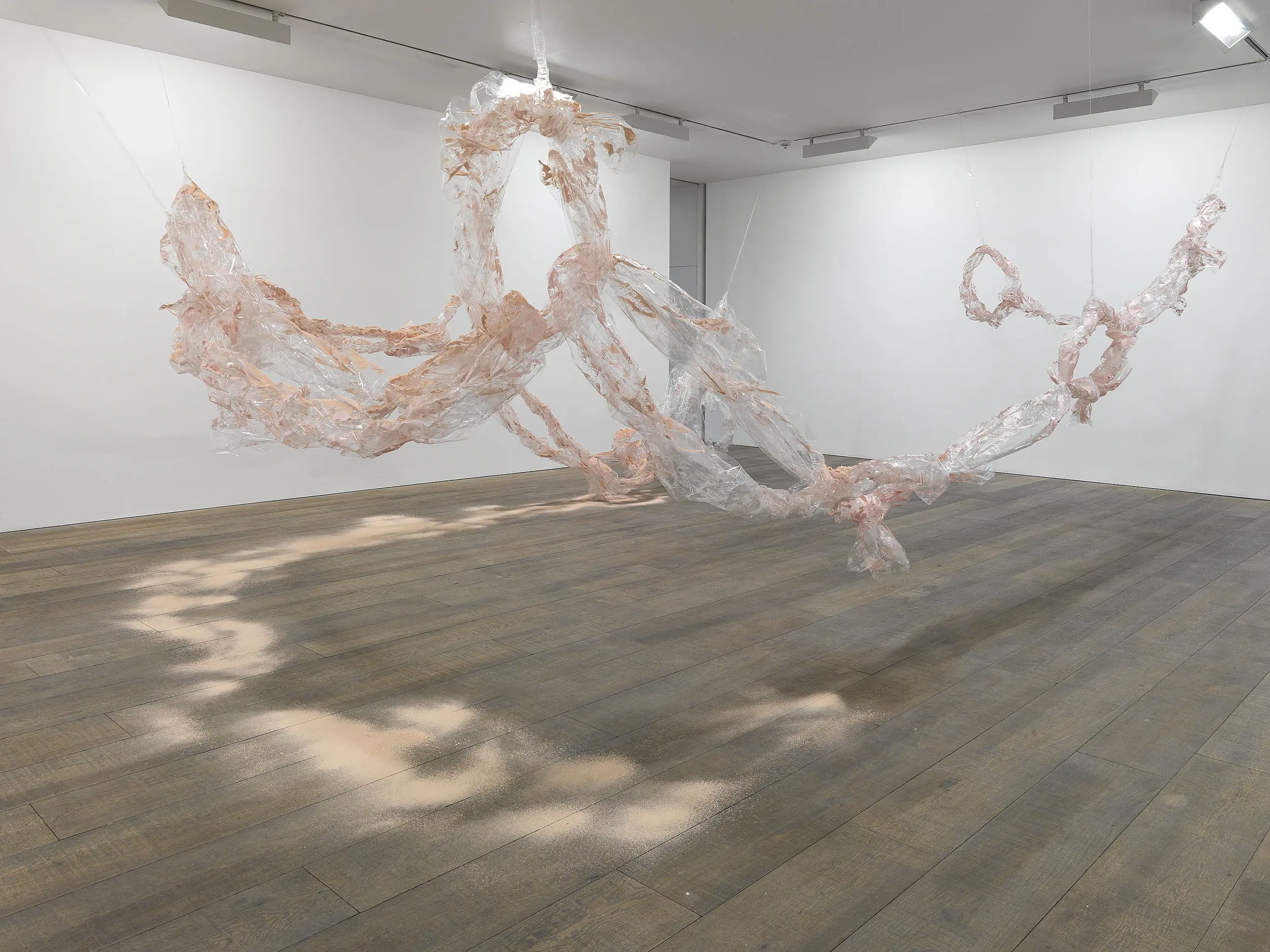 This exhibition at Modern Art comprises a suite of sculptures that occupy the gallery’s three exhibition spaces. Black’s new works utilise characteristically light and delicate feeling forms that, as always, embody the difficulty and chaos of the creative moment, in challenging scales and positions throughout the overall rhythm of the exhibition. The new sculptures are made predominantly from loosely painted cellophane and dusted polythene.