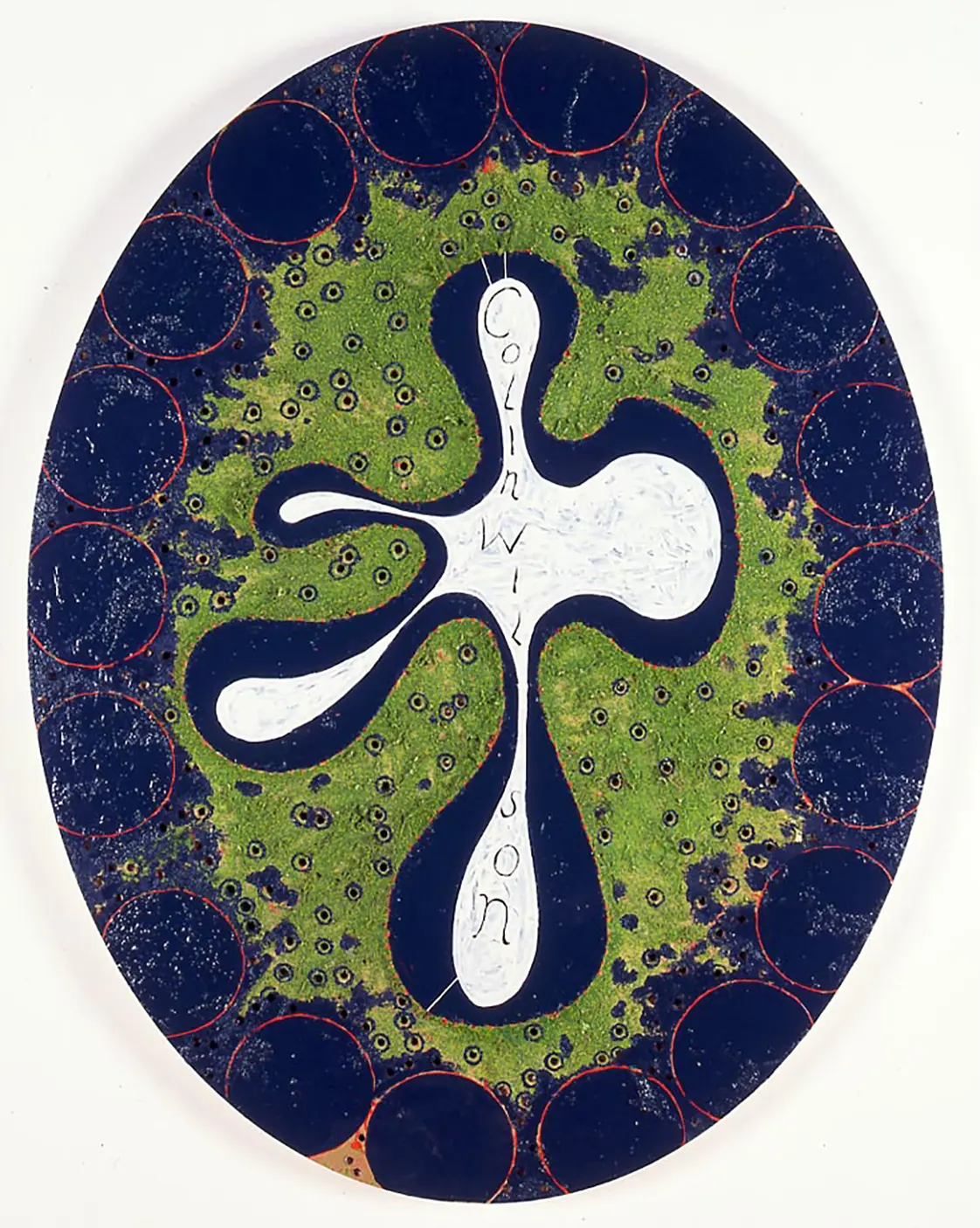 SB The oval does have that property; that it's easy to feel you're looking through it, like a porthole or a telescope. Something else it does is provide a bit of continuity and a clear physical limit to set off the incoherence of style and subject matter. Imagine how irritating and impractical it would be if I'd chosen to use nothing but pentagrams or rhombuses.