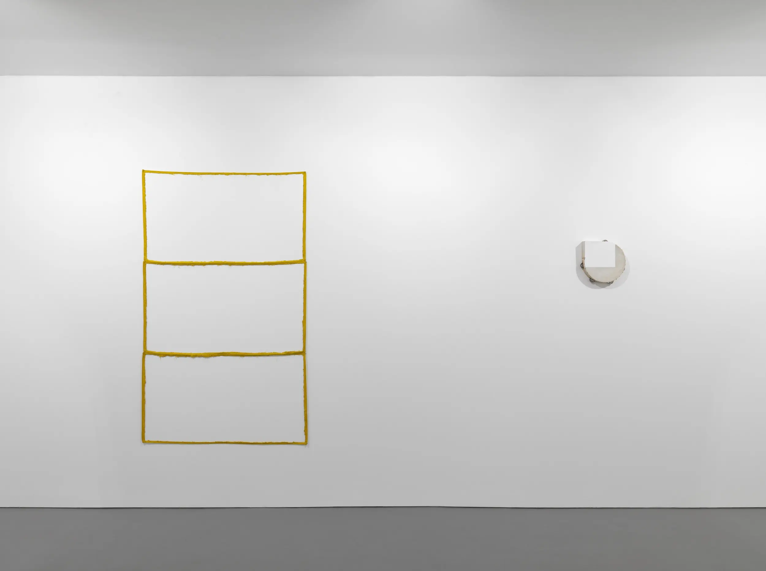 Paul Lee’s work is reticent and humble, born of a relationship between particular material forms and suggestive, unspoken narratives. His material selections commonly stand for a suggestion of interface between a person and the world: tactile objects that frequently associate with the facilitation of action and that are themselves activated by human contact. Towels, washcloths, and tambourines characteristically find their way into Lee’s work - objects that with slight manipulation and reconfiguration openly bear their material identities, yet as presented to us, become comprehensible only as sculpture or painting.