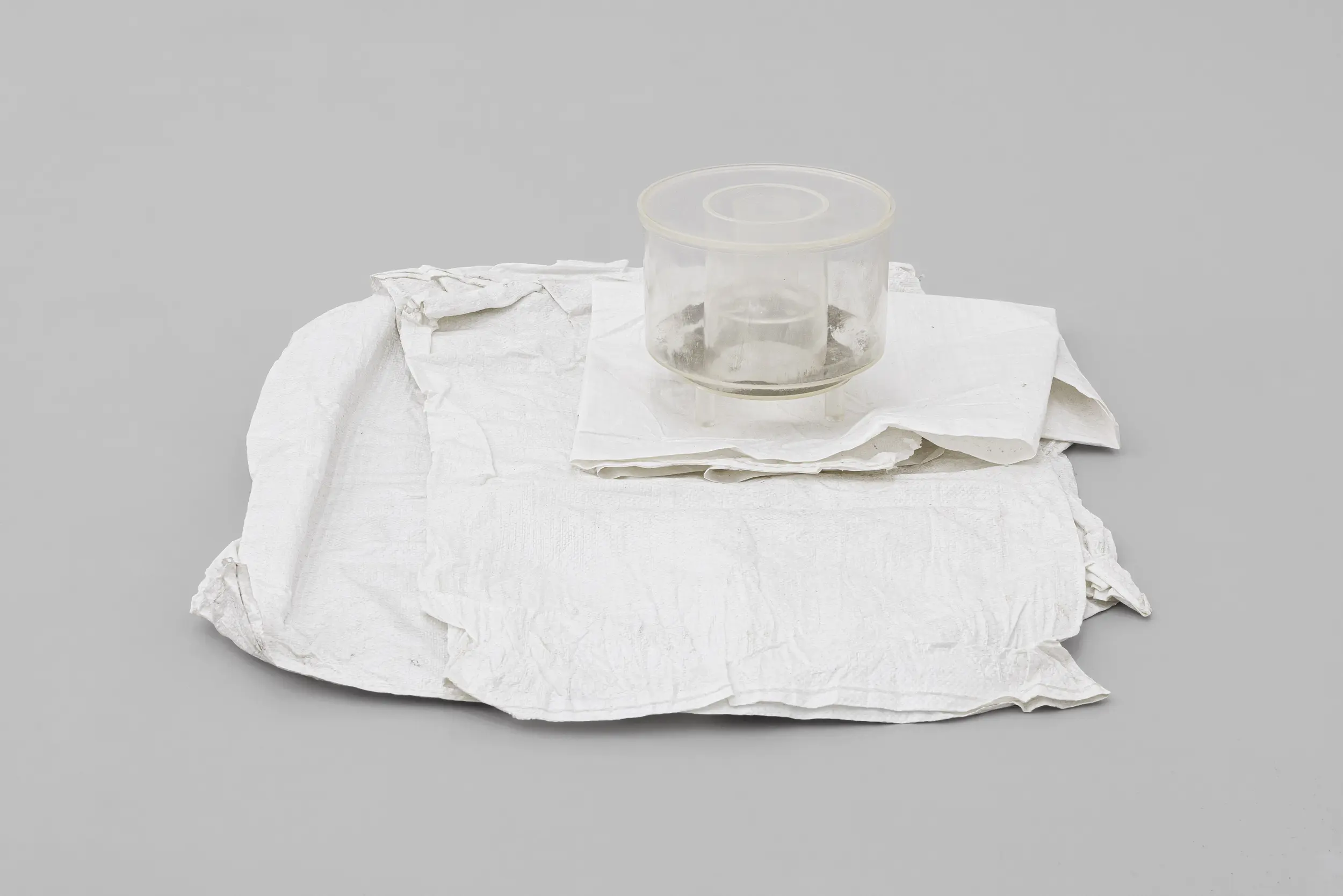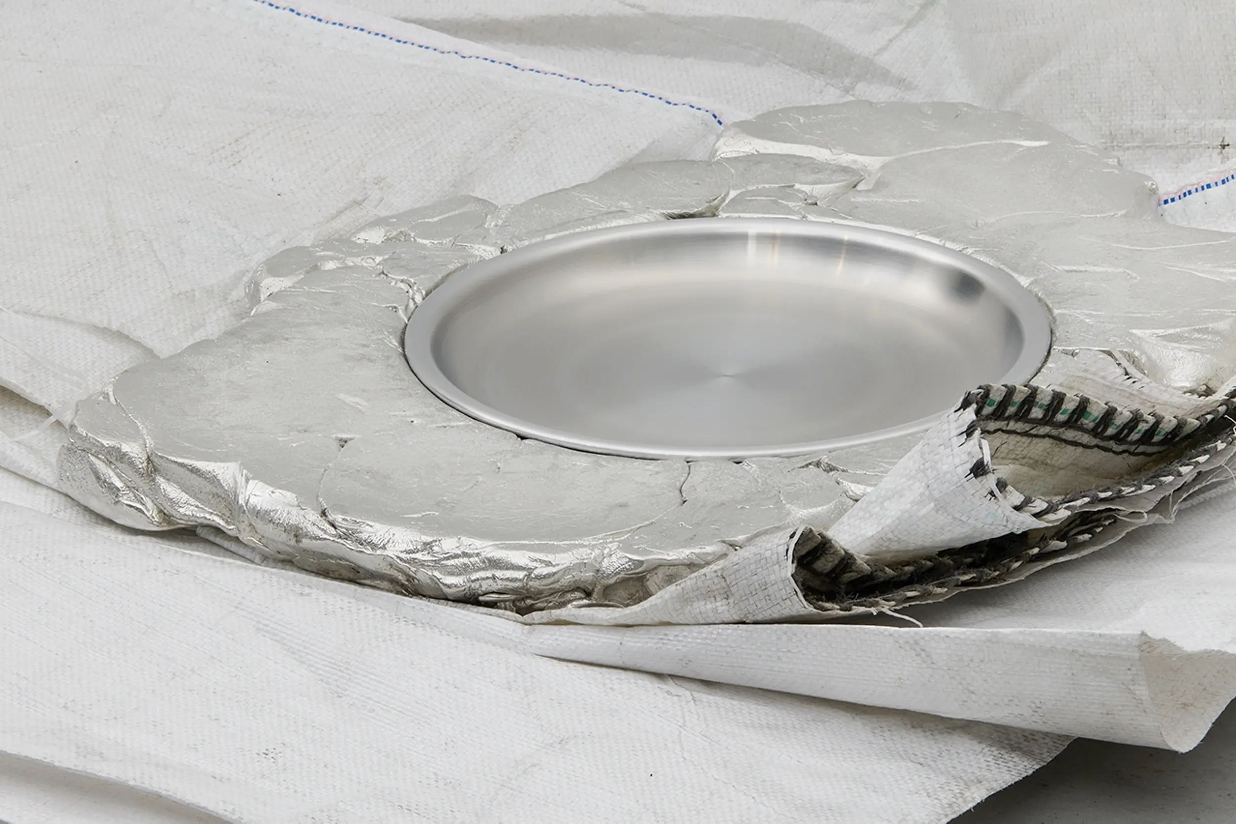 Over the past three decades, Phillip Lai has developed a sculptural language which explores approaches to the ubiquitous materials and experiences that derive from a techno-industrial culture – such as that of mass production, functionality, the mechanistic, automation, ergonomics, and infrastructure. Its basis refers to our psychological interactions in this culture, as well as an intermingling with it. Transfers or retentions of energy are envisioned, through materials and objects that often suggest the support of basic daily functions, needs and the sustaining of human life. Containers; plates, sinks, bowls, or barrels – the receptacles that typically carry raw materials or food, often appear alongside other motifs, such as cloth - in the form of jute, clothing, tarpaulin - layers utilised to provide protection, shelter or warmth. Across all of Lai’s work, he excavates for something deeper and beyond the apparent inertia of objects. This excavation, as though to glimpse more clearly the underlying interaction of things, seems to reach for the quietest, most remote trace of figuration that may belie their abstraction.