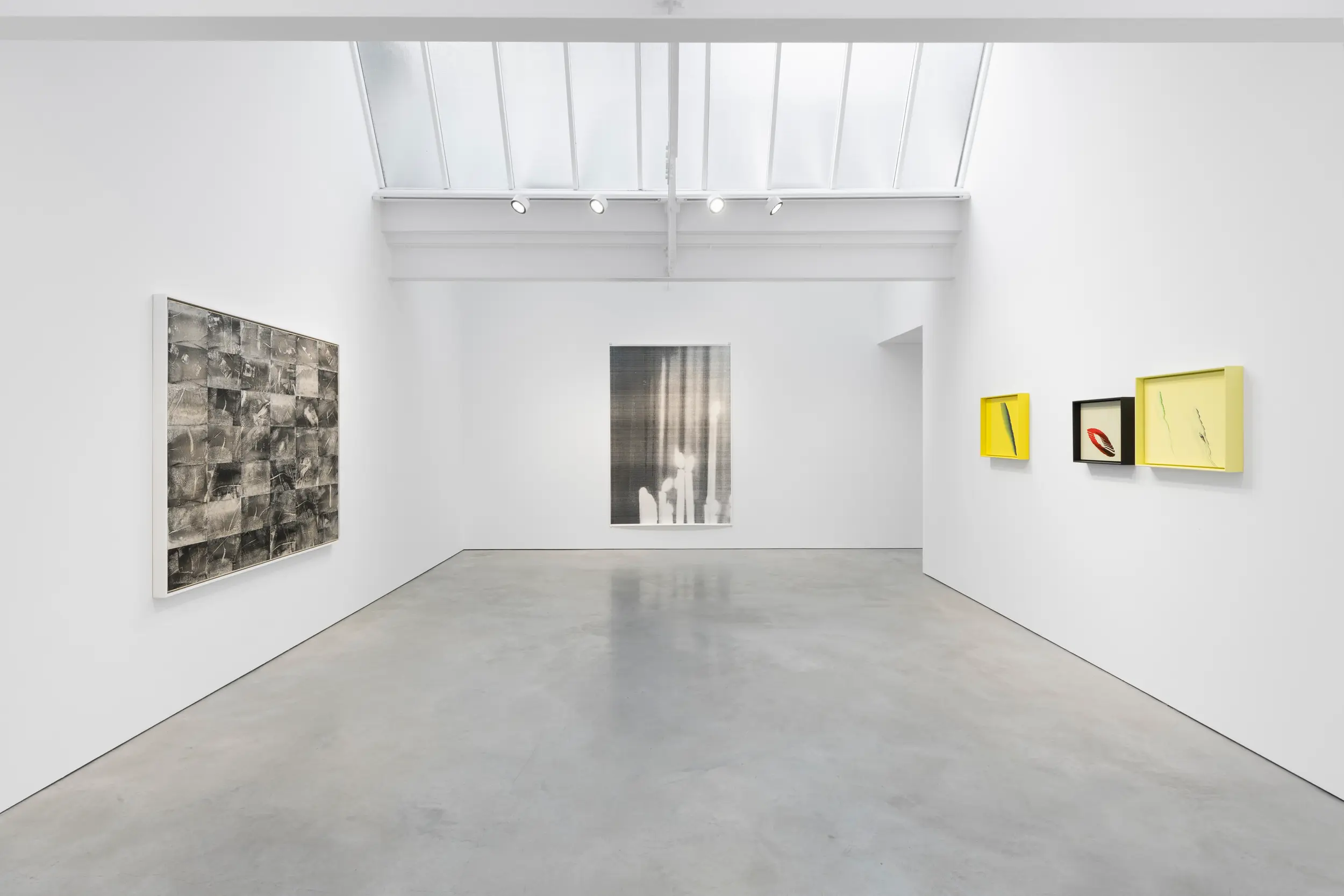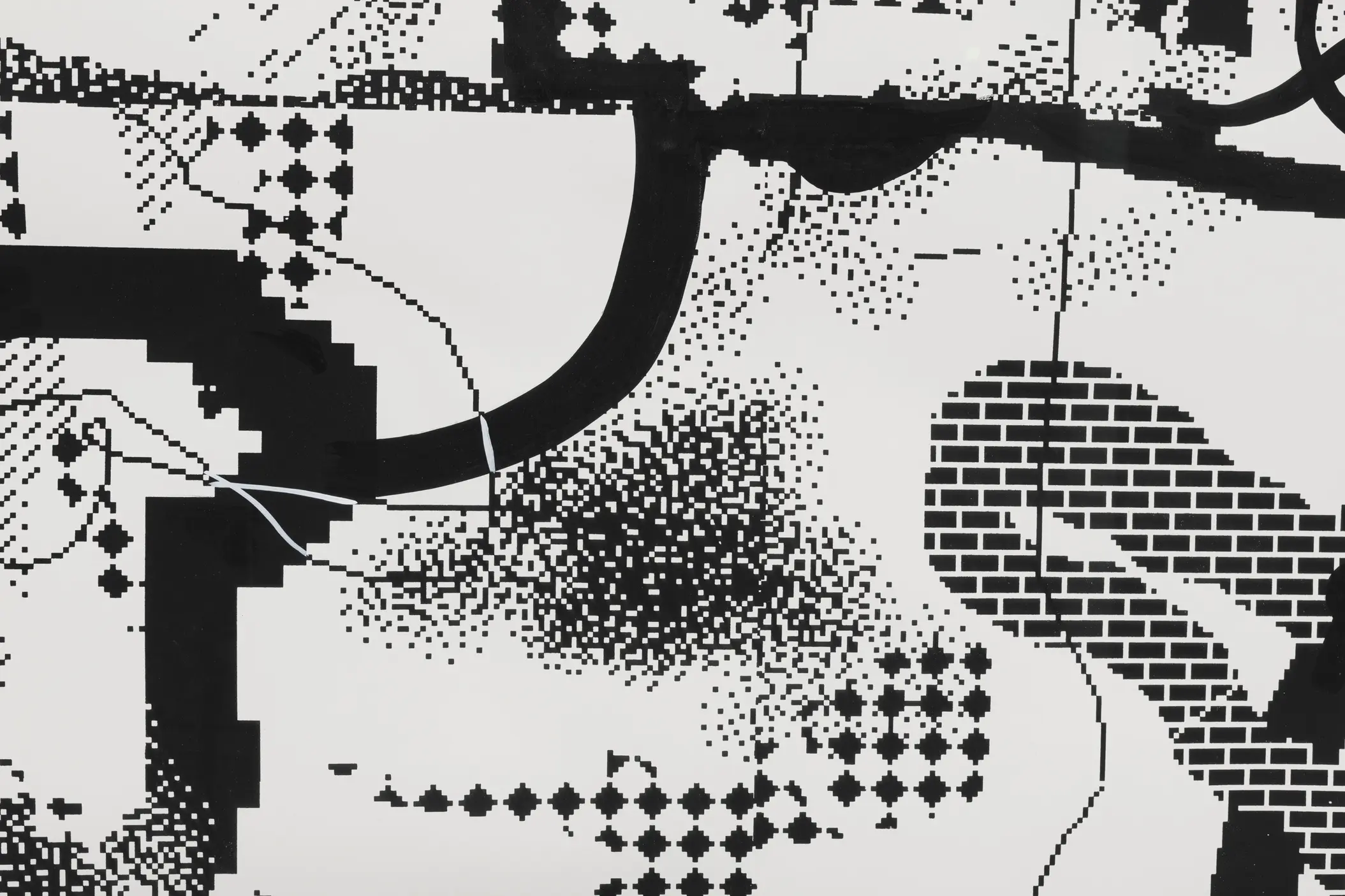 The featured artists have notably differing intentions in their use of machines: Jacqueline Humphries converts images of her past works into vector files to create self-analytical paintings; Christopher Kulendran Thomas uses neural networks to create composite images of Sri Lankan artists’ work which he renders on canvas; and Matthias Groebels’s machine transfers analogue television waves onto canvas. Wolfgang Tillmans’s photocopier works disavow the binary between image production and painting; whereas Tauba Auerbach and Jack Whitten use tools to channel a machine. While the paintings of Albert Oehlen and Reena Spaulings undermine the virtuosity of the artist’s hand, Avery Singer and Seth Price render their compositions with computers, partly realising their paintings with printers, constantly adopting advancing technologies. Rosemarie Trockel and Sigmar Polke in very different ways deploy industrial machines in the making of their renowned paintings; and Christopher Wool’s paintings perform a push and pull with the machinations between artist and machine. Finally, Peter Halley’s foundational 1983 animated work Exploding Cell shows a line drawn from left to right, becoming a horizon with a cell - a kinetic precursor to his subsequent paintings.
