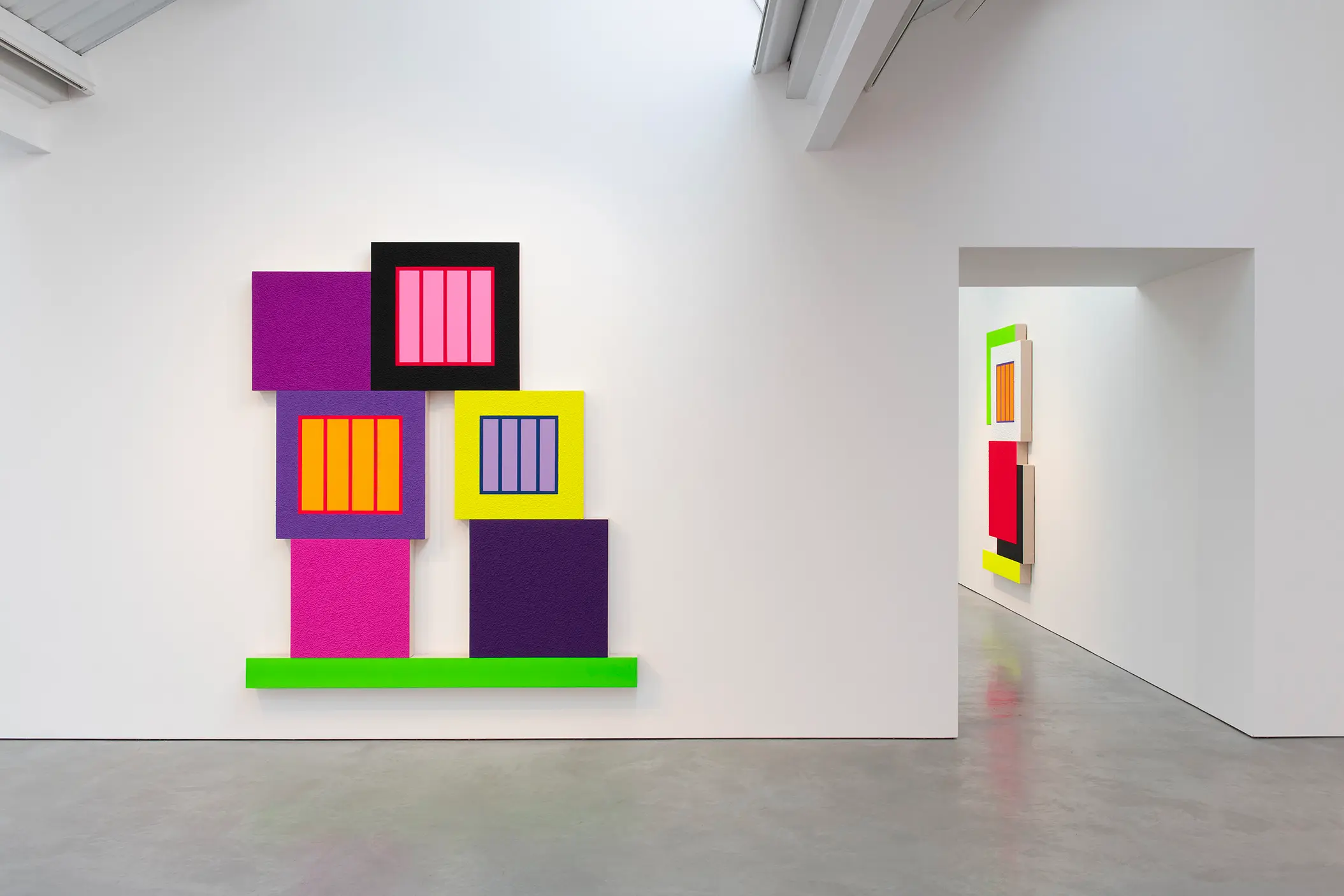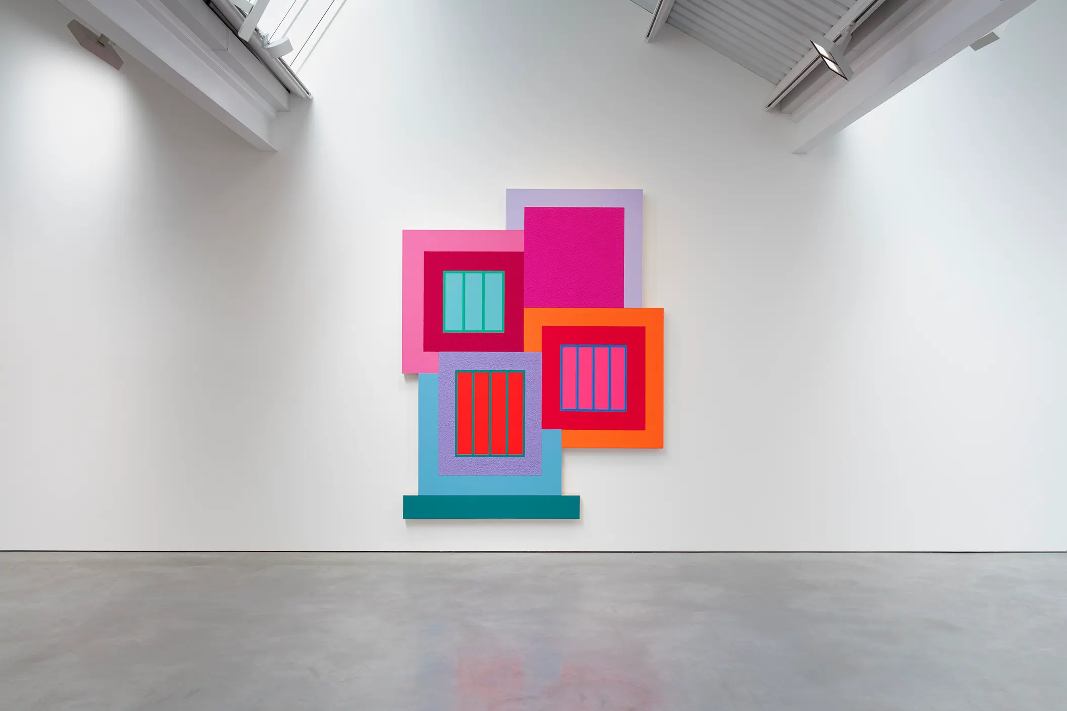 Throughout the 1980s and 1990s, Peter Halley’s paintings and extensive writings about the ever-growing digitisation of cultural, artistic, and social life established him as a leading figure of the Neo-Conceptualist movement in New York City. In his paintings and writings, Halley described the increasingly isolated built environment through his uniquely invented language of ‘cells’, ‘prisons’ and ‘conduits’. These central motifs were a means of thinking through the French Post-Structuralist ideas of Michel Foucault and Jean Baudrillard – among others – in relation to digital technology and capitalism. The gridded forms of Halley’s paintings reference not only the societal structures of the urban grid and the expansion of its underlying network of information technologies, but also the legacies of minimalist painting with which Halley grew up. It was during this period of the 1980s, while re-evaluating some of the inherited traditions of modernism, that Halley began to use synthetic colours and materials such as Day-Glo paint and Roll-a-Tex, which continue to characterise his work to this day. Alongside his teaching, painting and writing, in 1996, Halley founded index magazine, which was a further locus of his contribution to critical discourse around contemporary culture.