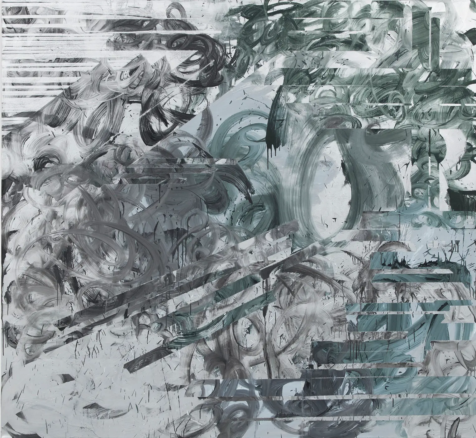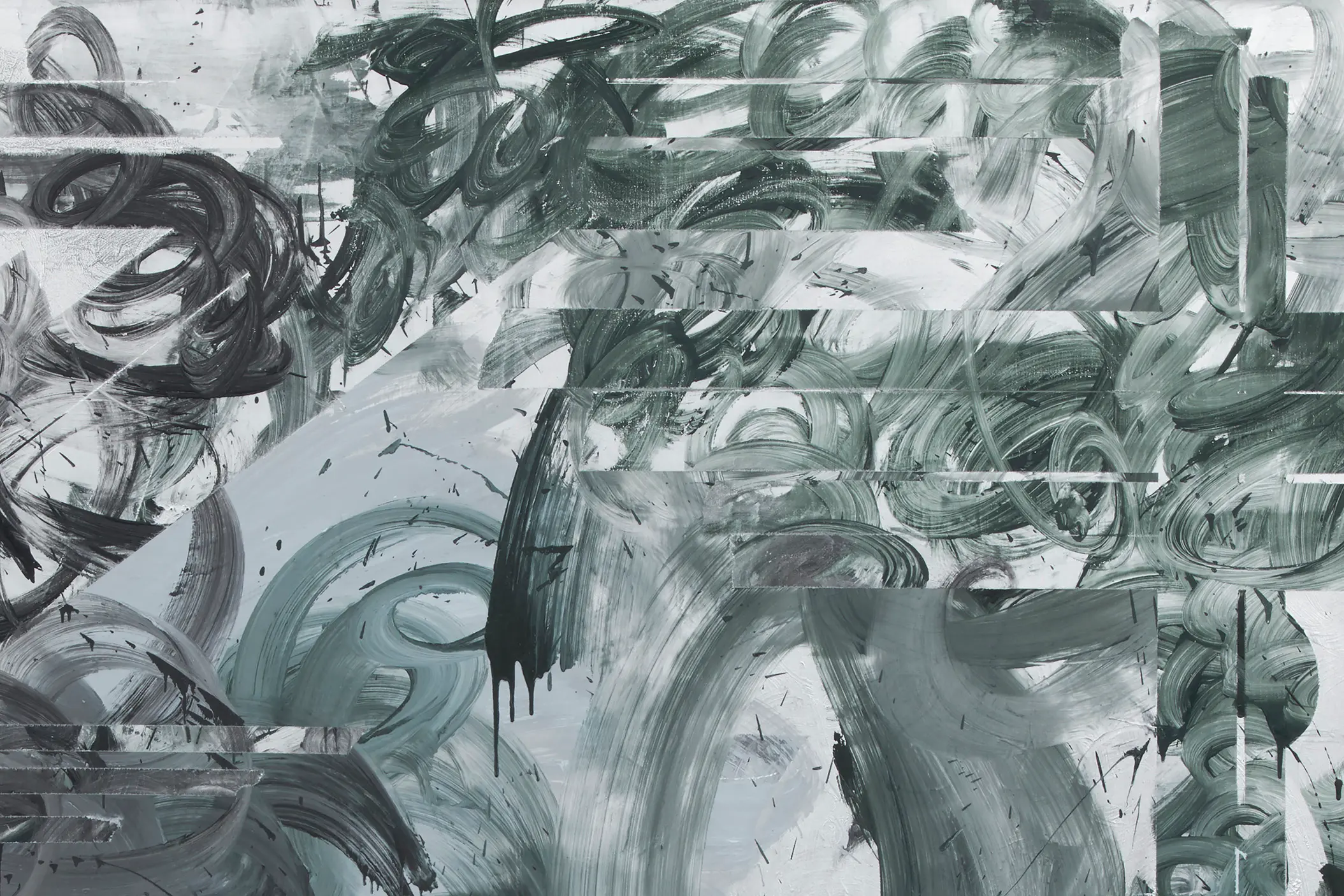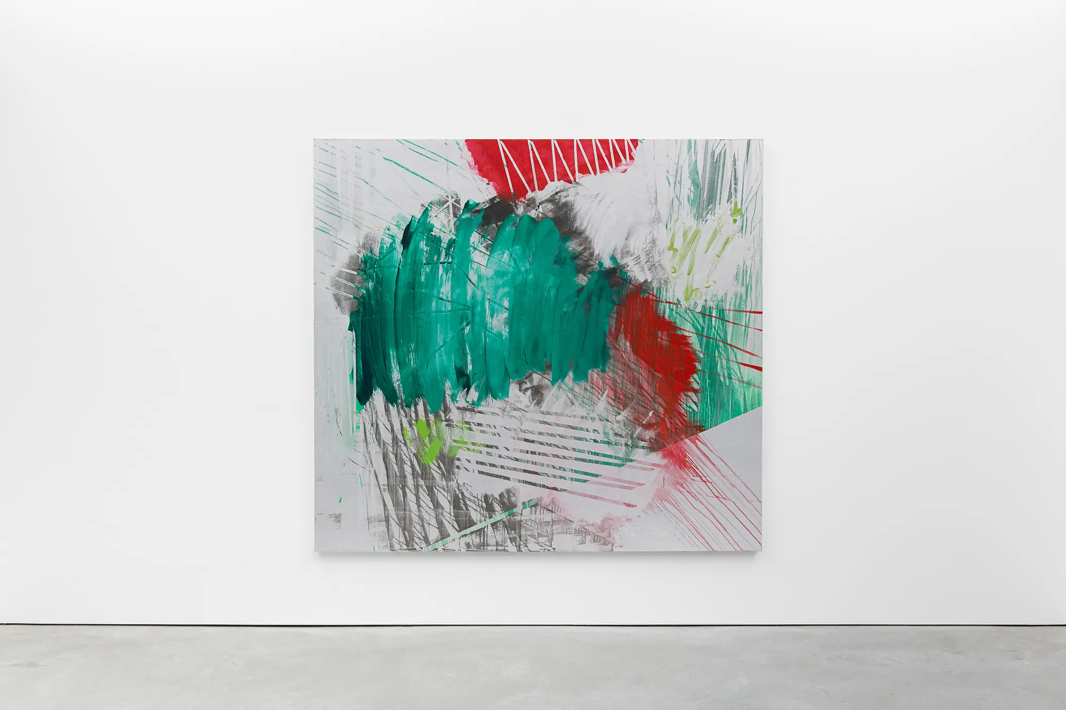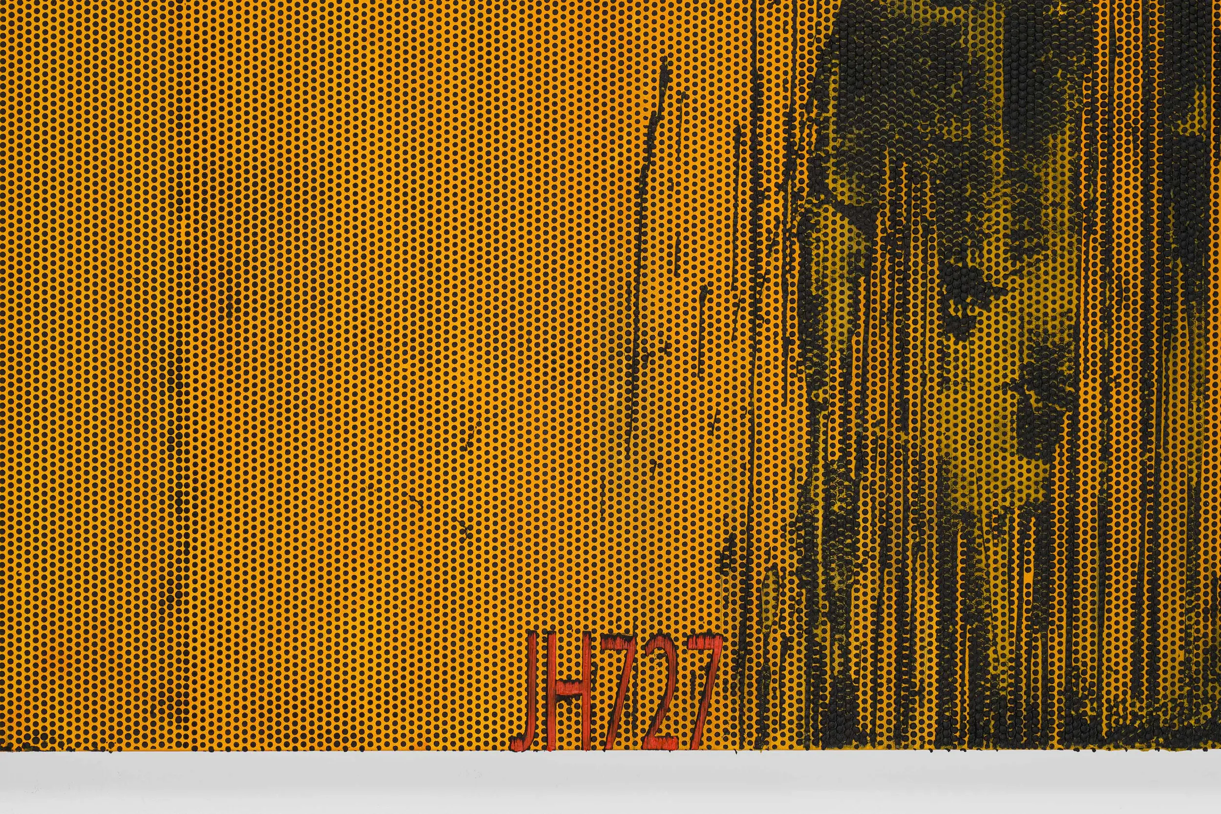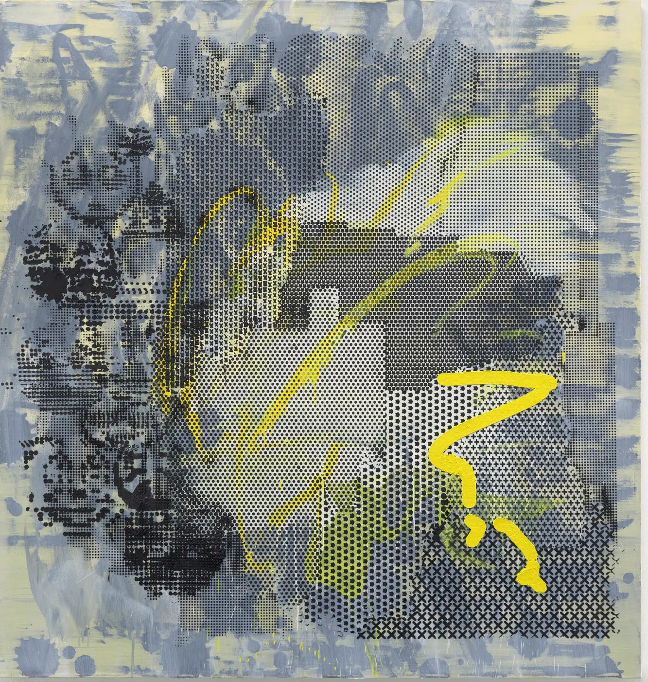Depuis quarante ans, Jacqueline Humphries s'interroge sur le sens de la peinture abstraite contemporaine dans un monde saturé par les médias et les technologies numériques. En sondant les limites de son médium, Jacqueline Humphries produit une densité de langages, de formes et de gestes qui ne relèvent pas uniquement de l’histoire de la peinture, mais empruntent également aux codes et registres esthétiques issus du flux continu de données et de marchandises qui défilent sur les surfaces froides et lisses de nos écrans. S'attachant à la surface des choses, elle utilise, entre autres matériaux, des pochoirs quadrillés, de la peinture fluorescente, des émoticônes et de la lumière noire pour paraphraser, parodier et réécrire les codes de l'abstraction d'après-guerre. Son travail bouleverse les oppositions traditionnelles figure/fond et planéité/profondeur pour créer des images anti-illusionnistes et anti-représentationnelles afin de « déconstruire » ses œuvres et ainsi jouer avec les idées d'historicisation et d'authenticité. L’œuvre de Humphries s’amuse de son irrévérence assumée, faisant affleurer à la surface une jubilation matérielle, tout en cherchant une « forme d’accroche psychologique » où le trouble, le suspense et la tension latente opèrent en filigrane. Cette présence spectrale, à la fois ténue et persistante, irrigue une grande partie de son travail ; ses œuvres imposantes sollicitent l’observation tout en perturbant la lecture directe de leurs processus de fabrication.