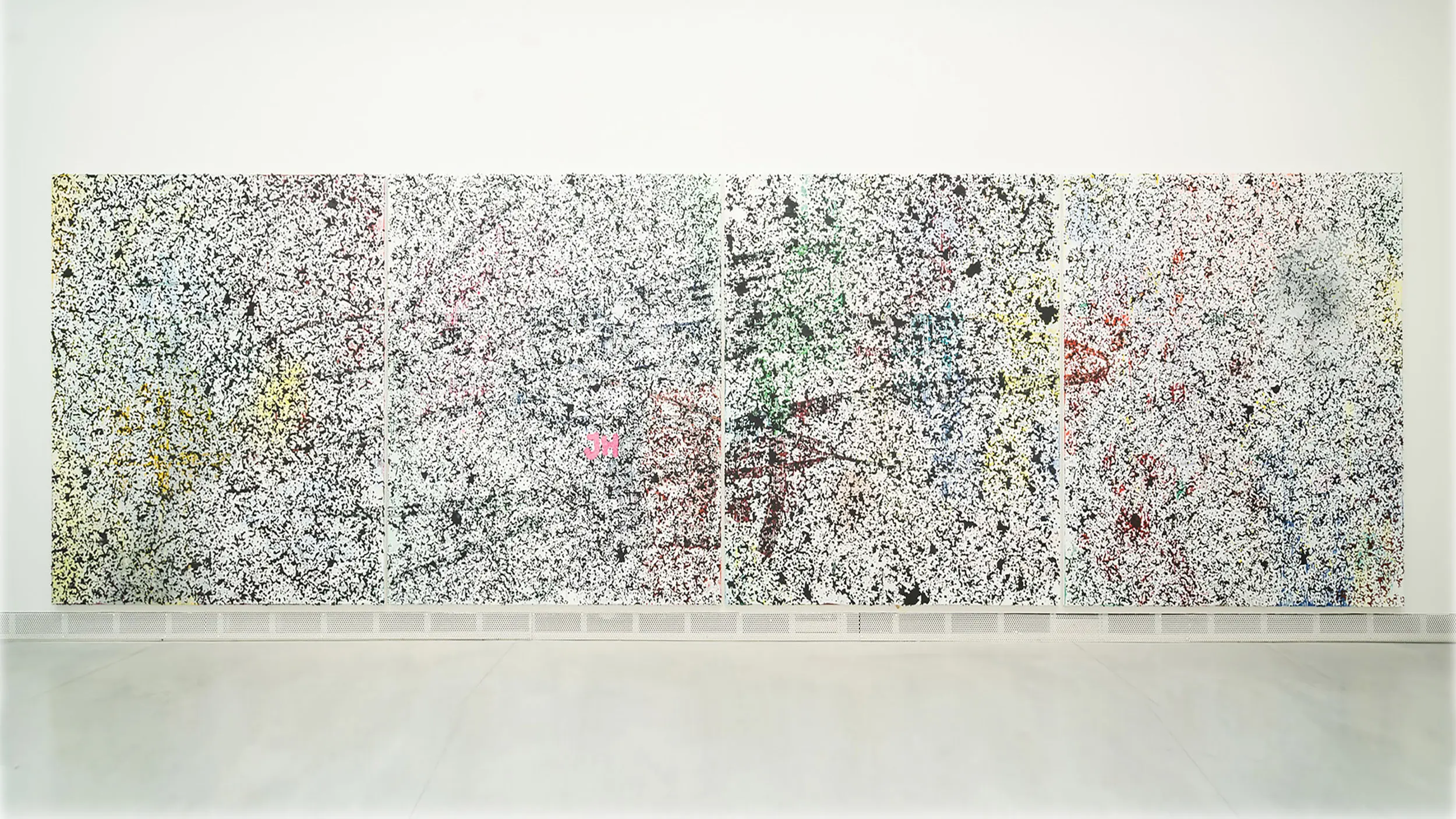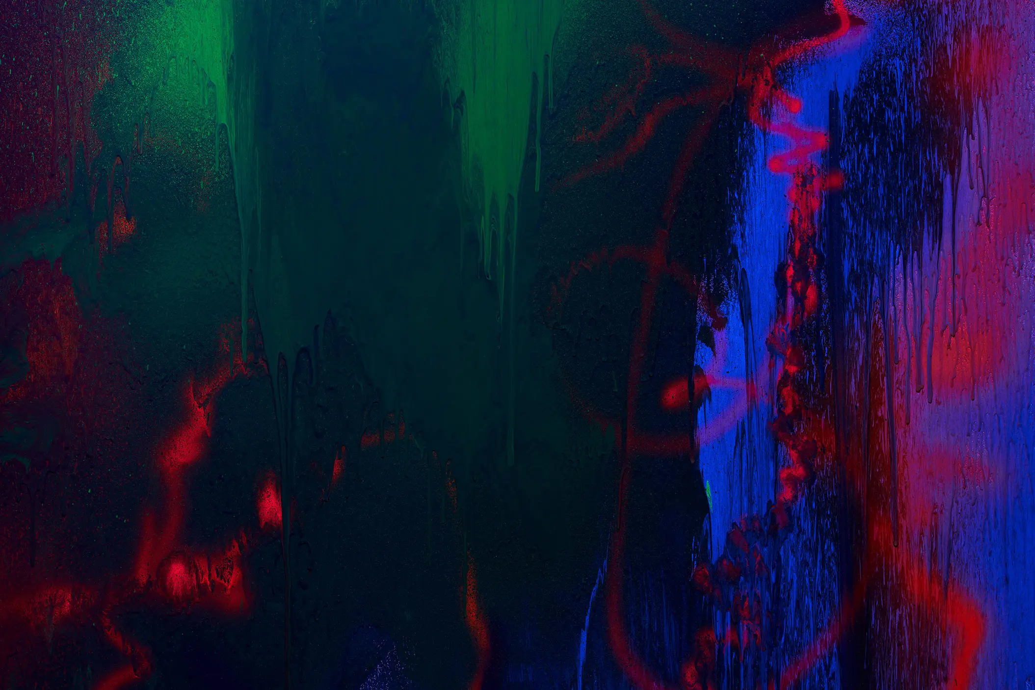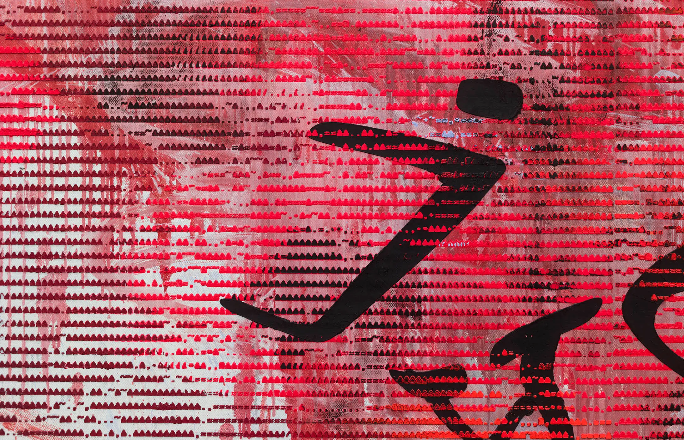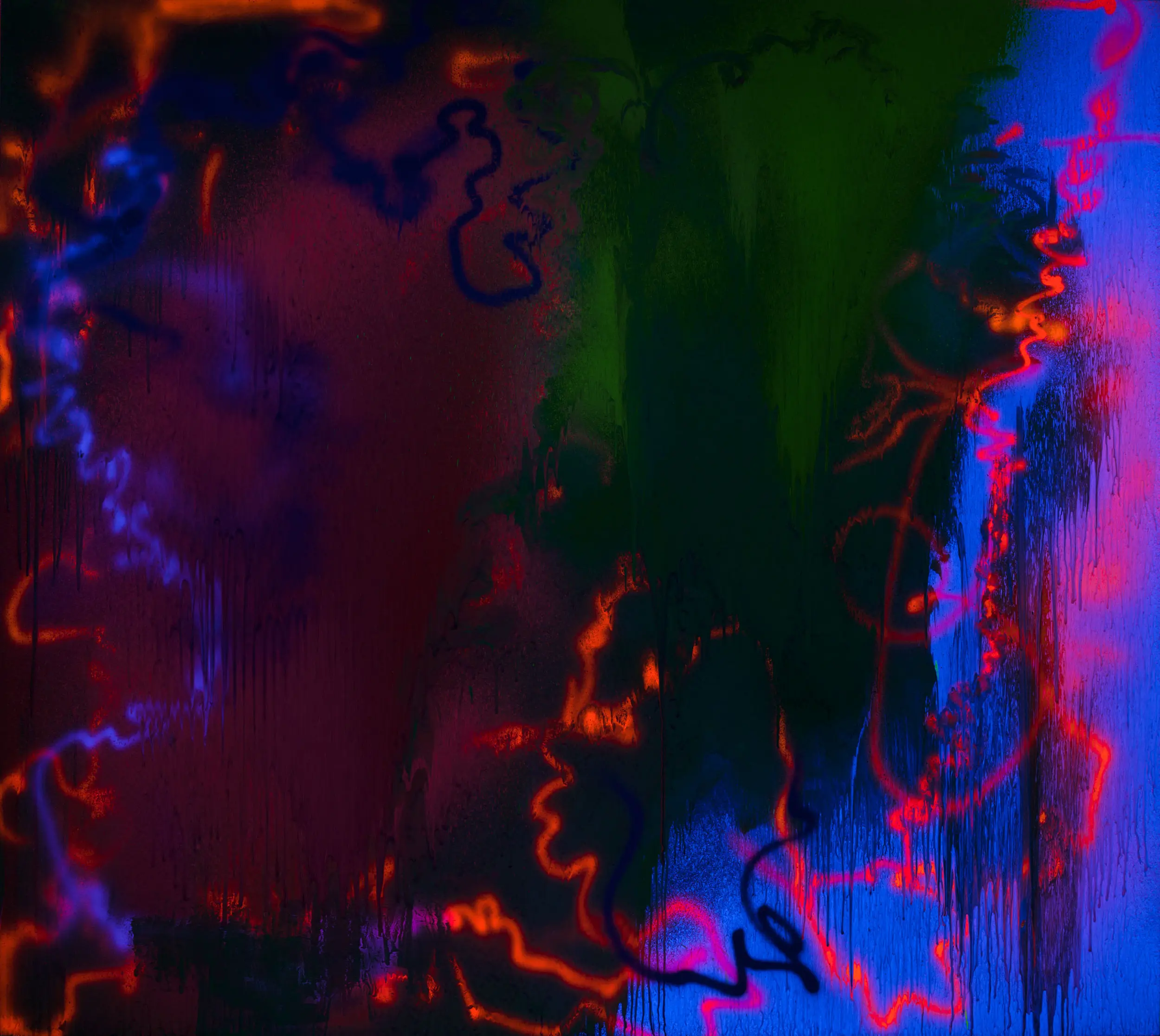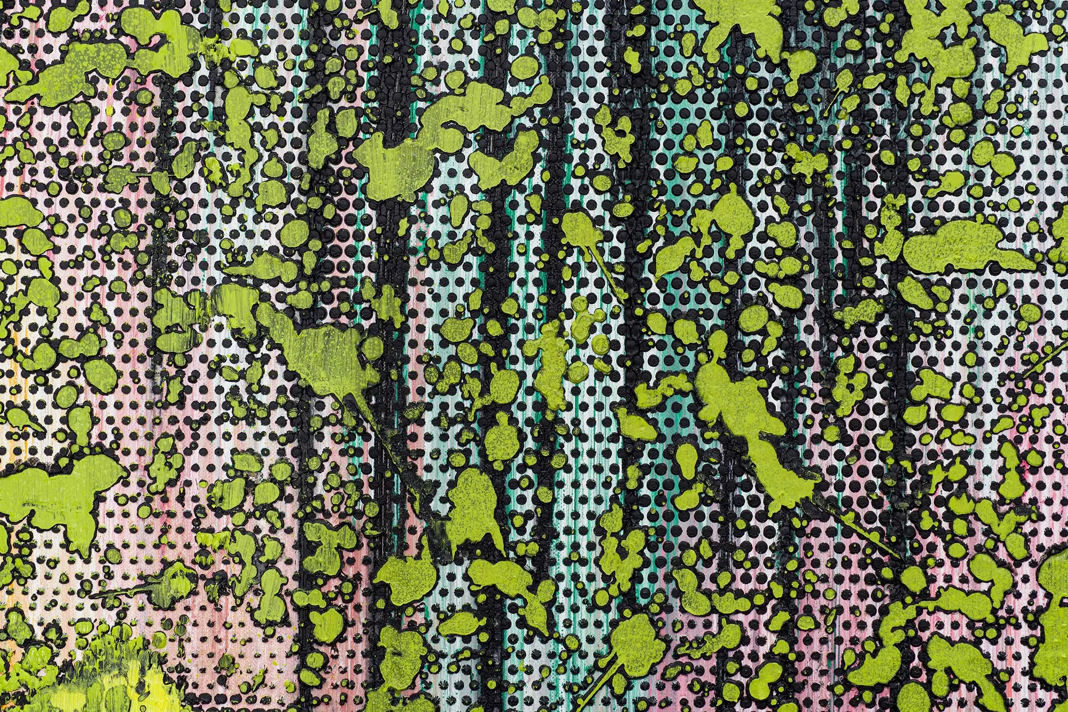 Depuis quarante ans, Jacqueline Humphries s'interroge sur le sens de la peinture abstraite contemporaine dans un monde saturé par les médias et les technologies numériques. En sondant les limites de son médium, Jacqueline Humphries produit une densité de langages, de formes et de gestes qui ne relèvent pas uniquement de l’histoire de la peinture, mais empruntent également aux codes et registres esthétiques issus du flux continu de données et de marchandises qui défilent sur les surfaces froides et lisses de nos écrans. S'attachant à la surface des choses, elle utilise, entre autres matériaux, des pochoirs quadrillés, de la peinture fluorescente, des émoticônes et de la lumière noire pour paraphraser, parodier et réécrire les codes de l'abstraction d'après-guerre. Son travail bouleverse les oppositions traditionnelles figure/fond et planéité/profondeur pour créer des images anti-illusionnistes et anti-représentationnelles afin de « déconstruire » ses œuvres et ainsi jouer avec les idées d'historicisation et d'authenticité. L’œuvre de Humphries s’amuse de son irrévérence assumée, faisant affleurer à la surface une jubilation matérielle, tout en cherchant une « forme d’accroche psychologique » où le trouble, le suspense et la tension latente opèrent en filigrane. Cette présence spectrale, à la fois ténue et persistante, irrigue une grande partie de son travail ; ses œuvres imposantes sollicitent l’observation tout en perturbant la lecture directe de leurs processus de fabrication.