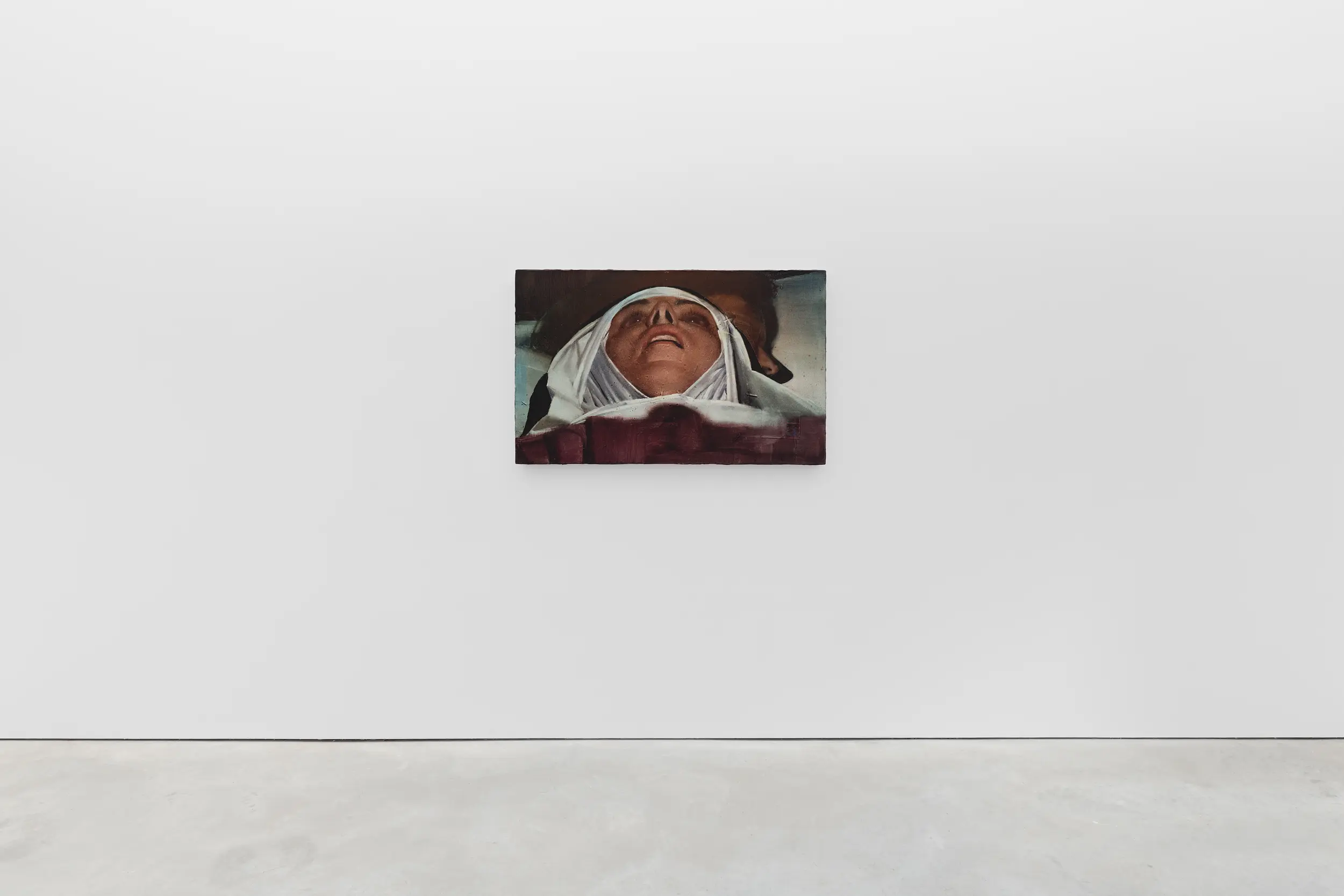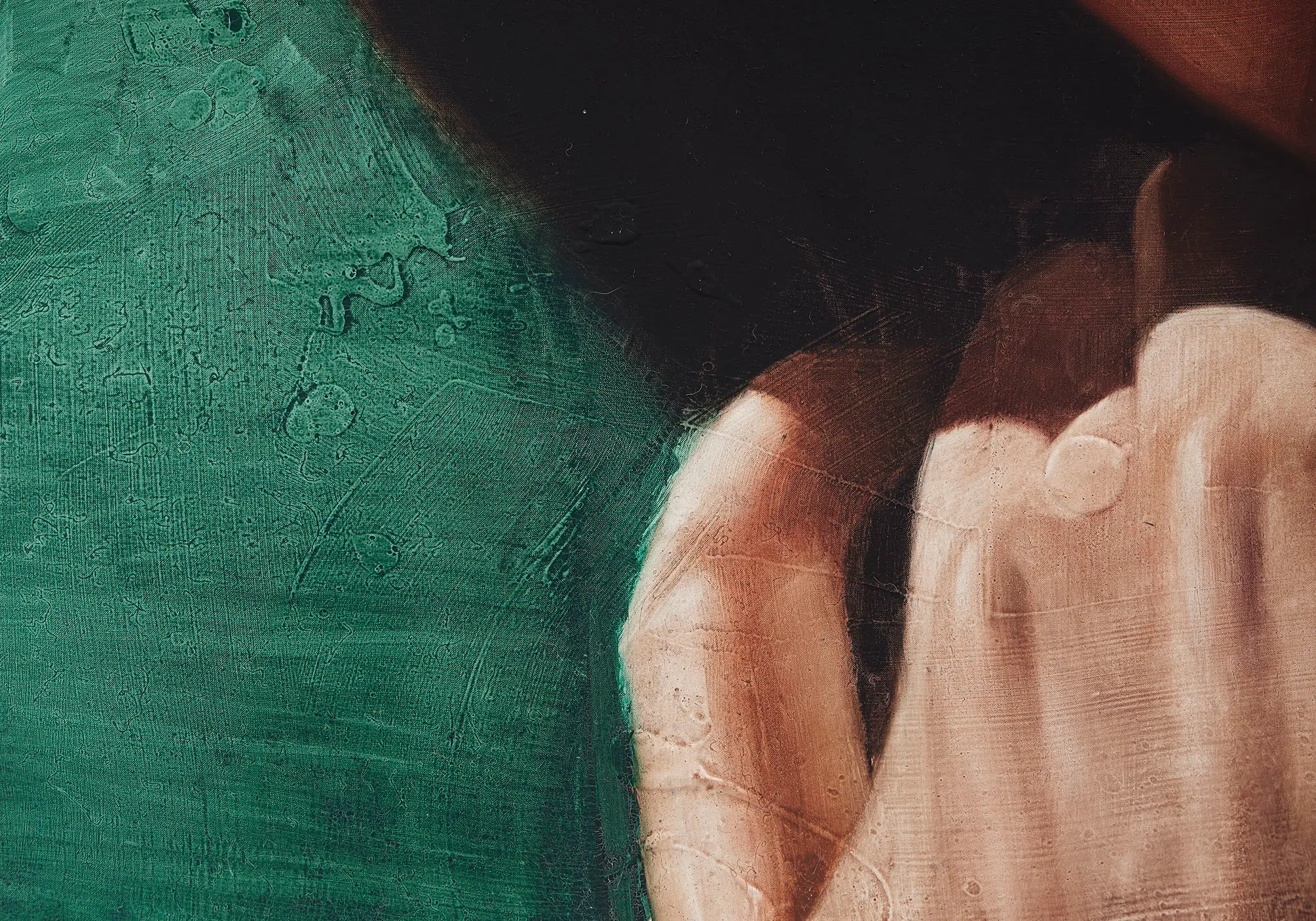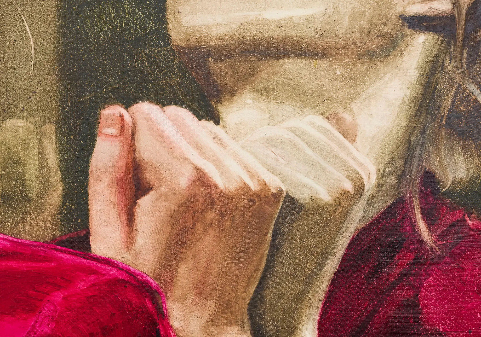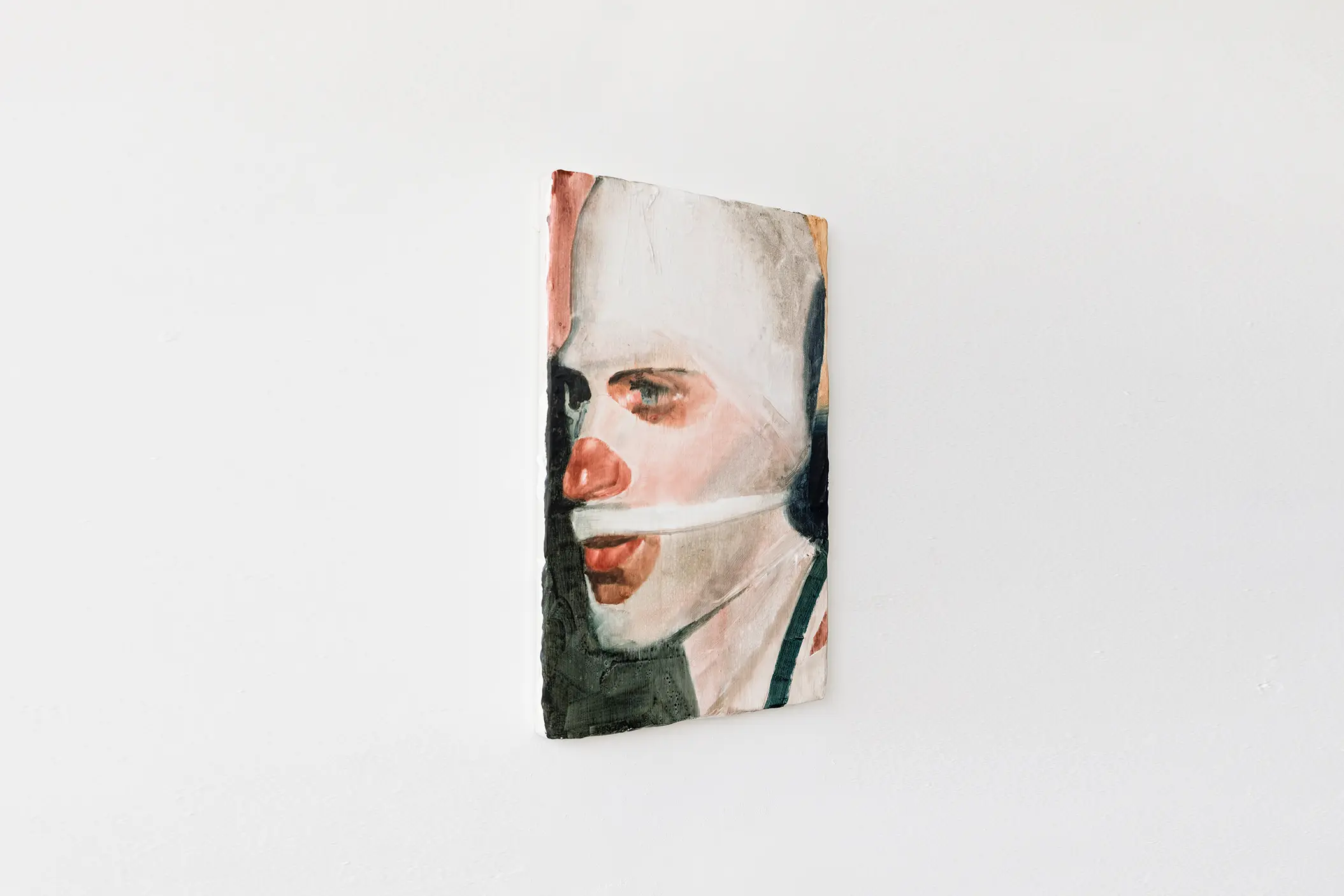 Lorsqu’il cherche une référence visuelle pour une peinture, Joseph Yaeger s’attache aux images qui provoquent un curieux mélange d’attirance et d’inconfort. Guidé par la logique du « punctum » formulée par Roland Barthes, l’artiste privilégie celles qui séduisent autant qu’elles désarçonnent. Initialement intuitive, sa méthode de sélection devient plus structurée dès lors que des thèmes ou figures récurrentes se manifestent, l’invitant à affiner ses choix de manière plus méthodique. Dans son processus de création, Yaeger applique de l’aquarelle sur des toiles abondamment recouvertes de gesso, soulignant ainsi les propriétés physiques du support – ses irrégularités comme ses reliefs – autant que les vicissitudes pigmentaires propres à l’aquarelle. Ses compositions couvrent un large éventail de variations : des rencontres intenses entre des personnages inconnus dans des environnements énigmatiques jusqu’à des représentations plus prosaïques d’animaux ou d’objets du quotidien.