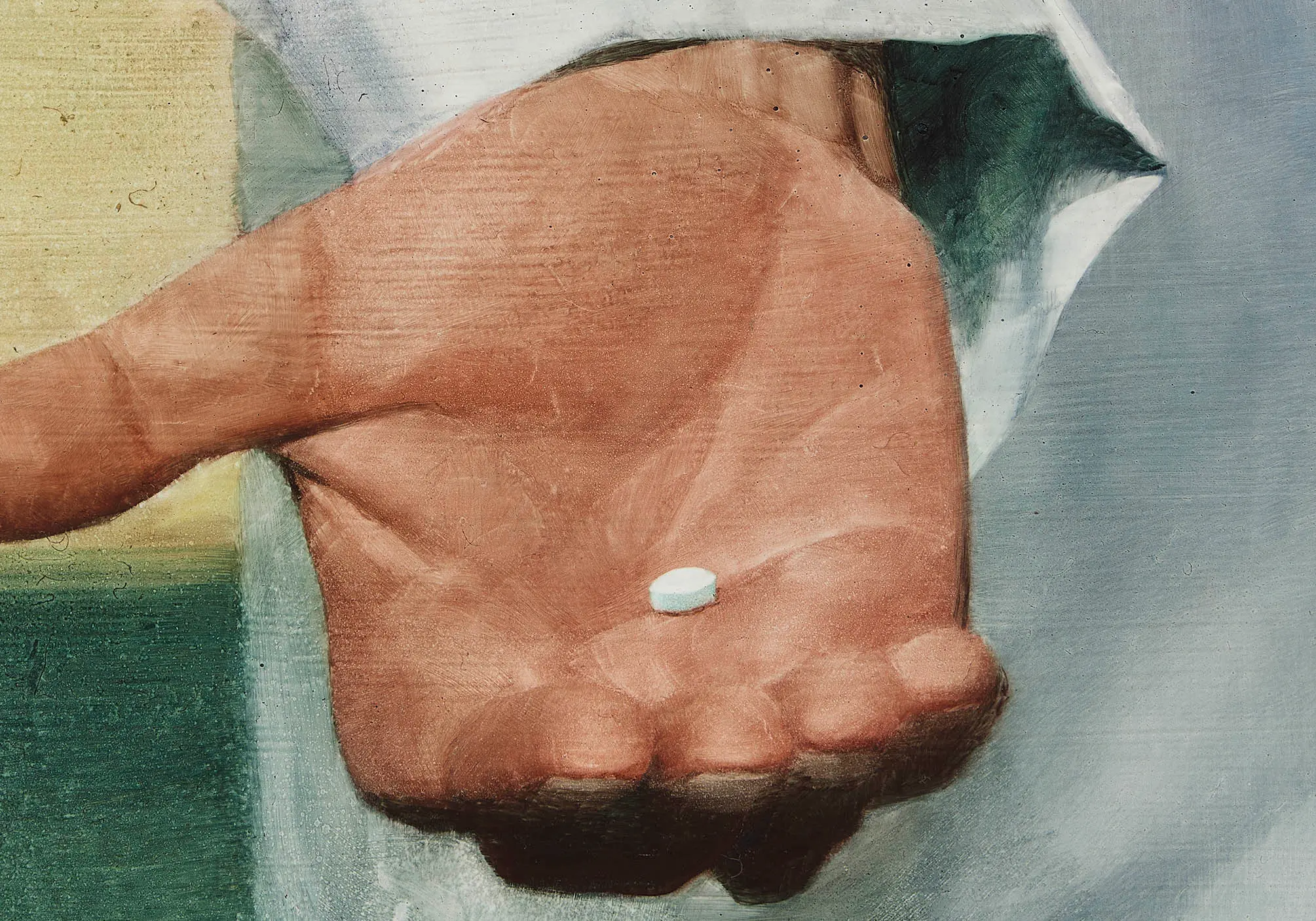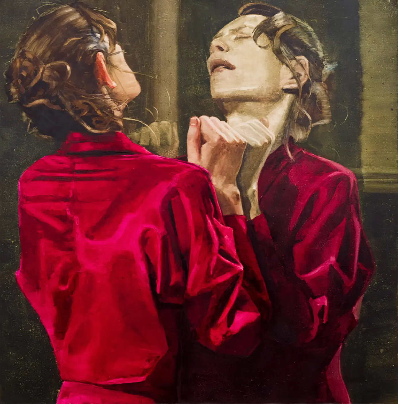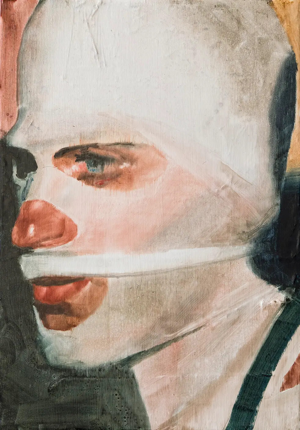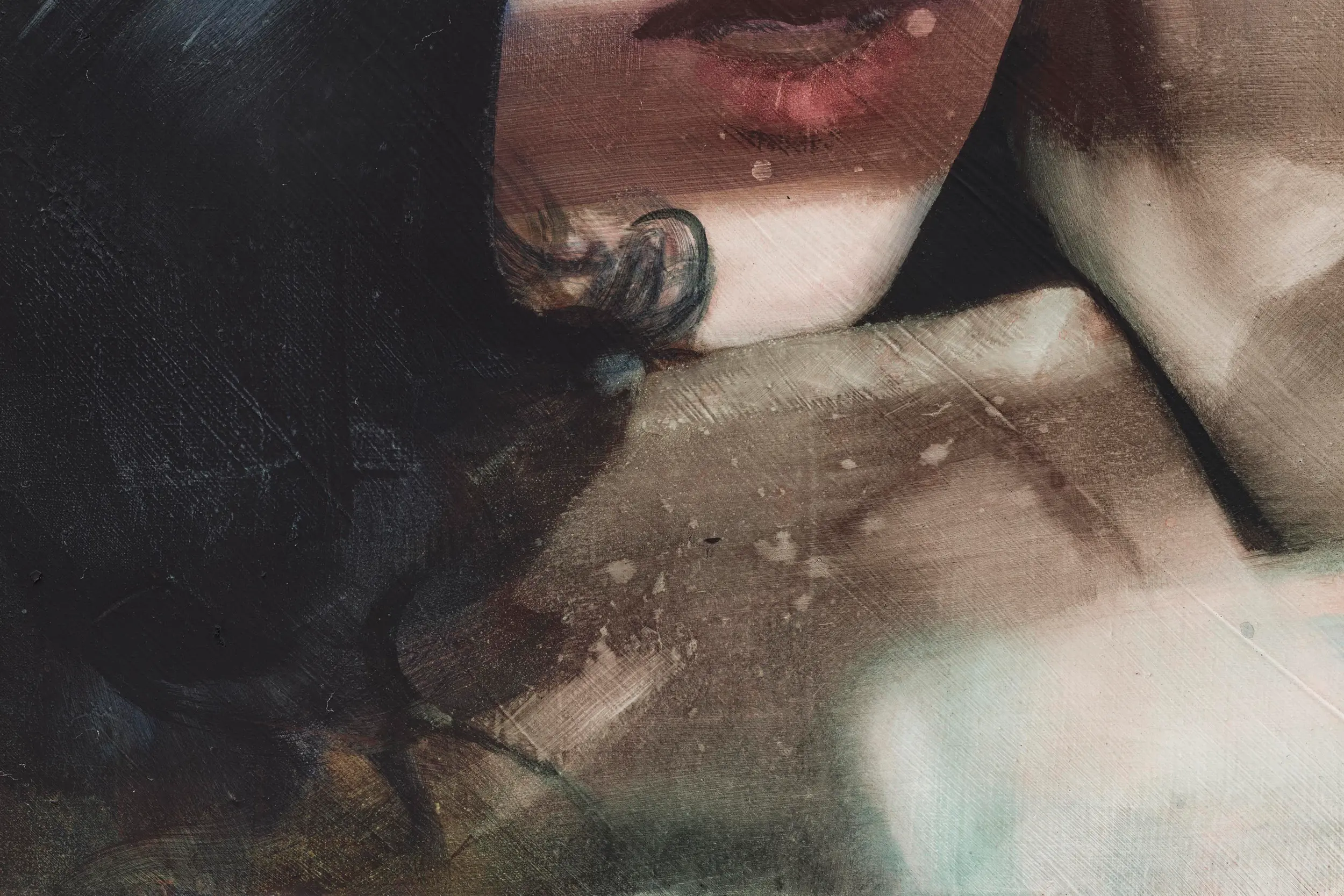 Lorsqu’il cherche une référence visuelle pour une peinture, Joseph Yaeger s’attache aux images qui provoquent un curieux mélange d’attirance et d’inconfort. Guidé par la logique du « punctum » formulée par Roland Barthes, l’artiste privilégie celles qui séduisent autant qu’elles désarçonnent. Initialement intuitive, sa méthode de sélection devient plus structurée dès lors que des thèmes ou figures récurrentes se manifestent, l’invitant à affiner ses choix de manière plus méthodique. Dans son processus de création, Yaeger applique de l’aquarelle sur des toiles abondamment recouvertes de gesso, soulignant ainsi les propriétés physiques du support – ses irrégularités comme ses reliefs – autant que les vicissitudes pigmentaires propres à l’aquarelle. Ses compositions couvrent un large éventail de variations : des rencontres intenses entre des personnages inconnus dans des environnements énigmatiques jusqu’à des représentations plus prosaïques d’animaux ou d’objets du quotidien.