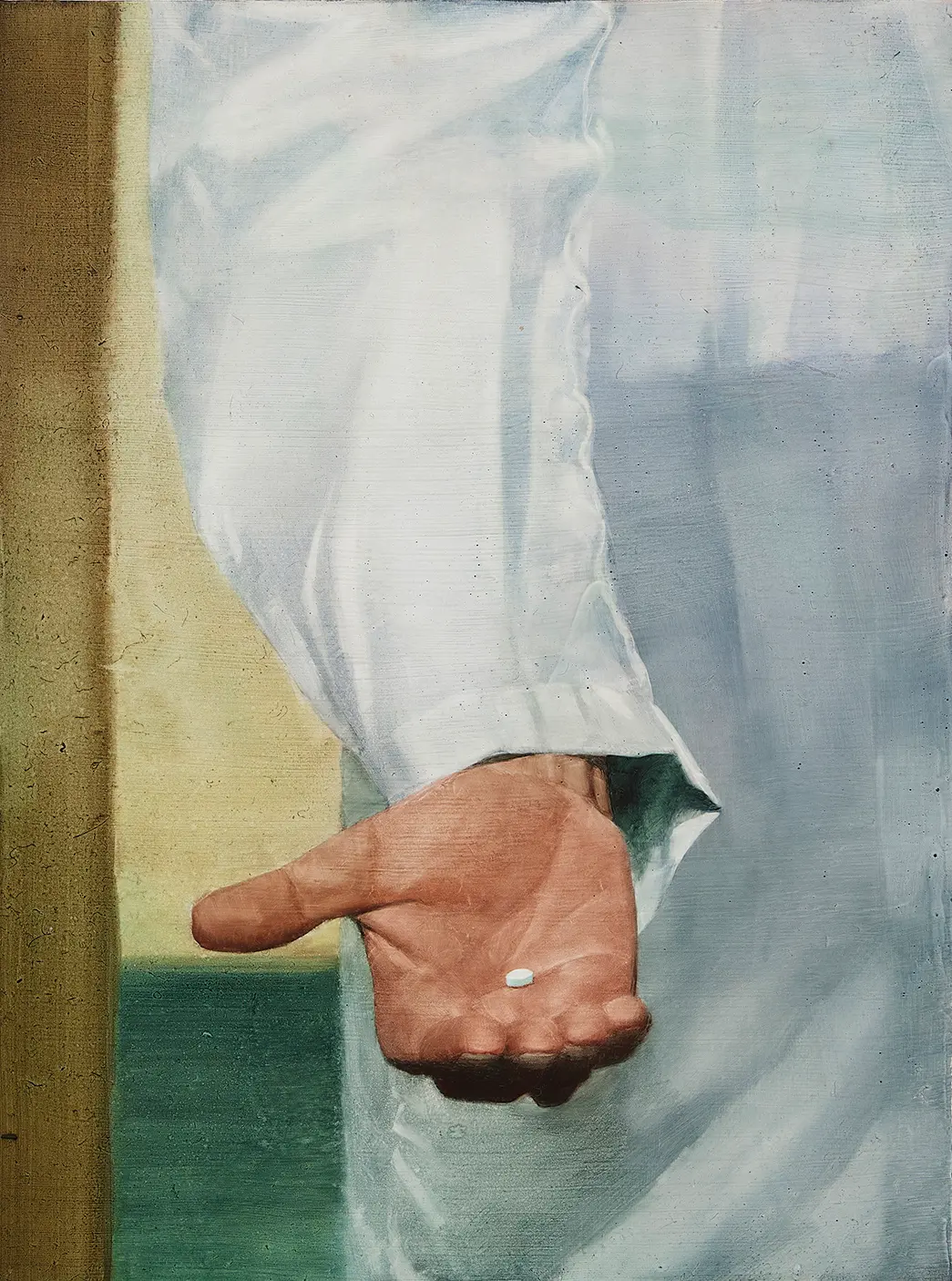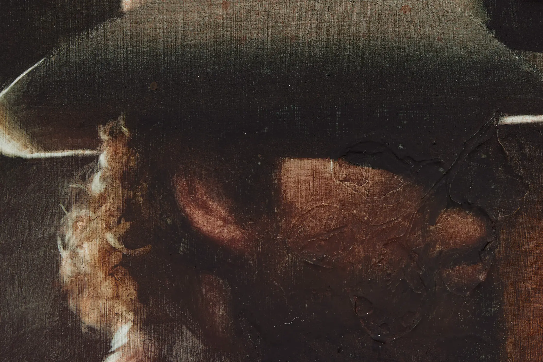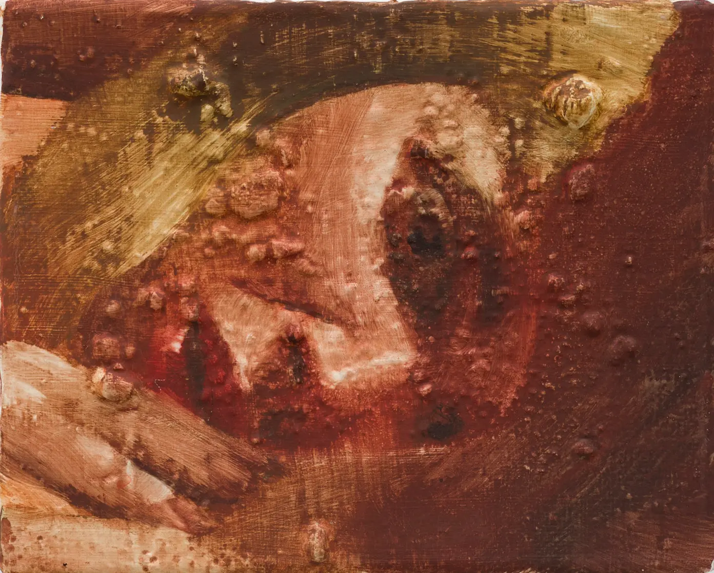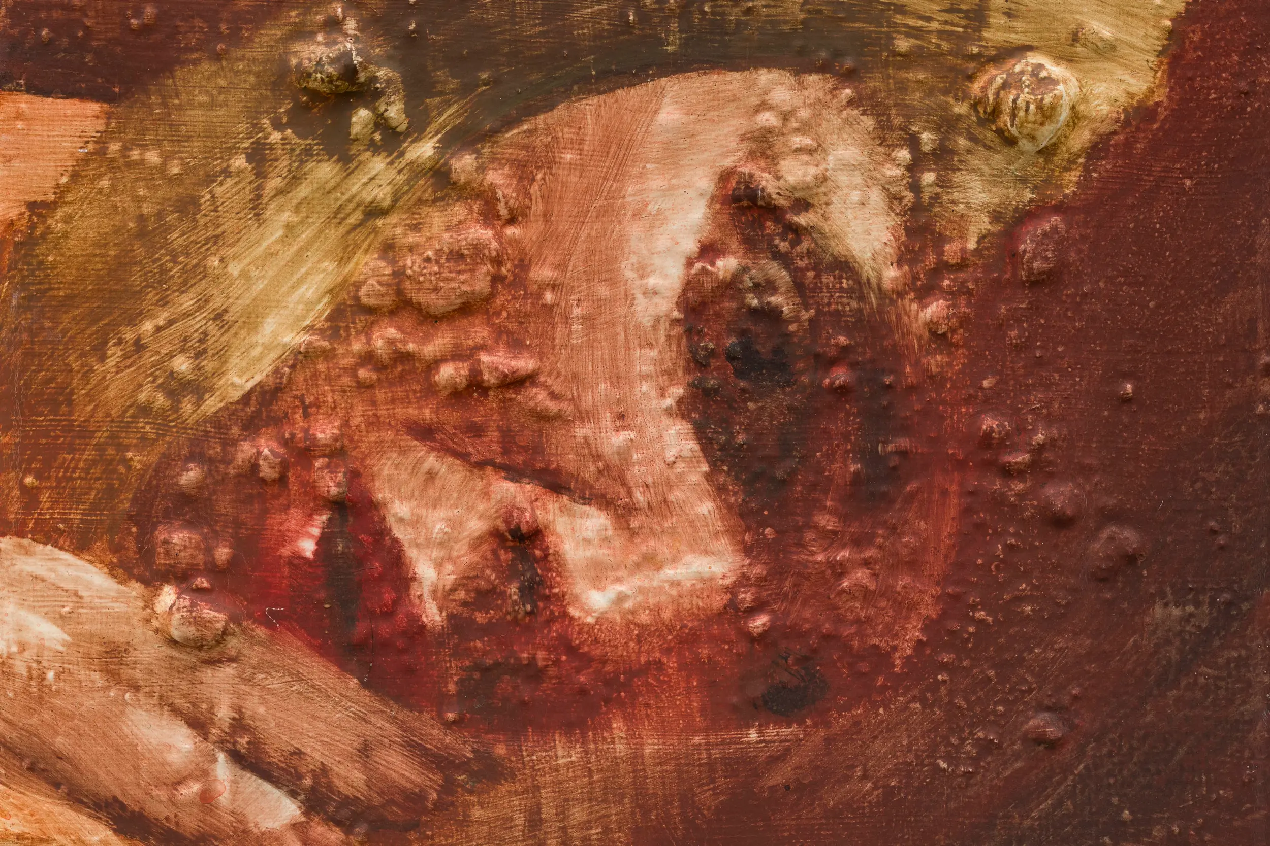 Lorsqu’il cherche une référence visuelle pour une peinture, Joseph Yaeger s’attache aux images qui provoquent un curieux mélange d’attirance et d’inconfort. Guidé par la logique du « punctum » formulée par Roland Barthes, l’artiste privilégie celles qui séduisent autant qu’elles désarçonnent. Initialement intuitive, sa méthode de sélection devient plus structurée dès lors que des thèmes ou figures récurrentes se manifestent, l’invitant à affiner ses choix de manière plus méthodique. Dans son processus de création, Yaeger applique de l’aquarelle sur des toiles abondamment recouvertes de gesso, soulignant ainsi les propriétés physiques du support – ses irrégularités comme ses reliefs – autant que les vicissitudes pigmentaires propres à l’aquarelle. Ses compositions couvrent un large éventail de variations : des rencontres intenses entre des personnages inconnus dans des environnements énigmatiques jusqu’à des représentations plus prosaïques d’animaux ou d’objets du quotidien.