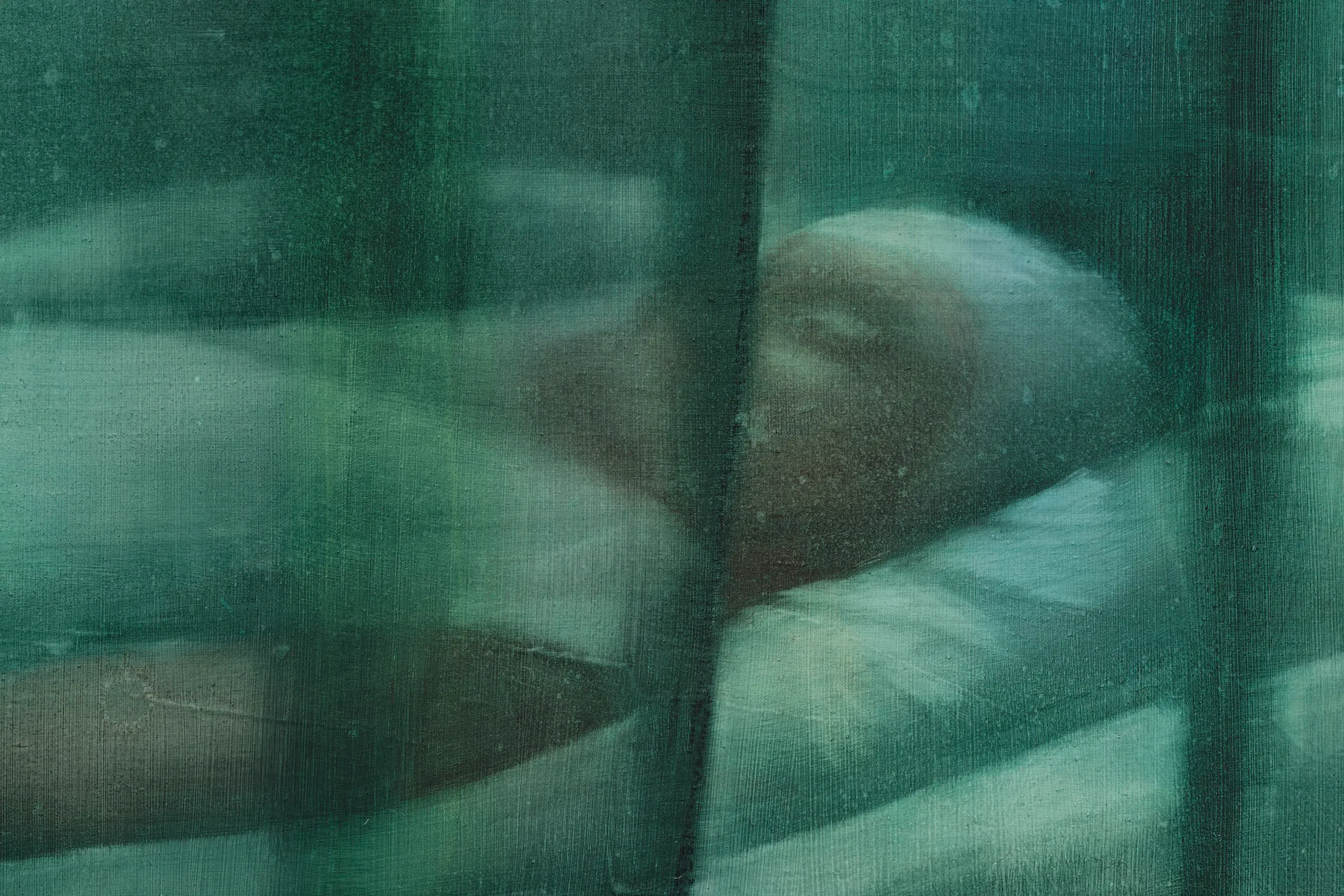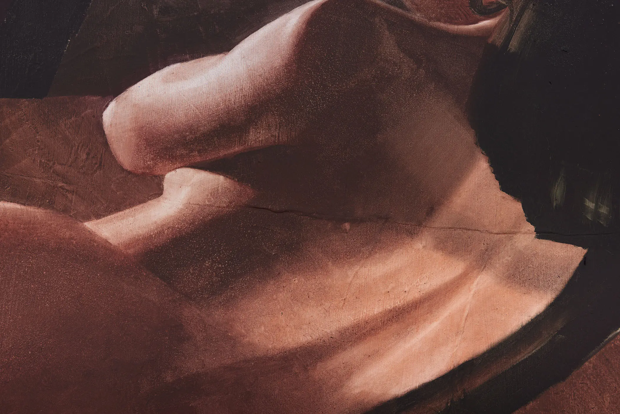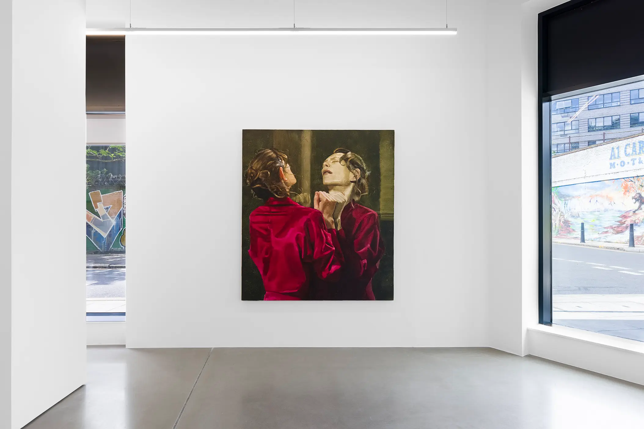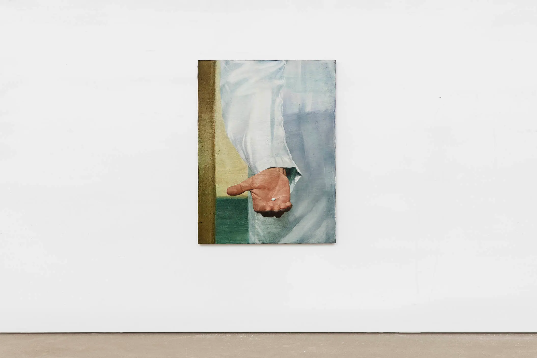 Désireux d’explorer les zones de tension entre visibilité et opacité, il compose des images volontairement fragmentées, où ce qui est montré ou caché conditionne une perception ambivalente, émotionnellement et spatialement instable. Si son écriture donne corps à des mondes fantasmés, peuplés de personnages aussi insaisissables que scintillants, c’est par la peinture que l’artiste tente de capter ce qui échappe au langage. Joseph Yaeger décrit l’acte de peindre comme une expérience détachée de lui-même, dans laquelle son corps ne serait qu’un vecteur, une interface de transmission entre l’image et la matière : « Je conçois la traduction en peinture comme une sorte de projection – utilisant mon corps comme projecteur, plus spécifiquement. Je ne dessine pas, je n'utilise pas de projecteur, et je peins au sol. L'image, lorsque tout s'enclenche, semble surgir comme par magie des différentes couches de peinture accumulée. C'est vraiment assez mystérieux pour moi ; il n’y a que très peu, voire aucune, pensée consciente formulée en mots dans l'acte de peindre. »