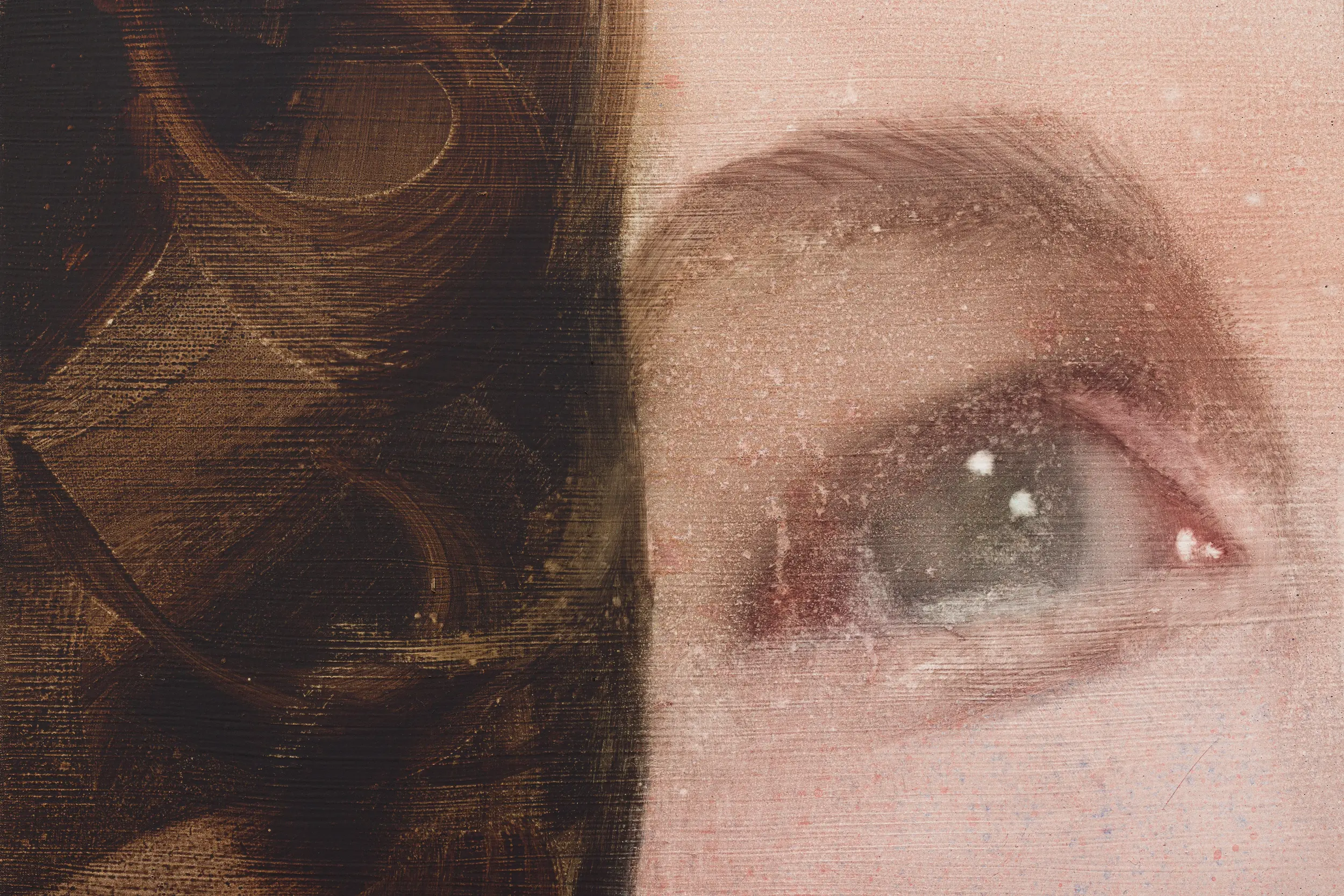 No thoughts but what we see, 2025, watercolour and studio debris on gessoed linen (detail)