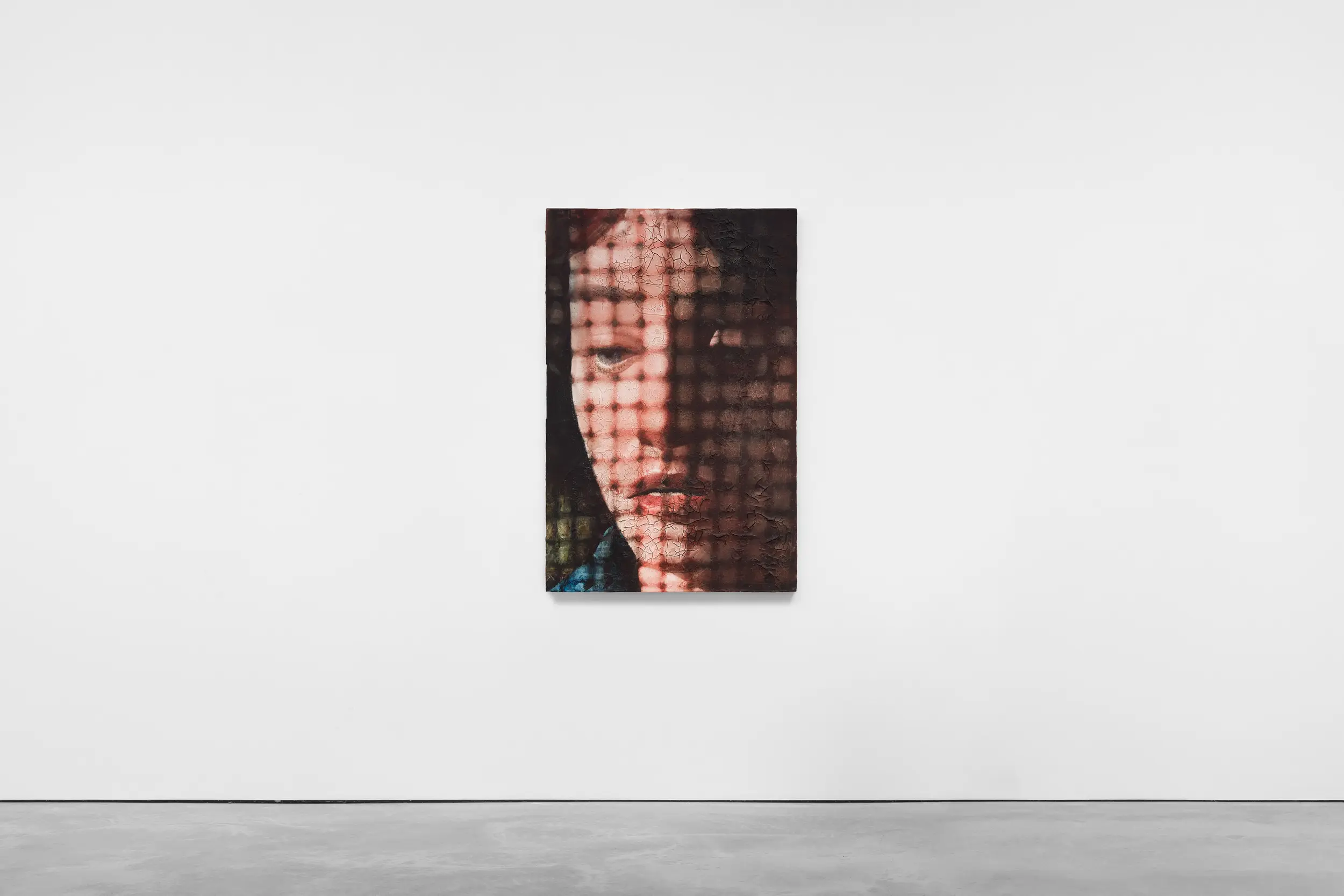 watercolour, studio debris and photograph on gessoed linen, 130 x 85.5 cm, 51 1/8 x 33 5/8 in