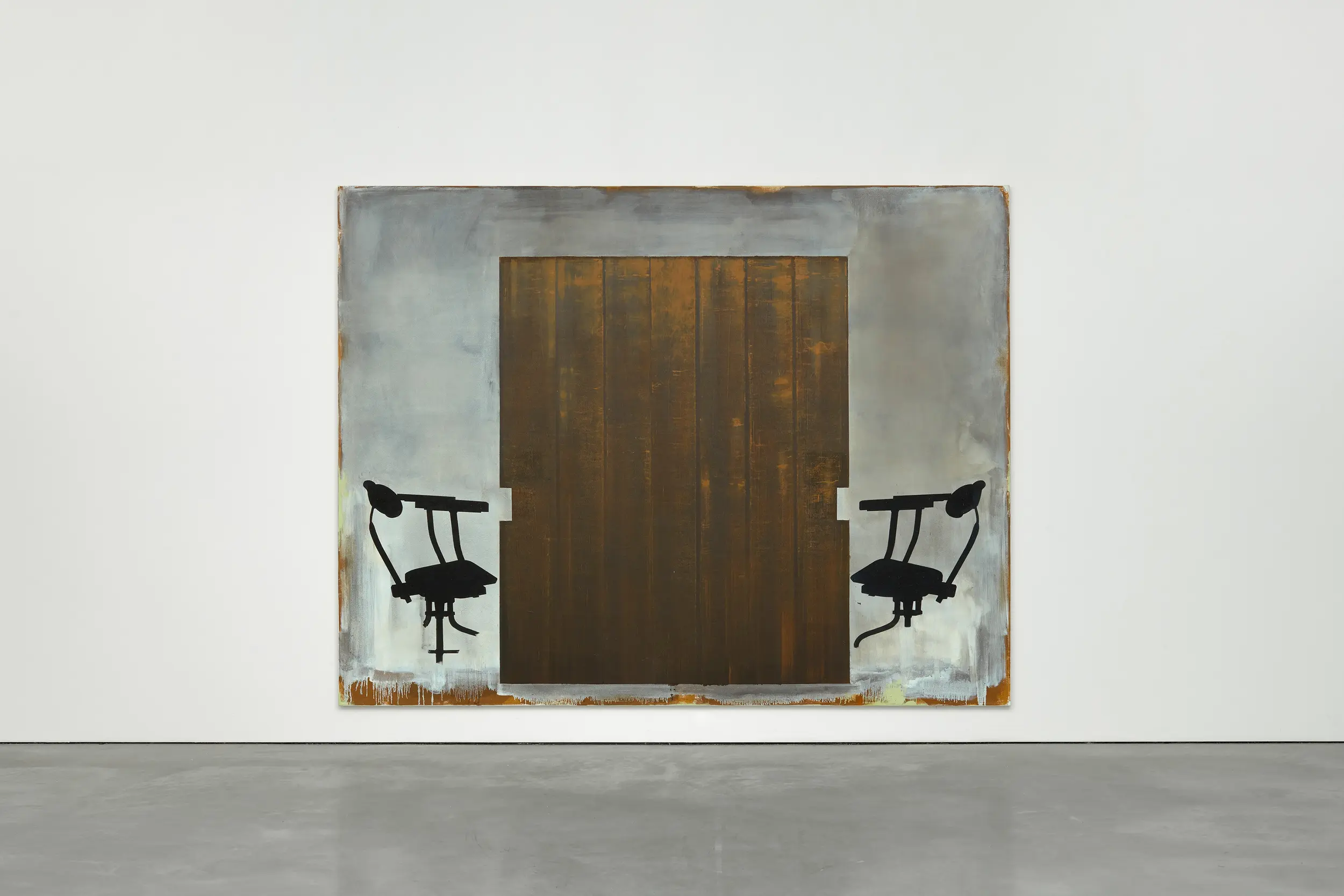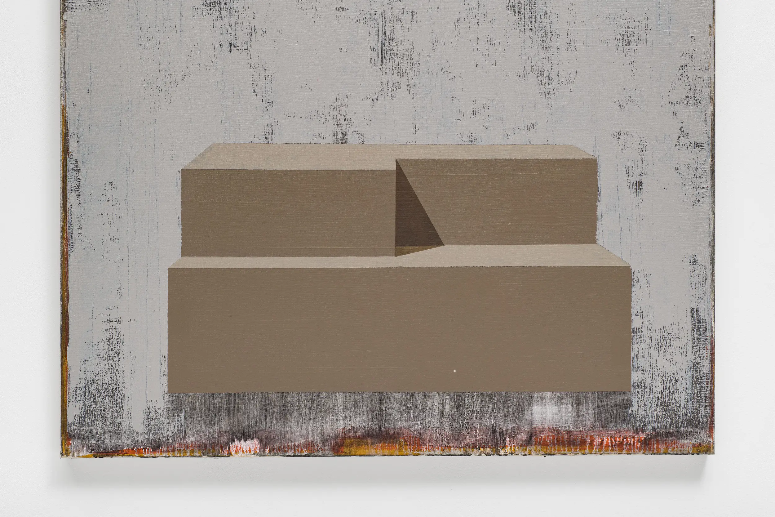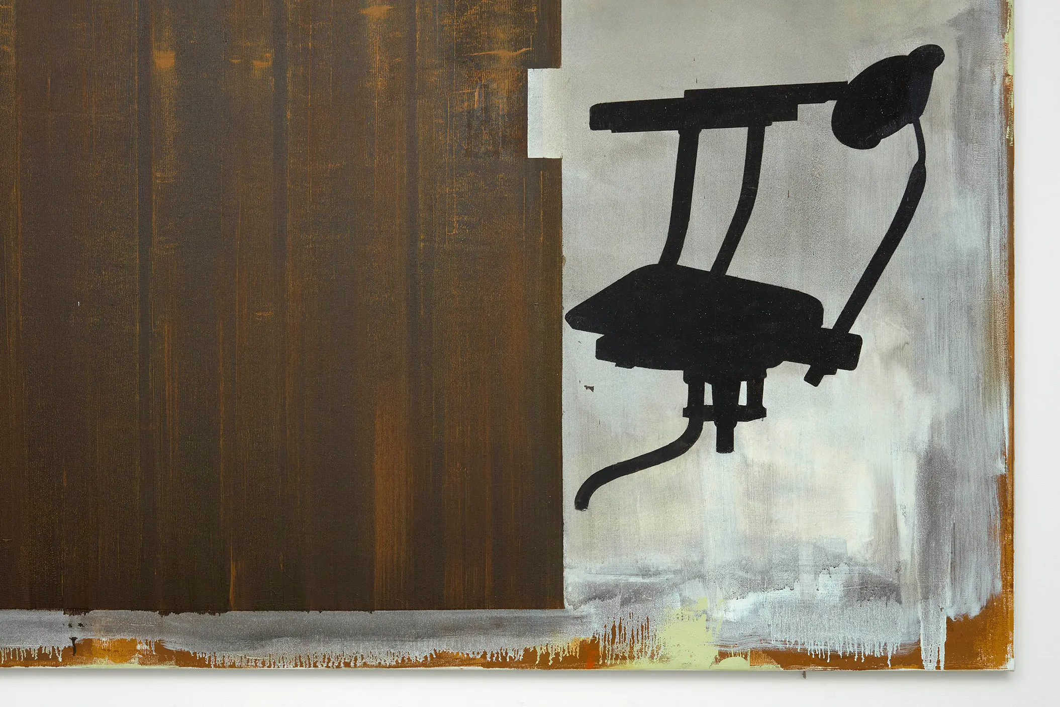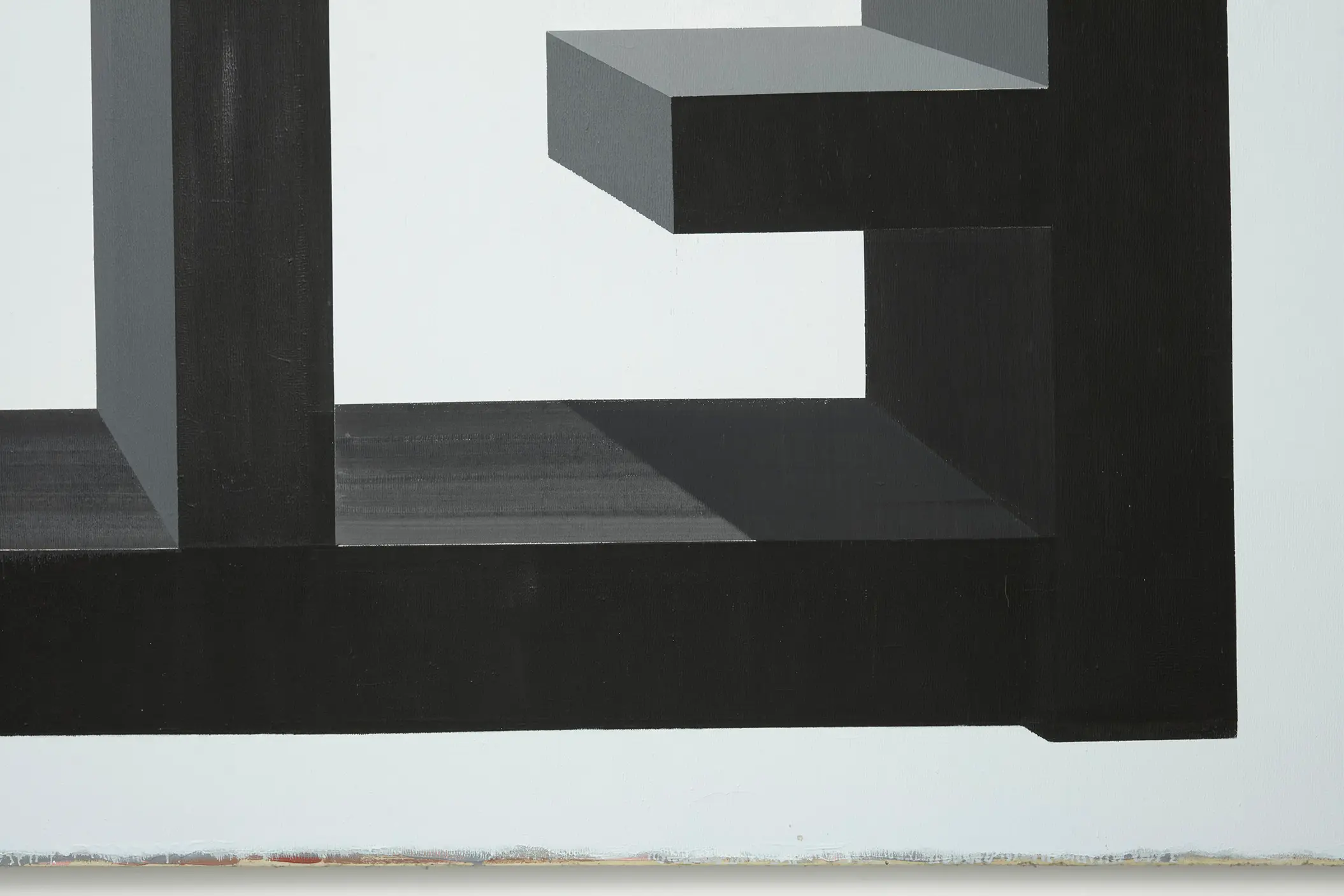 Peignant presque quotidiennement depuis plus de six décennies, Michael Simpson est réputé pour ses toiles grand format qui reprennent un nombre limité de motifs. Influencé par la peinture vénitienne du XVe siècle et les débuts de la peinture flamande, le vocabulaire visuel de Simpson renvoie sans cesse à sa croyance en « l'infamie de l'histoire religieuse », selon ses propres termes. En abordant de manière incisive la foi, l’existentialisme et l’autorité, ces figures — bancs, échelles, chaires et autres dispositifs liturgiques ou quotidiens — forment le socle précis de ses compositions. Ces structures, minutieusement détaillées, se transforment en formes presque abstraites : des bancs semblent flotter dans un espace dépouillé ; des échelles s’élèvent sans destination. Les peintures de l’artiste se distinguent par une grande sobriété et une austérité assumée, tout en déployant une profondeur spatiale saisissante, bien que leurs sujets soient rendus sur une surface plane. Malgré leur austérité et leur simplicité, chacune de ses toiles contient une réflexion profonde sur une histoire particulière. Dans la série, Leper Squint par exemple, ce qui pourrait à première vue apparaître comme une référence récurrente au carré noir de Kasimir Malevitch est en réalité une représentation poignante d'un hagioscope, ou d’un oculus, un petit trou façonné dans les murs extérieurs des églises médiévales pour permettre aux lépreux de voir et d'entendre les sacrements sans contaminer l'assemblée. Autre exemple : les bancs peints par Michael Simpson, commencés en 1989, sont un hommage au philosophe italien de la Renaissance Giordano Bruno, brûlé vif en 1600 pour hérésie.