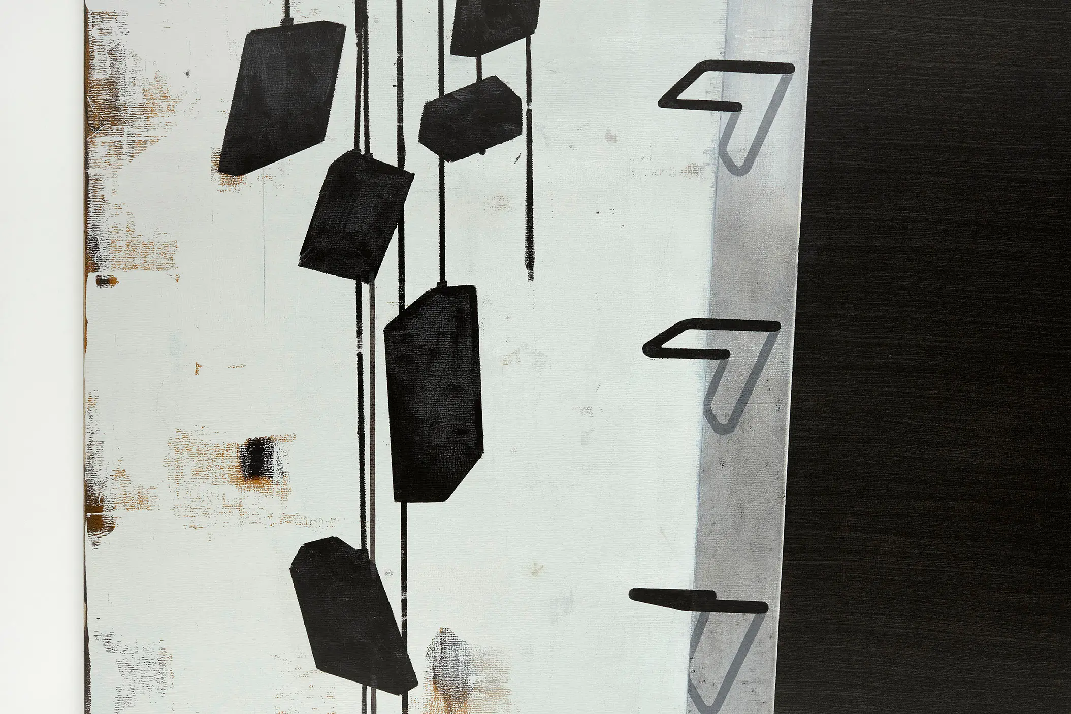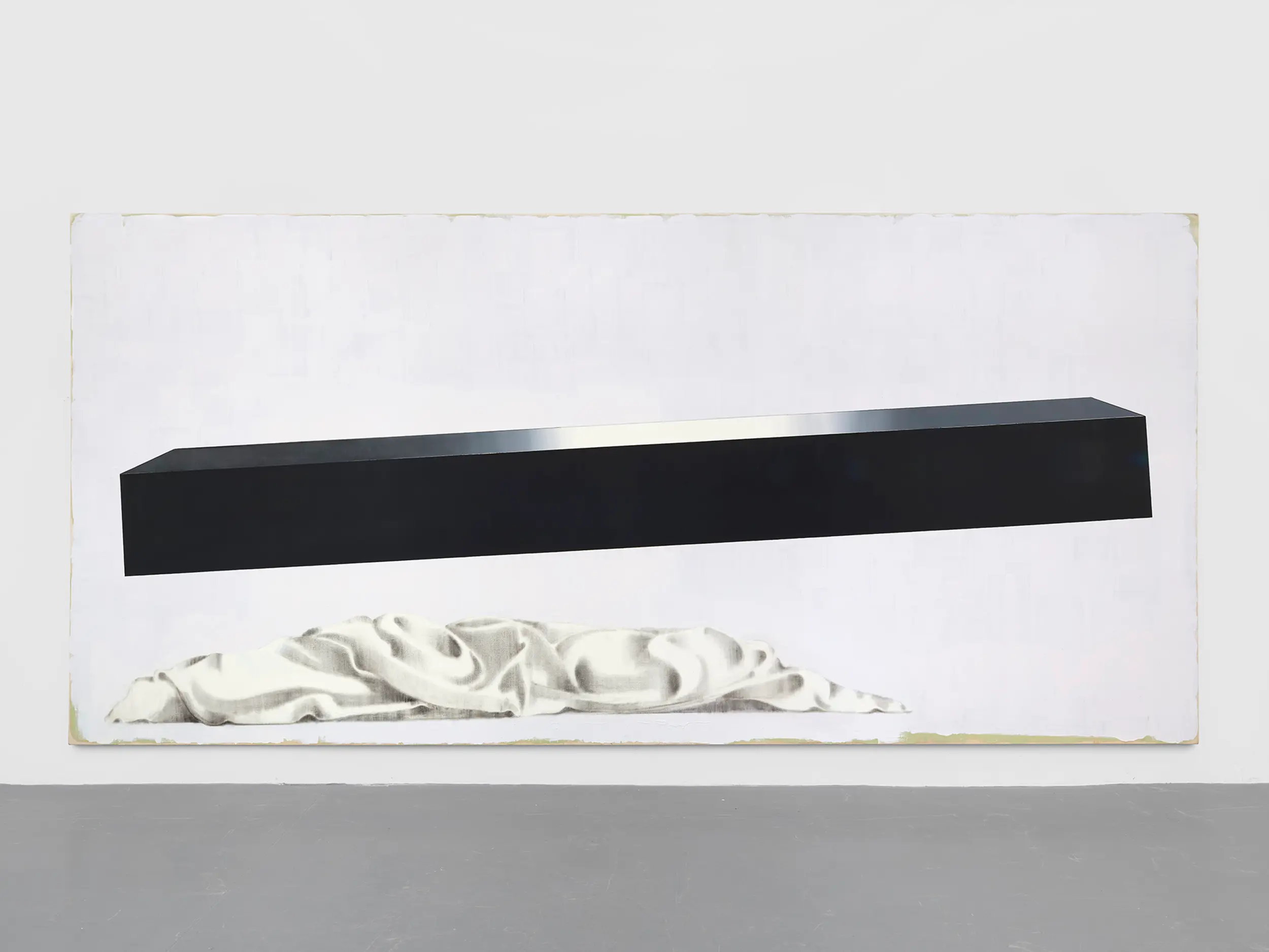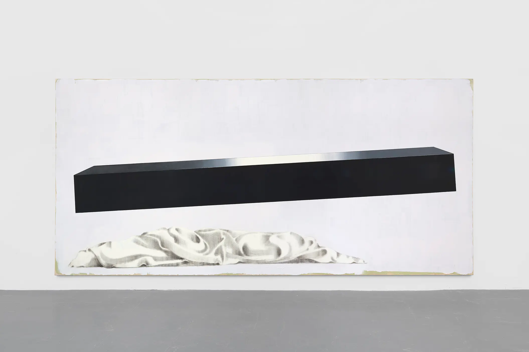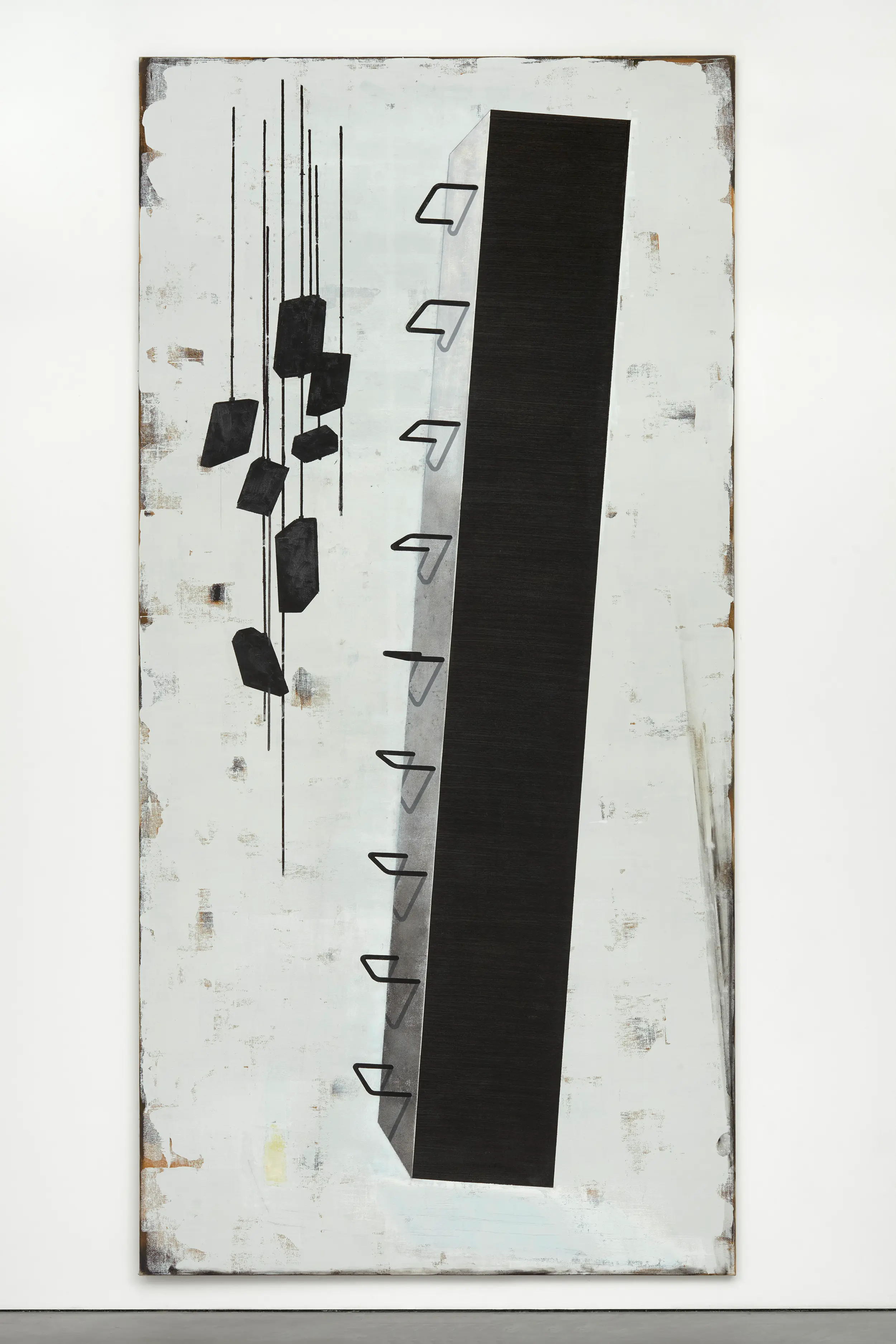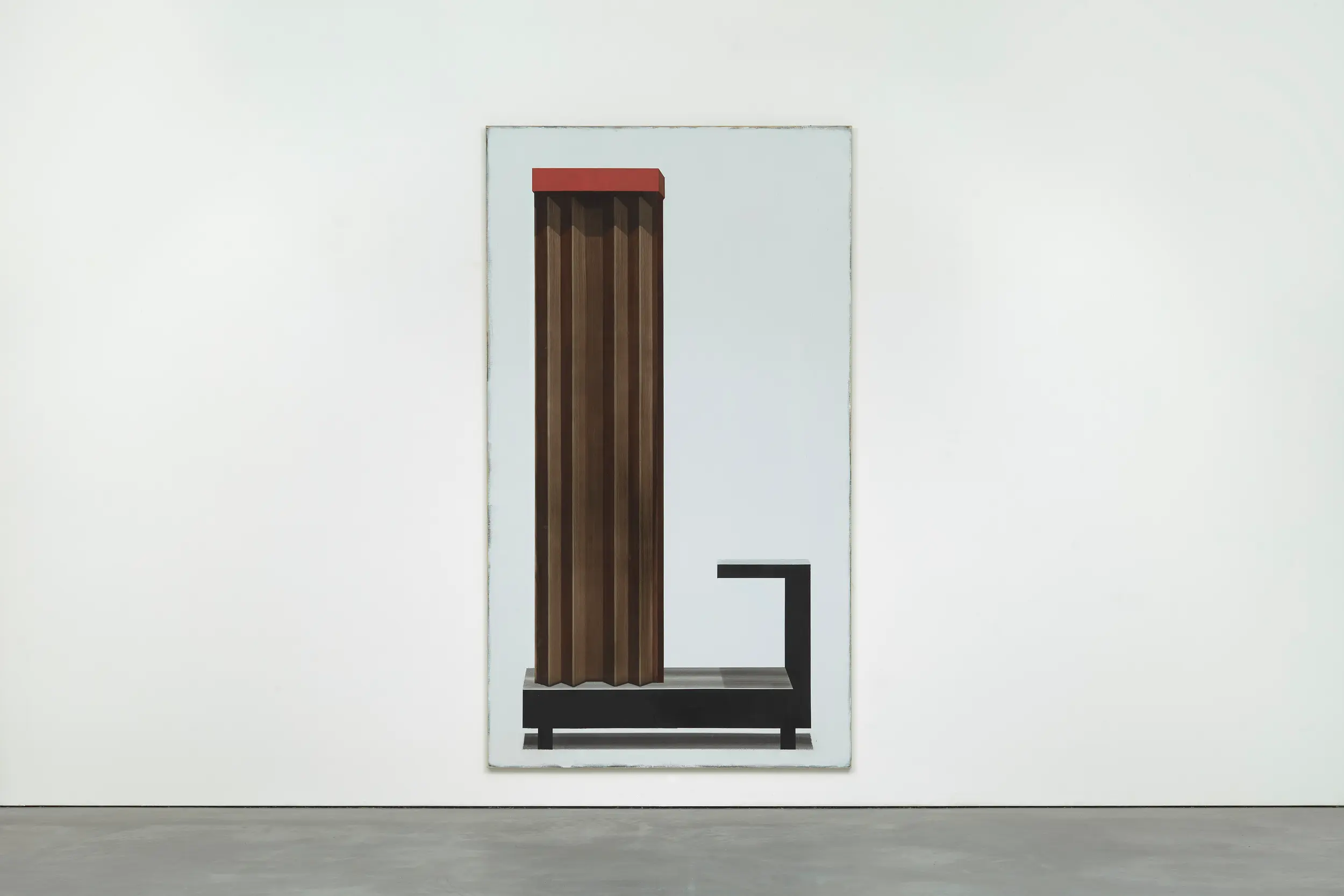 Peignant presque quotidiennement depuis plus de six décennies, Michael Simpson est réputé pour ses toiles grand format qui reprennent un nombre limité de motifs. Influencé par la peinture vénitienne du XVe siècle et les débuts de la peinture flamande, le vocabulaire visuel de Simpson renvoie sans cesse à sa croyance en « l'infamie de l'histoire religieuse », selon ses propres termes. En abordant de manière incisive la foi, l’existentialisme et l’autorité, ces figures — bancs, échelles, chaires et autres dispositifs liturgiques ou quotidiens — forment le socle précis de ses compositions. Ces structures, minutieusement détaillées, se transforment en formes presque abstraites : des bancs semblent flotter dans un espace dépouillé ; des échelles s’élèvent sans destination. Les peintures de l’artiste se distinguent par une grande sobriété et une austérité assumée, tout en déployant une profondeur spatiale saisissante, bien que leurs sujets soient rendus sur une surface plane. Malgré leur austérité et leur simplicité, chacune de ses toiles contient une réflexion profonde sur une histoire particulière. Dans la série, Leper Squint par exemple, ce qui pourrait à première vue apparaître comme une référence récurrente au carré noir de Kasimir Malevitch est en réalité une représentation poignante d'un hagioscope, ou d’un oculus, un petit trou façonné dans les murs extérieurs des églises médiévales pour permettre aux lépreux de voir et d'entendre les sacrements sans contaminer l'assemblée. Autre exemple : les bancs peints par Michael Simpson, commencés en 1989, sont un hommage au philosophe italien de la Renaissance Giordano Bruno, brûlé vif en 1600 pour hérésie.