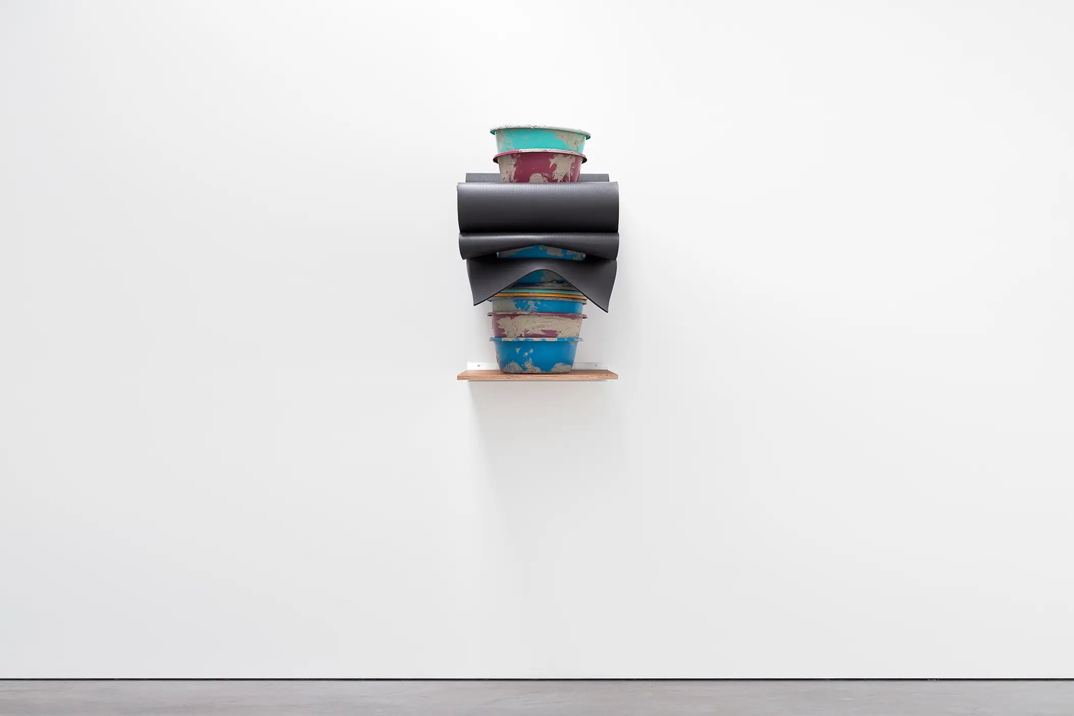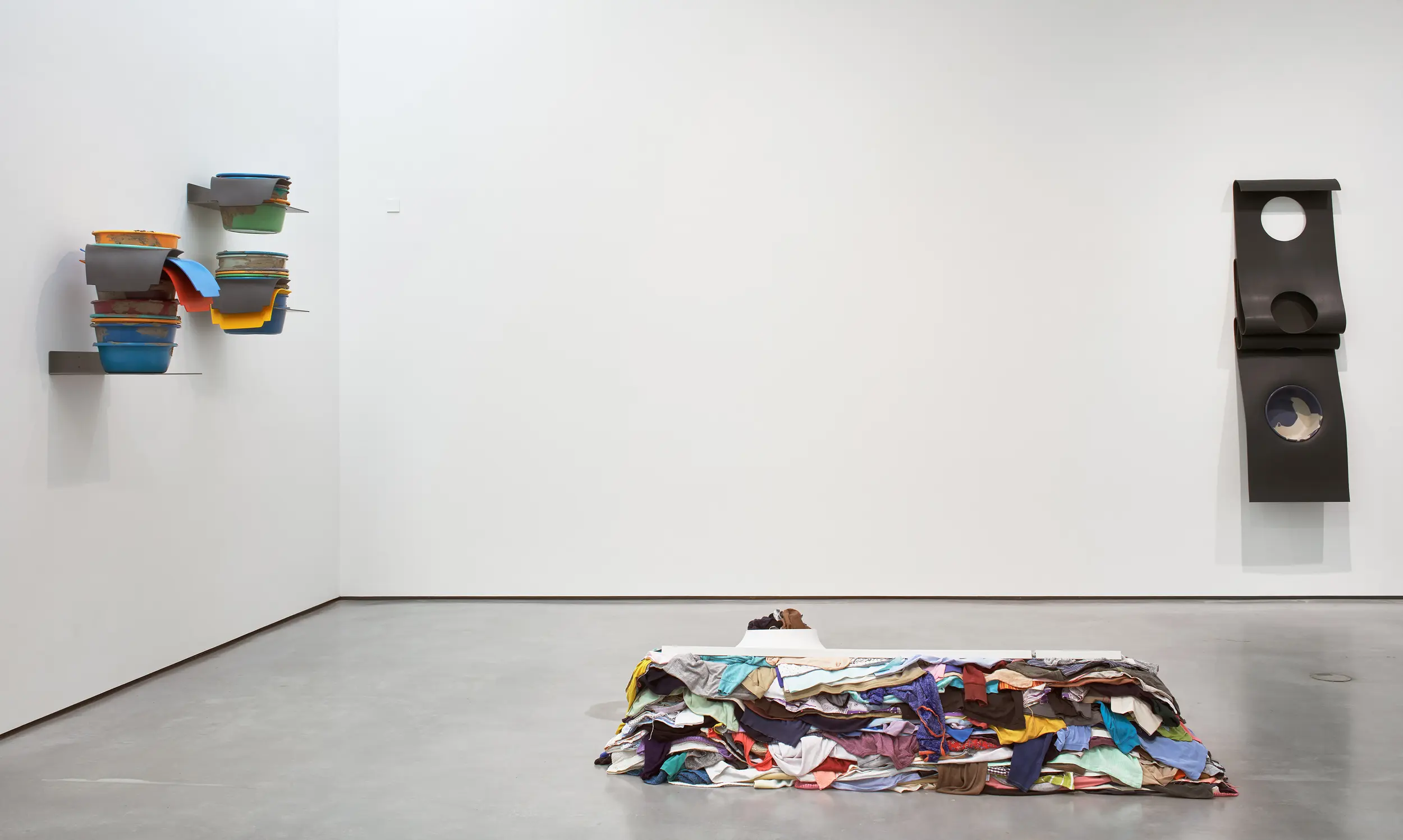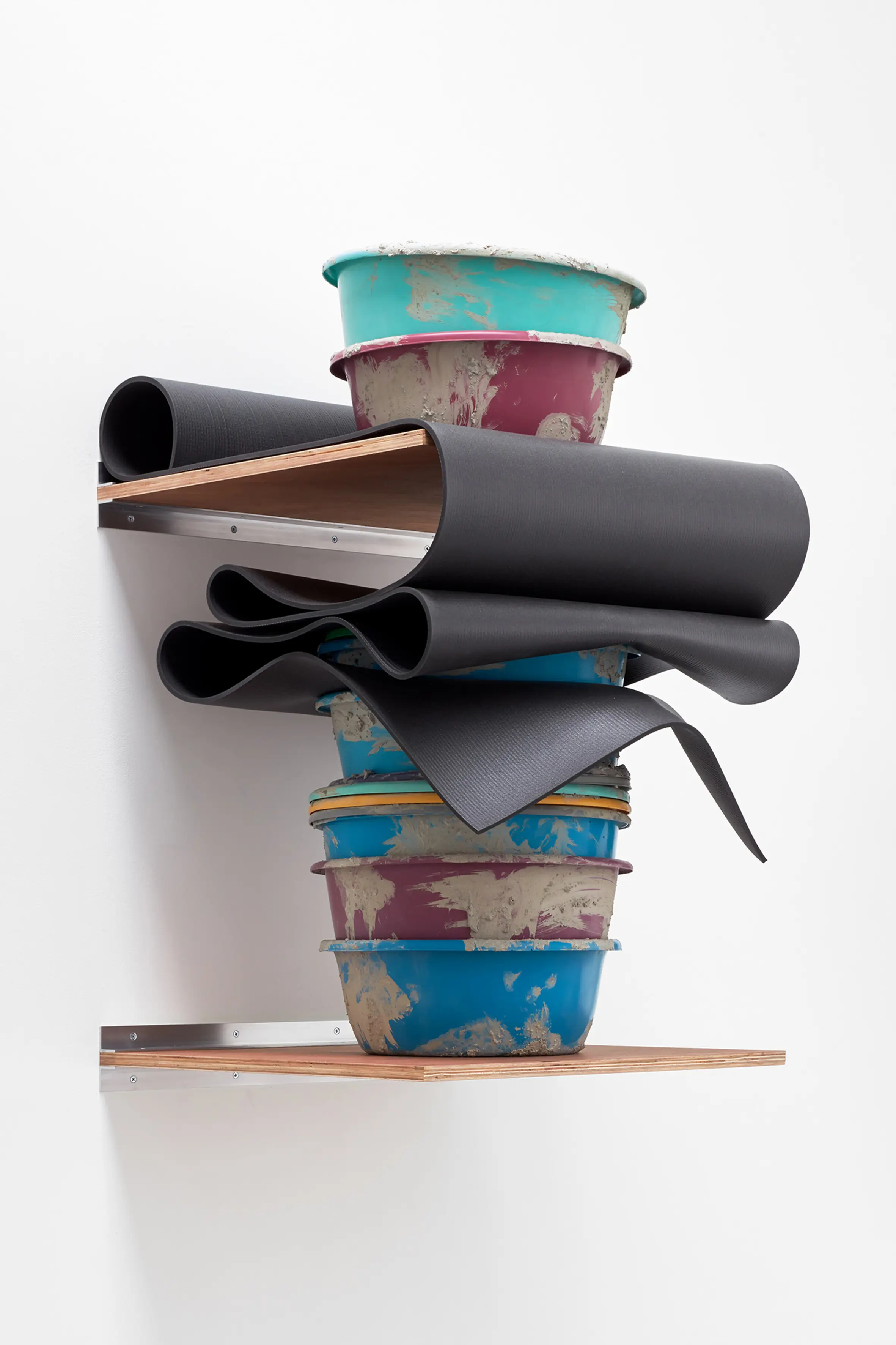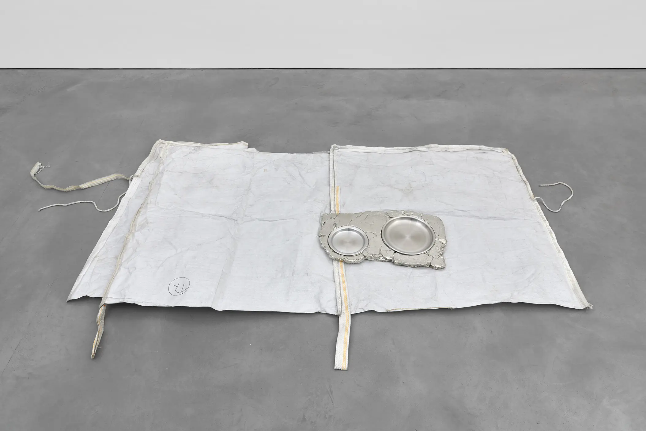 Depuis une trentaine d’années, Phillip Lai développe une pratique sculpturale qui interroge les matériaux ordinaires et les expériences induites par la culture techno-industrielle : production de masse, fonctionnalité, mécanisation, automatisation, ergonomie et infrastructures. Elle s’appuie notamment sur les liens psychologiques que nous entretenons avec elle et sur la manière dont nous y sommes étroitement mêlés. L’artiste fait émerger des dynamiques d’énergie – circulations ou condensations – incarnées par des matériaux et artefacts ordinaires, en résonance avec les gestes fondamentaux qui assurent la subsistance et l’équilibre du vivant. Les contenants – qu’il s’agisse d’assiettes, d’éviers, de bols ou de fûts – apparaissent régulièrement dans l’œuvre, en association avec des éléments textiles tels que la toile de jute, les vêtements ou la bâche. Ces matériaux fonctionnent comme des couches de protection, d’abri ou de chaleur. Dans tout son travail, Phillip Lai creuse au-delà de l’immobilité supposée des objets. Il cherche, dans cette tension, les signes d’un dialogue invisible, les résidus d’une figuration discrète qui viendrait perturber ou contredire leur abstraction.