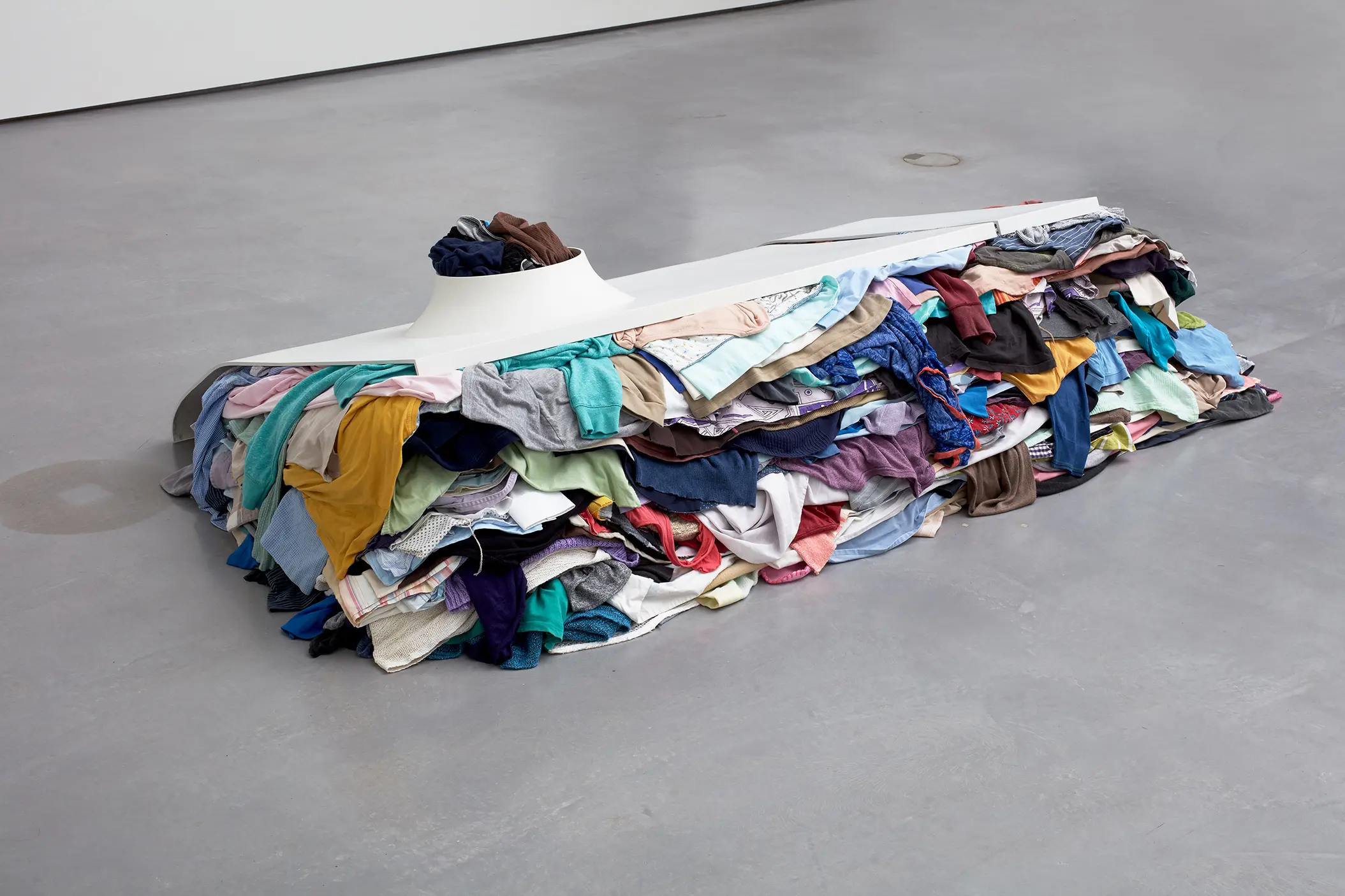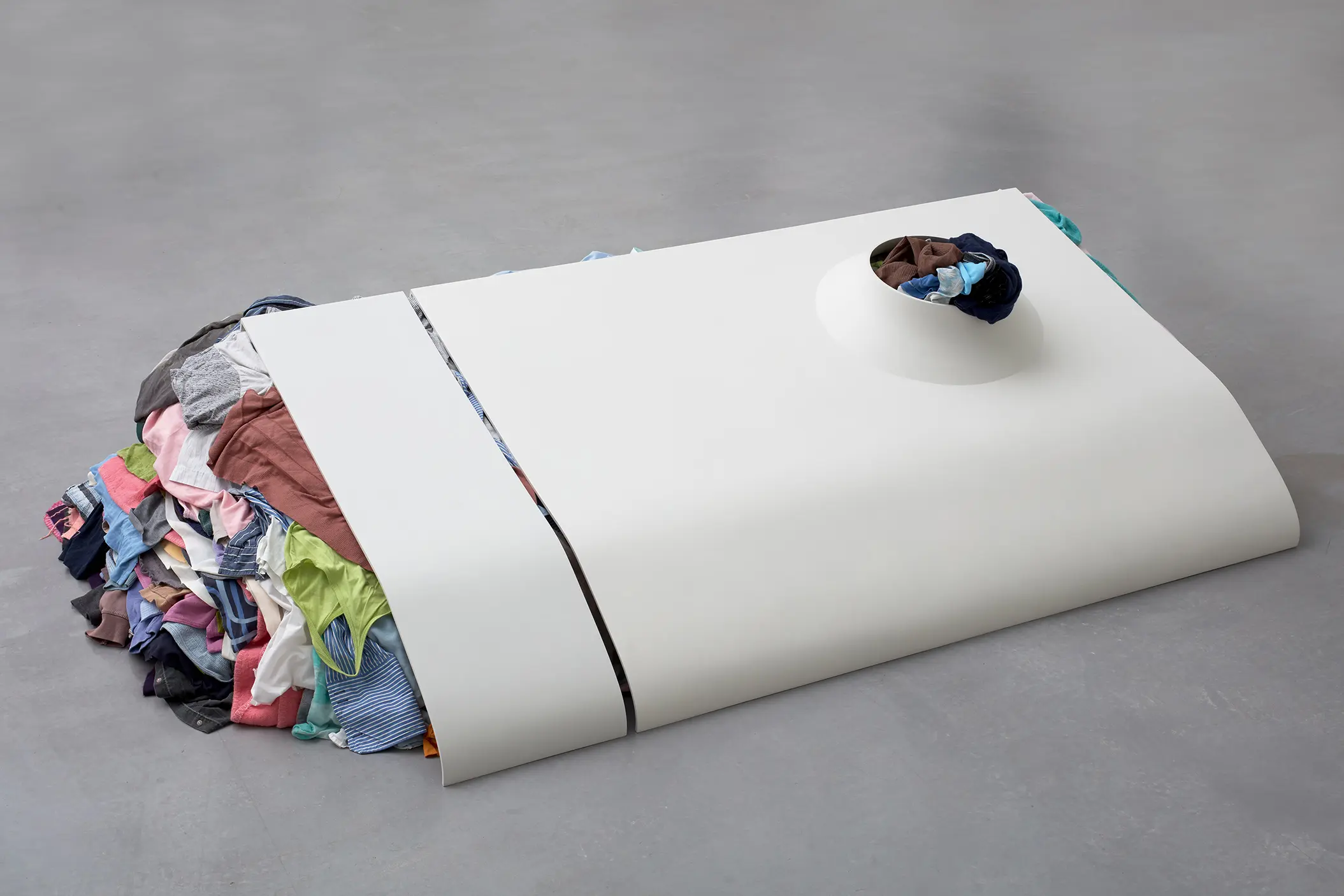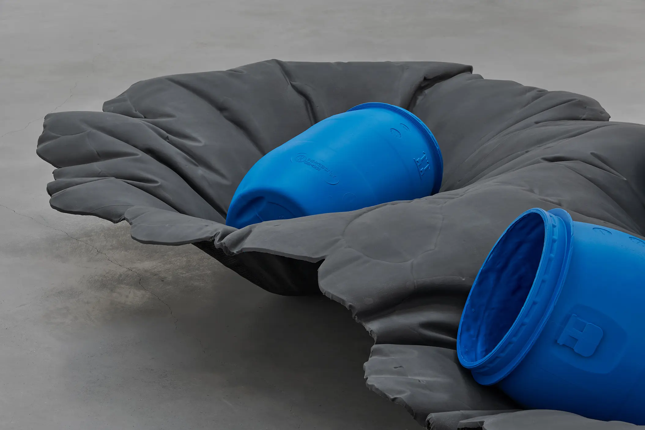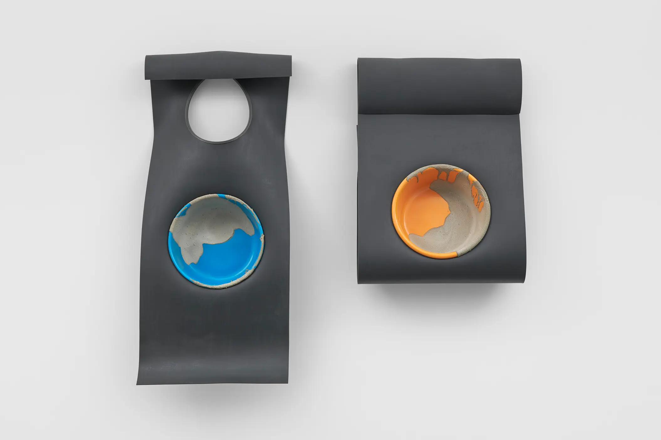 Depuis une trentaine d’années, Phillip Lai développe une pratique sculpturale qui interroge les matériaux ordinaires et les expériences induites par la culture techno-industrielle : production de masse, fonctionnalité, mécanisation, automatisation, ergonomie et infrastructures. Elle s’appuie notamment sur les liens psychologiques que nous entretenons avec elle et sur la manière dont nous y sommes étroitement mêlés. L’artiste fait émerger des dynamiques d’énergie – circulations ou condensations – incarnées par des matériaux et artefacts ordinaires, en résonance avec les gestes fondamentaux qui assurent la subsistance et l’équilibre du vivant. Les contenants – qu’il s’agisse d’assiettes, d’éviers, de bols ou de fûts – apparaissent régulièrement dans l’œuvre, en association avec des éléments textiles tels que la toile de jute, les vêtements ou la bâche. Ces matériaux fonctionnent comme des couches de protection, d’abri ou de chaleur. Dans tout son travail, Phillip Lai creuse au-delà de l’immobilité supposée des objets. Il cherche, dans cette tension, les signes d’un dialogue invisible, les résidus d’une figuration discrète qui viendrait perturber ou contredire leur abstraction.
