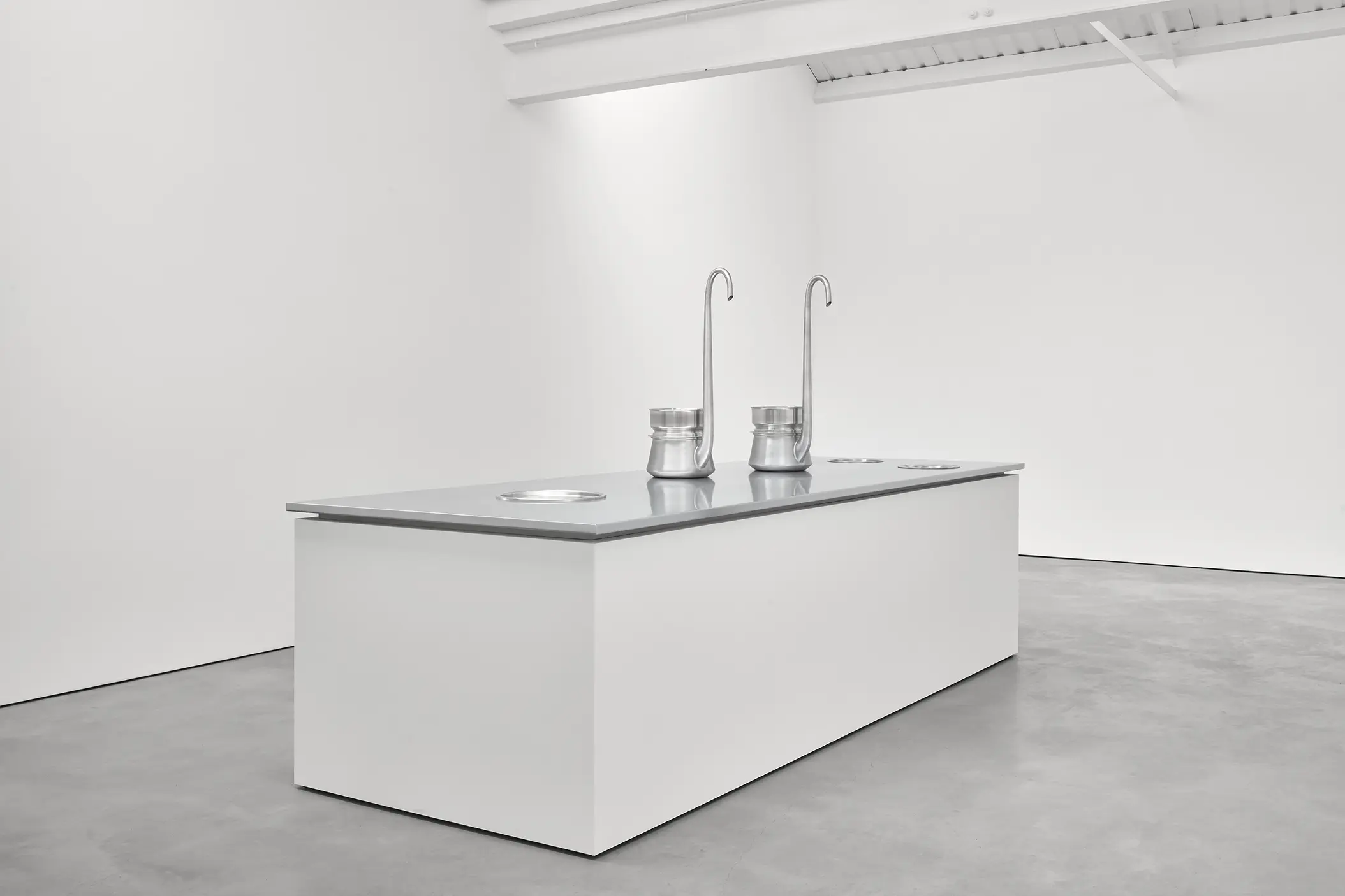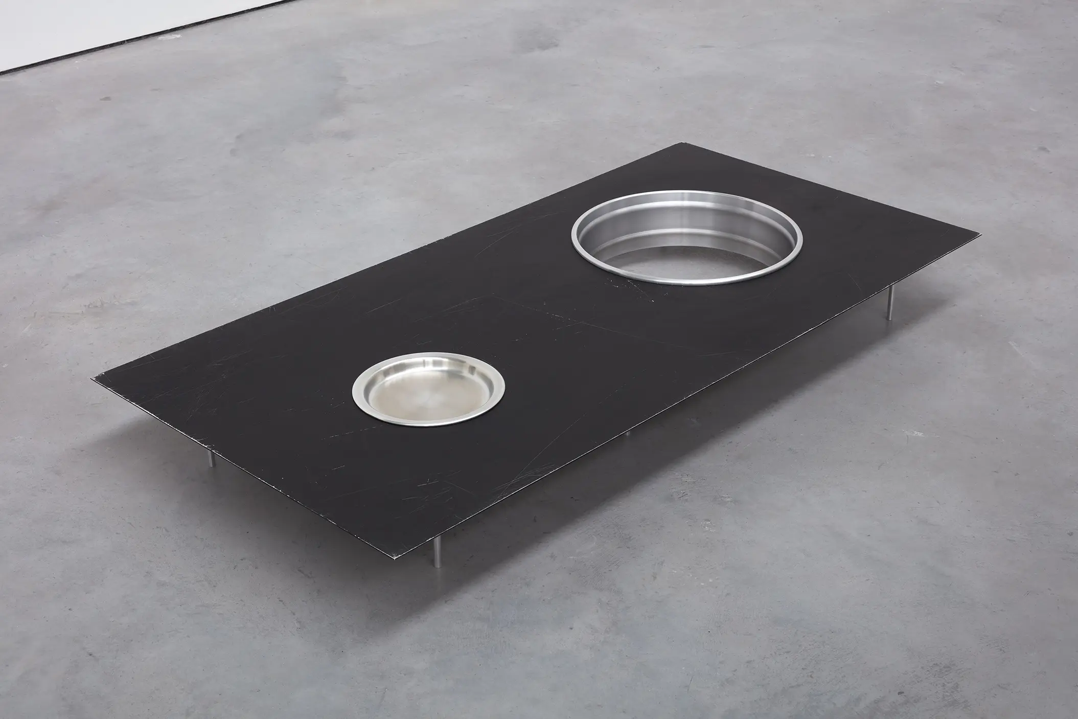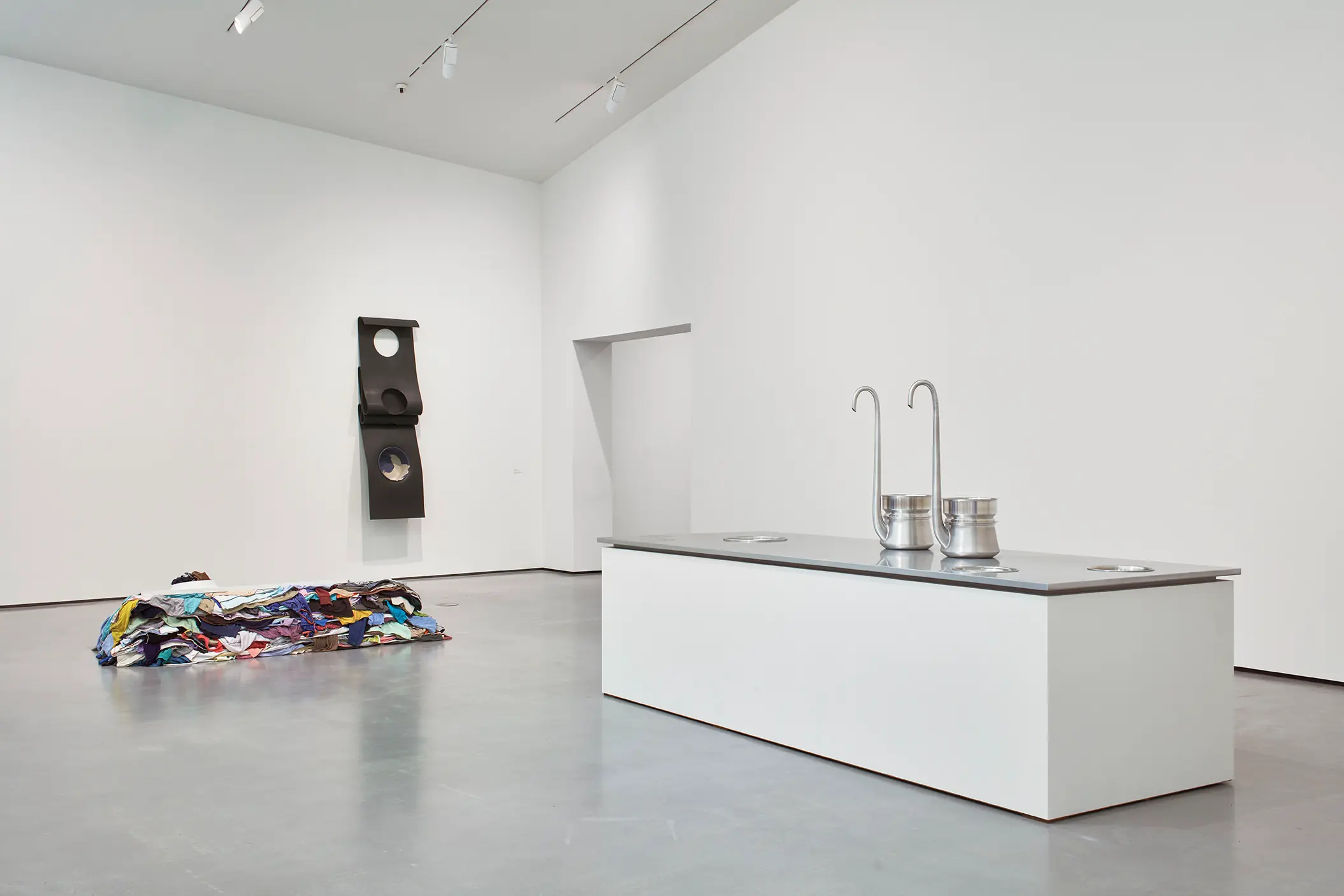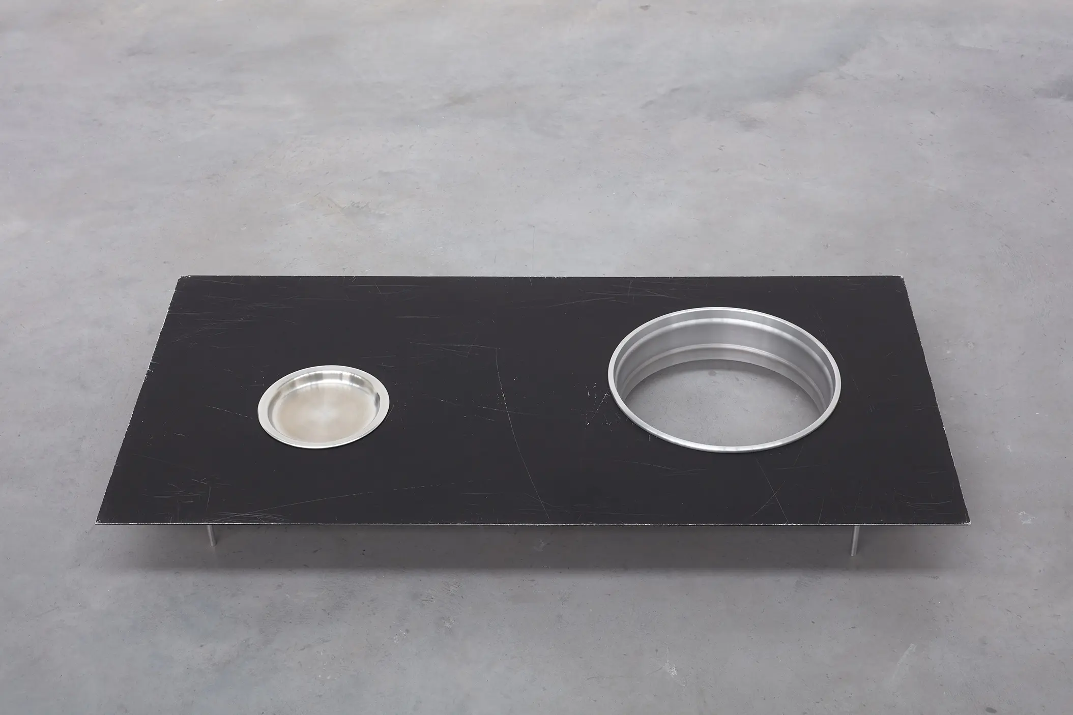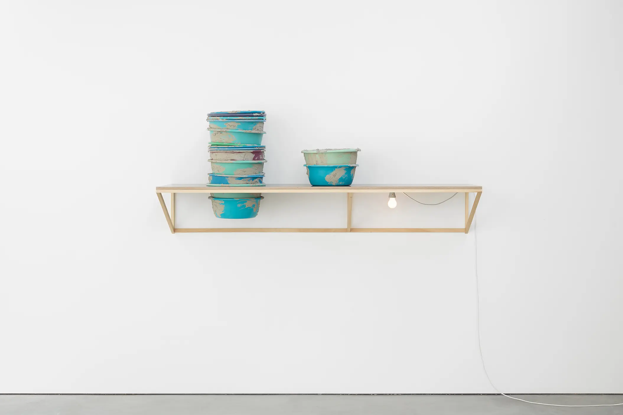 Depuis une trentaine d’années, Phillip Lai développe une pratique sculpturale qui interroge les matériaux ordinaires et les expériences induites par la culture techno-industrielle : production de masse, fonctionnalité, mécanisation, automatisation, ergonomie et infrastructures. Elle s’appuie notamment sur les liens psychologiques que nous entretenons avec elle et sur la manière dont nous y sommes étroitement mêlés. L’artiste fait émerger des dynamiques d’énergie – circulations ou condensations – incarnées par des matériaux et artefacts ordinaires, en résonance avec les gestes fondamentaux qui assurent la subsistance et l’équilibre du vivant. Les contenants – qu’il s’agisse d’assiettes, d’éviers, de bols ou de fûts – apparaissent régulièrement dans l’œuvre, en association avec des éléments textiles tels que la toile de jute, les vêtements ou la bâche. Ces matériaux fonctionnent comme des couches de protection, d’abri ou de chaleur. Dans tout son travail, Phillip Lai creuse au-delà de l’immobilité supposée des objets. Il cherche, dans cette tension, les signes d’un dialogue invisible, les résidus d’une figuration discrète qui viendrait perturber ou contredire leur abstraction.