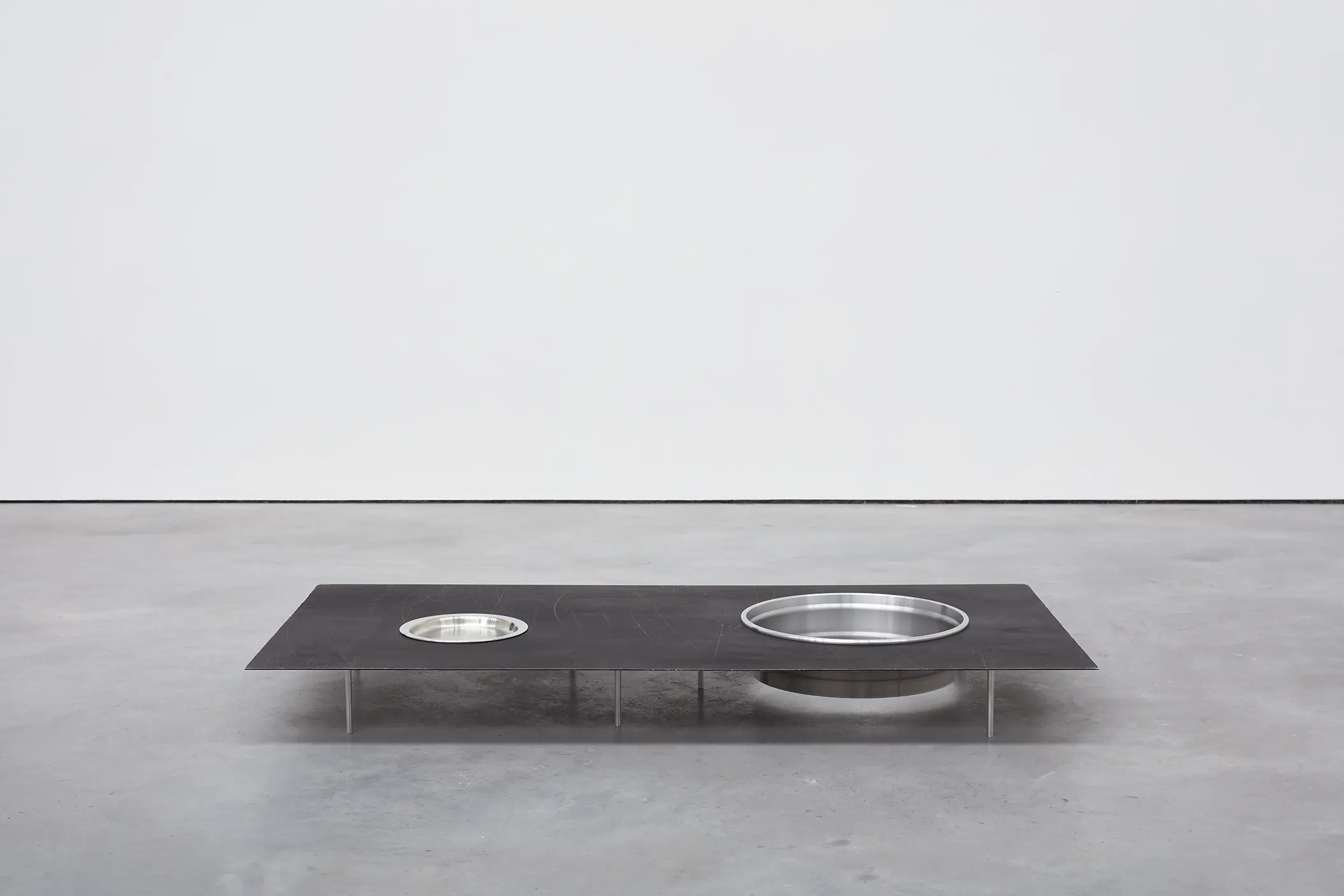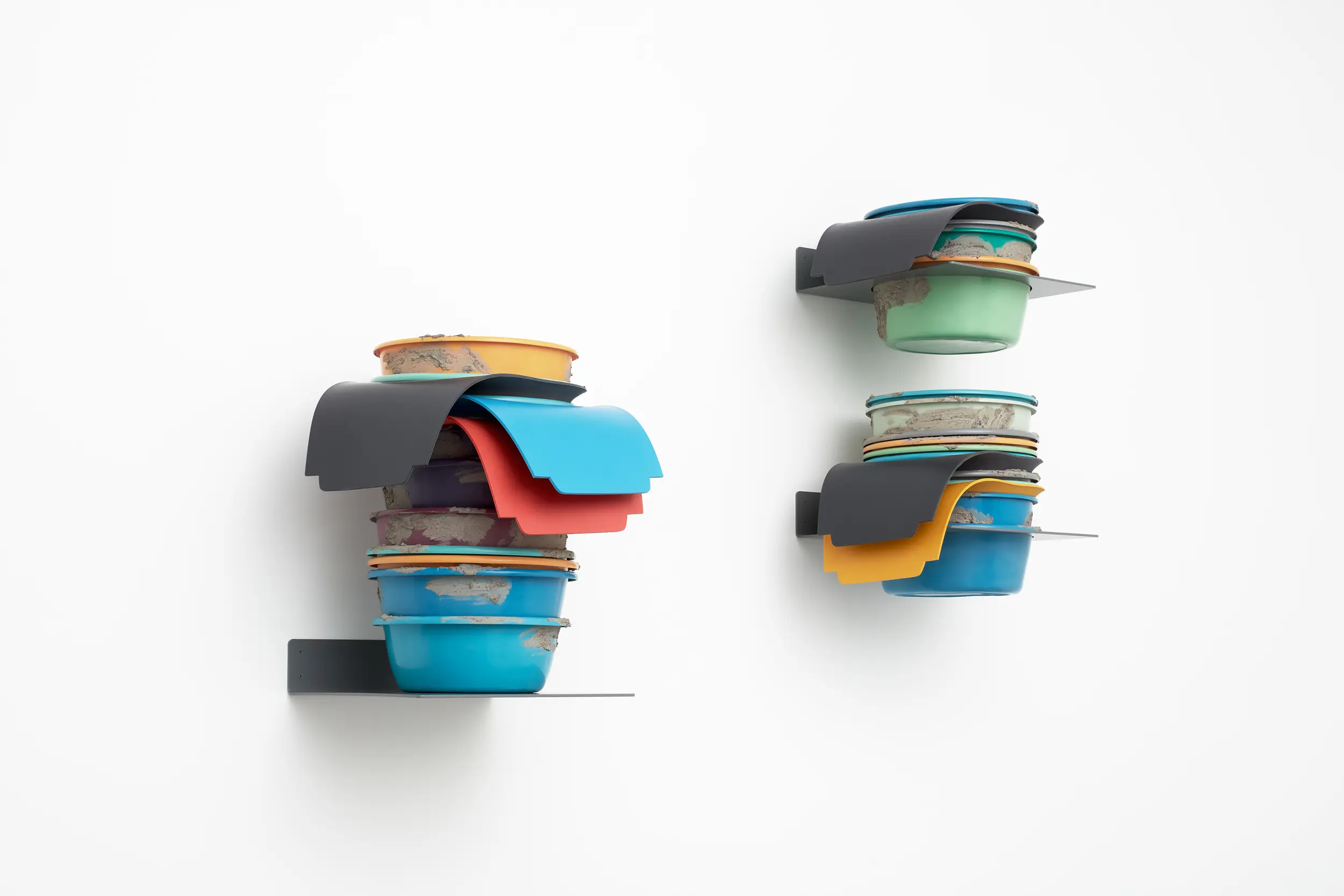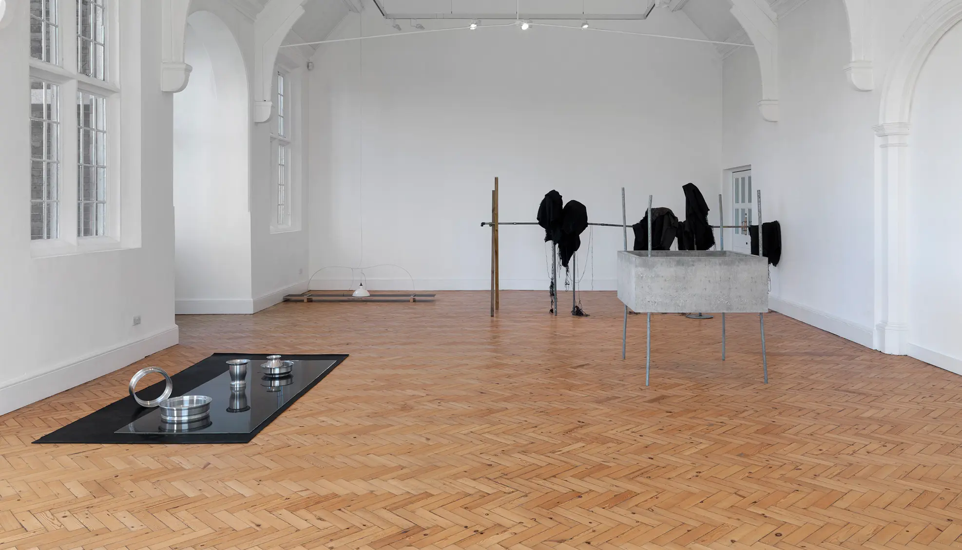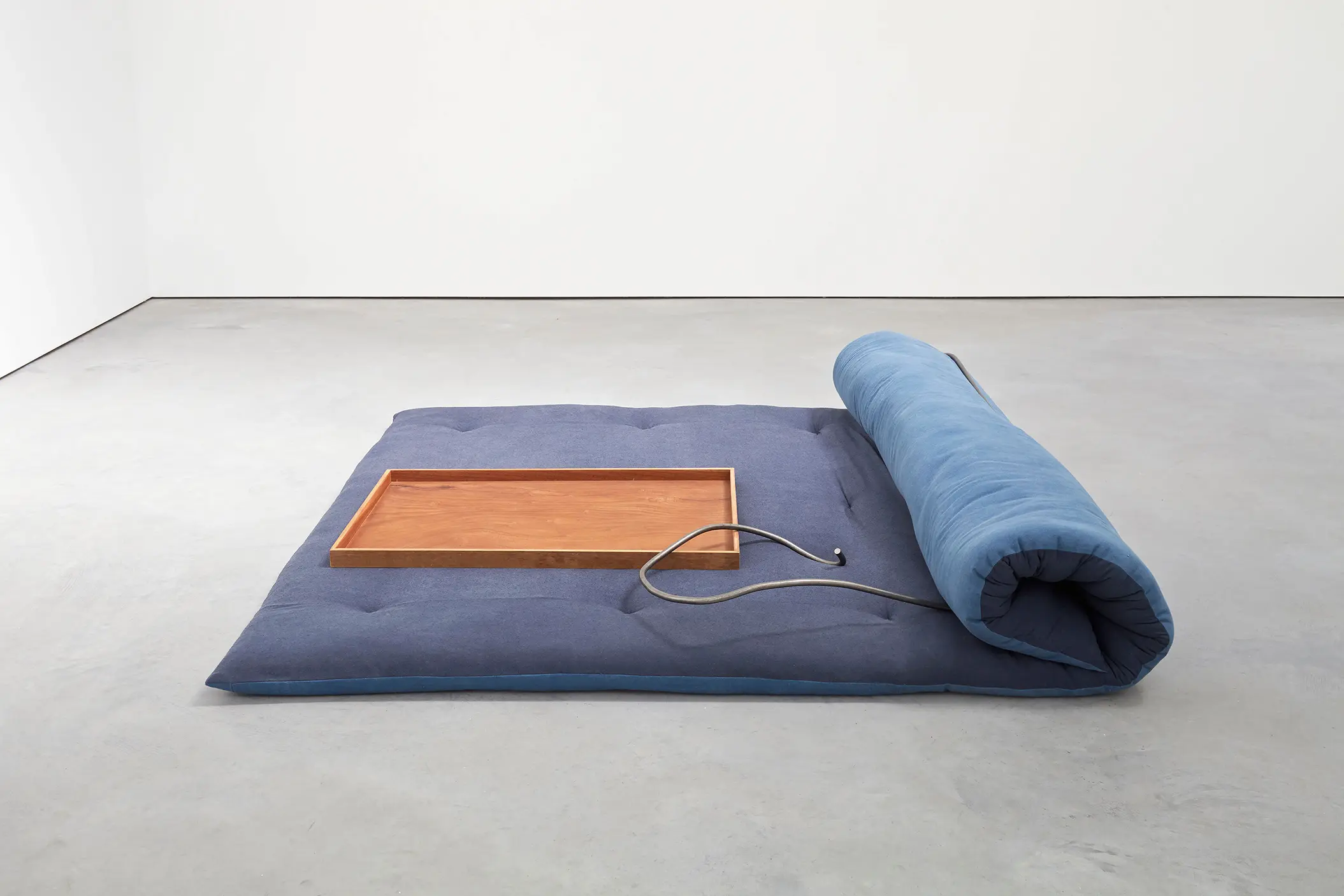 Depuis une trentaine d’années, Phillip Lai développe une pratique sculpturale qui interroge les matériaux ordinaires et les expériences induites par la culture techno-industrielle : production de masse, fonctionnalité, mécanisation, automatisation, ergonomie et infrastructures. Elle s’appuie notamment sur les liens psychologiques que nous entretenons avec elle et sur la manière dont nous y sommes étroitement mêlés. L’artiste fait émerger des dynamiques d’énergie – circulations ou condensations – incarnées par des matériaux et artefacts ordinaires, en résonance avec les gestes fondamentaux qui assurent la subsistance et l’équilibre du vivant. Les contenants – qu’il s’agisse d’assiettes, d’éviers, de bols ou de fûts – apparaissent régulièrement dans l’œuvre, en association avec des éléments textiles tels que la toile de jute, les vêtements ou la bâche. Ces matériaux fonctionnent comme des couches de protection, d’abri ou de chaleur. Dans tout son travail, Phillip Lai creuse au-delà de l’immobilité supposée des objets. Il cherche, dans cette tension, les signes d’un dialogue invisible, les résidus d’une figuration discrète qui viendrait perturber ou contredire leur abstraction.
