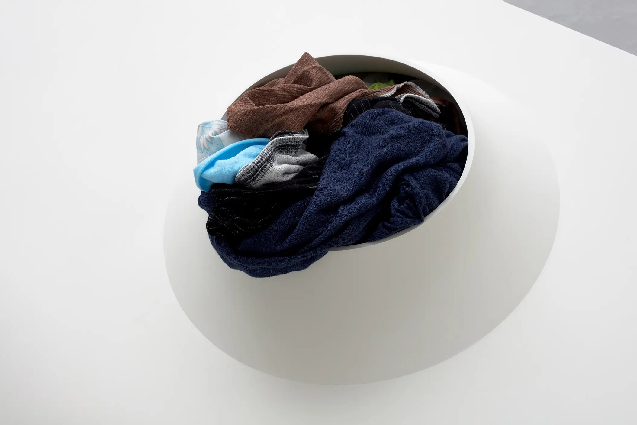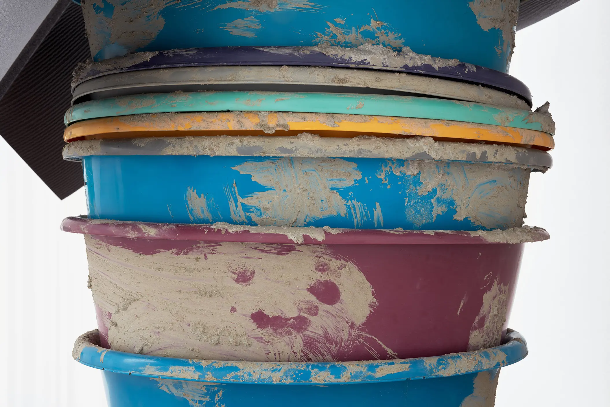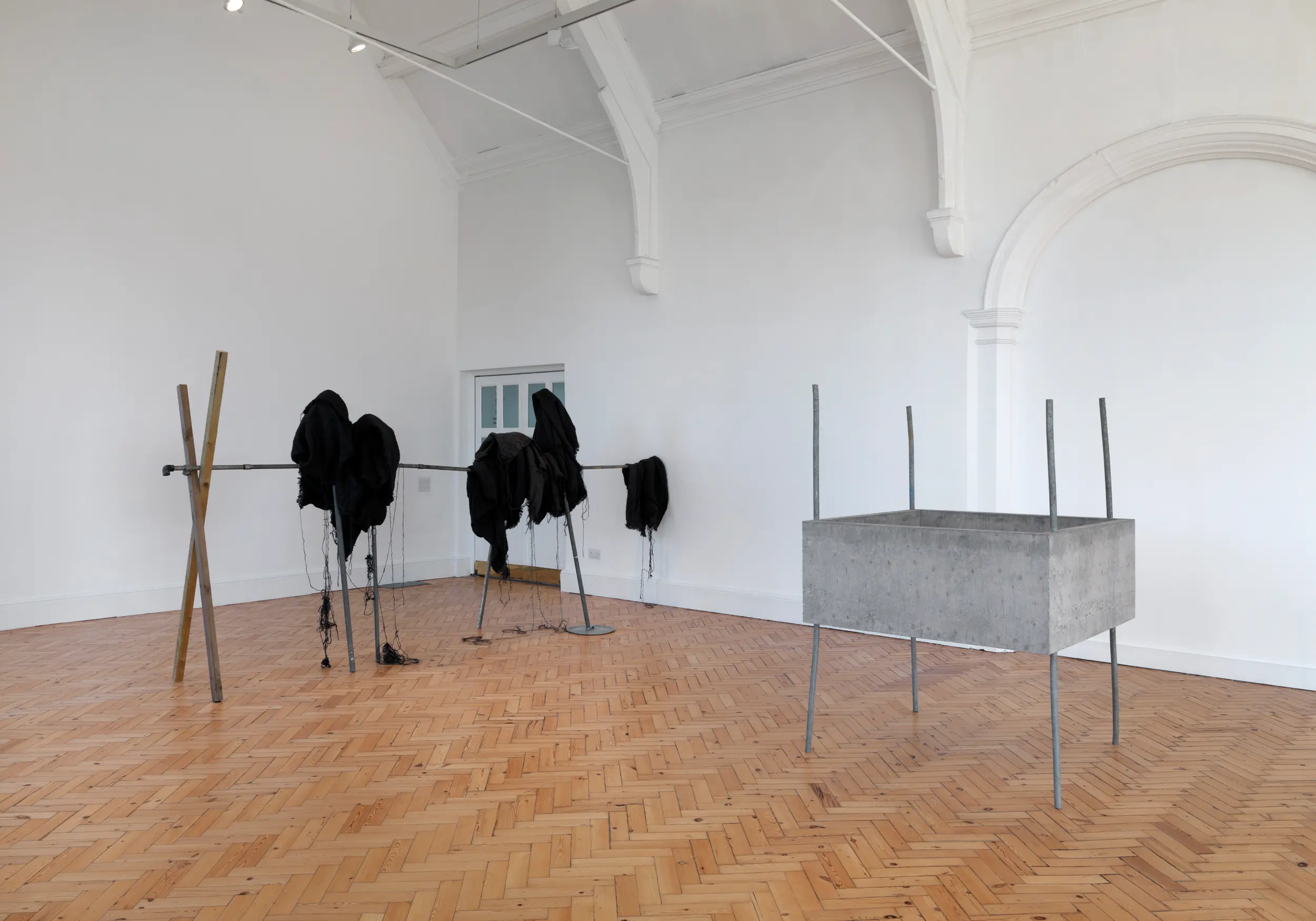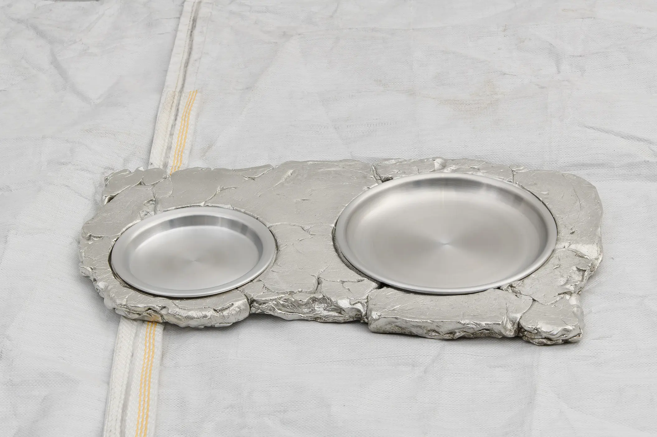 Depuis une trentaine d’années, Phillip Lai développe une pratique sculpturale qui interroge les matériaux ordinaires et les expériences induites par la culture techno-industrielle : production de masse, fonctionnalité, mécanisation, automatisation, ergonomie et infrastructures. Elle s’appuie notamment sur les liens psychologiques que nous entretenons avec elle et sur la manière dont nous y sommes étroitement mêlés. L’artiste fait émerger des dynamiques d’énergie – circulations ou condensations – incarnées par des matériaux et artefacts ordinaires, en résonance avec les gestes fondamentaux qui assurent la subsistance et l’équilibre du vivant. Les contenants – qu’il s’agisse d’assiettes, d’éviers, de bols ou de fûts – apparaissent régulièrement dans l’œuvre, en association avec des éléments textiles tels que la toile de jute, les vêtements ou la bâche. Ces matériaux fonctionnent comme des couches de protection, d’abri ou de chaleur. Dans tout son travail, Phillip Lai creuse au-delà de l’immobilité supposée des objets. Il cherche, dans cette tension, les signes d’un dialogue invisible, les résidus d’une figuration discrète qui viendrait perturber ou contredire leur abstraction.