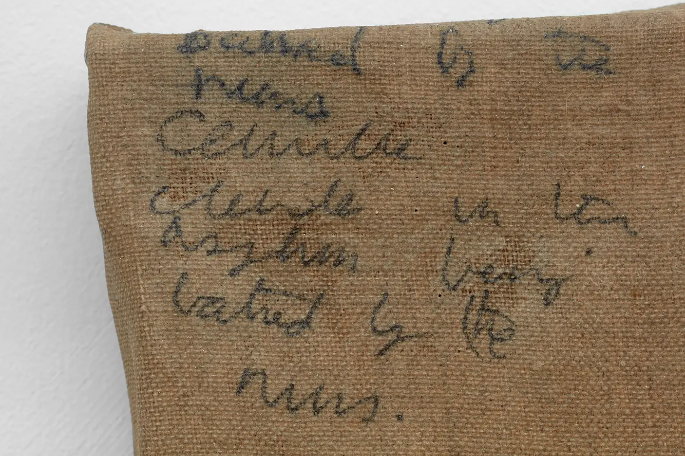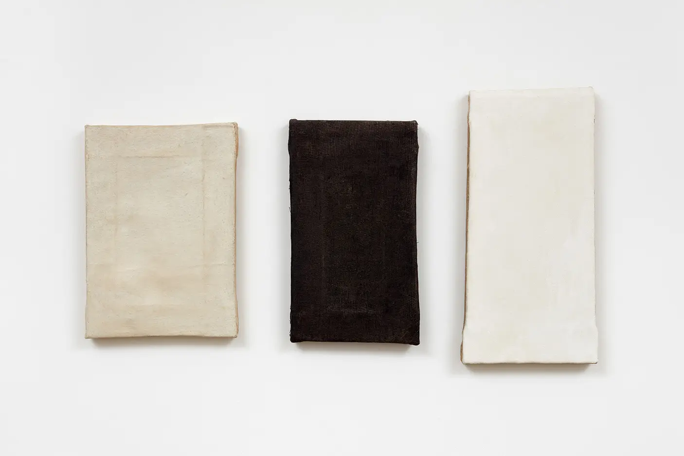 ink on stained linen, 41.5 x 13 cm, 16 3/8 x 5 1/8 in