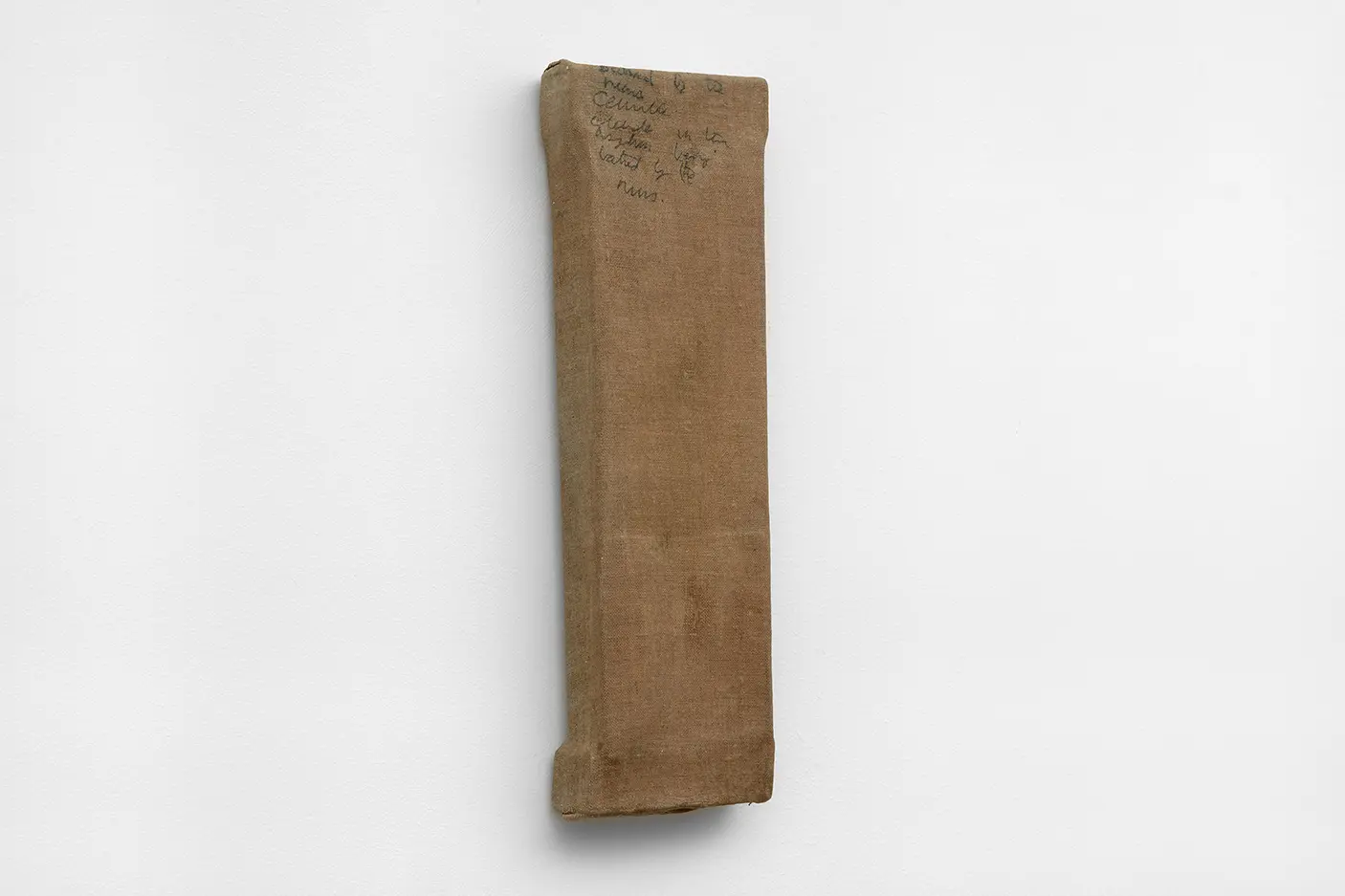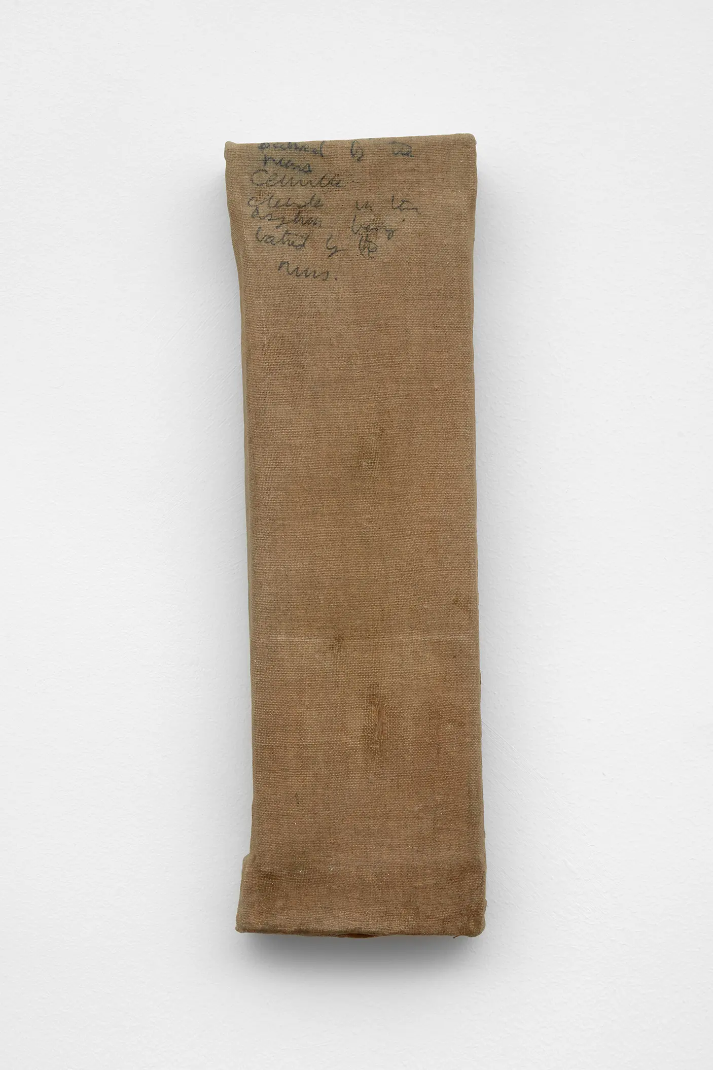 linen and printed matter, 149.5 x 16 cm, 58 7/8 x 6 1/4 in