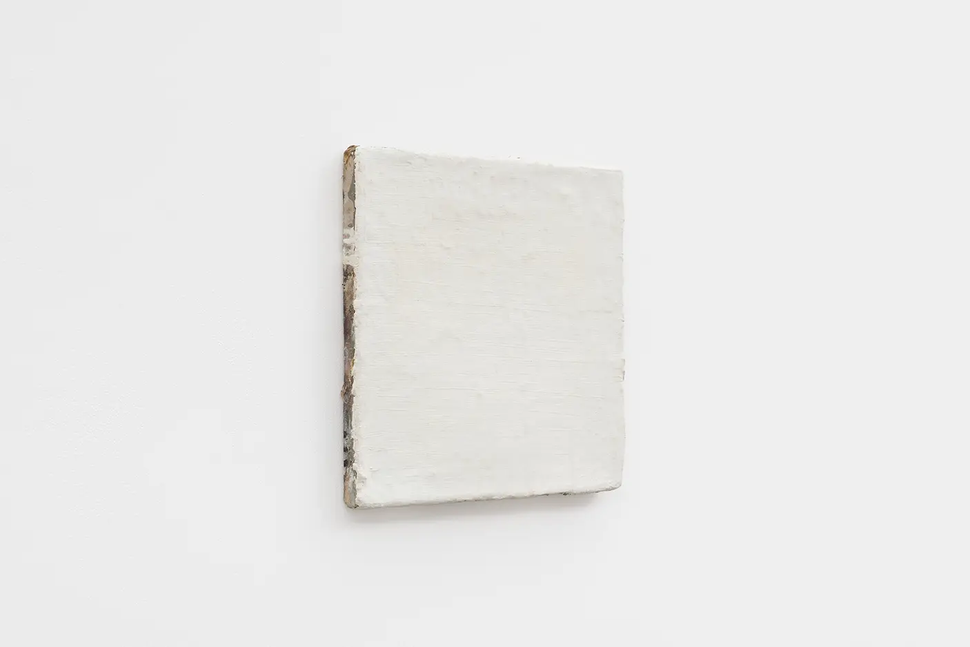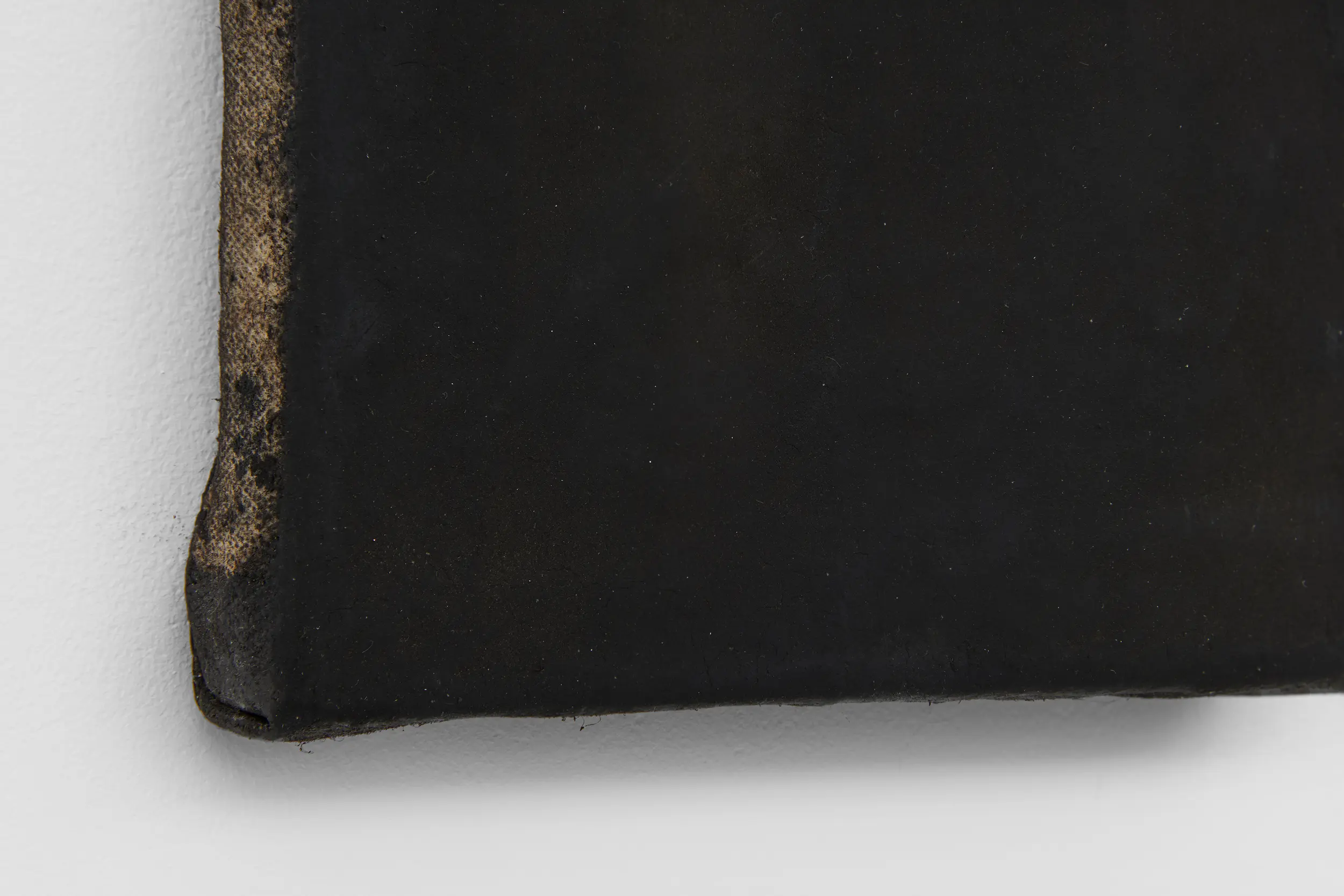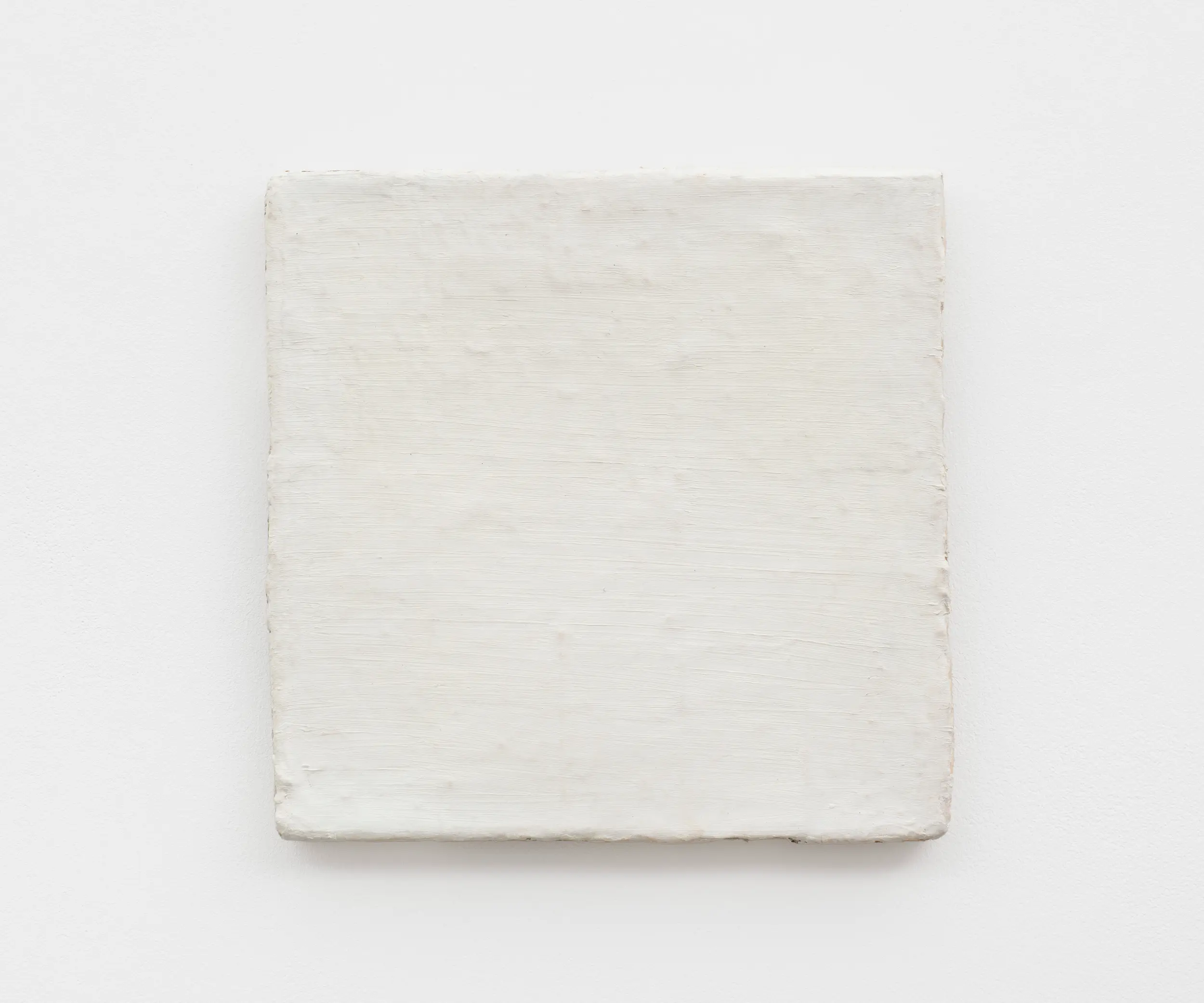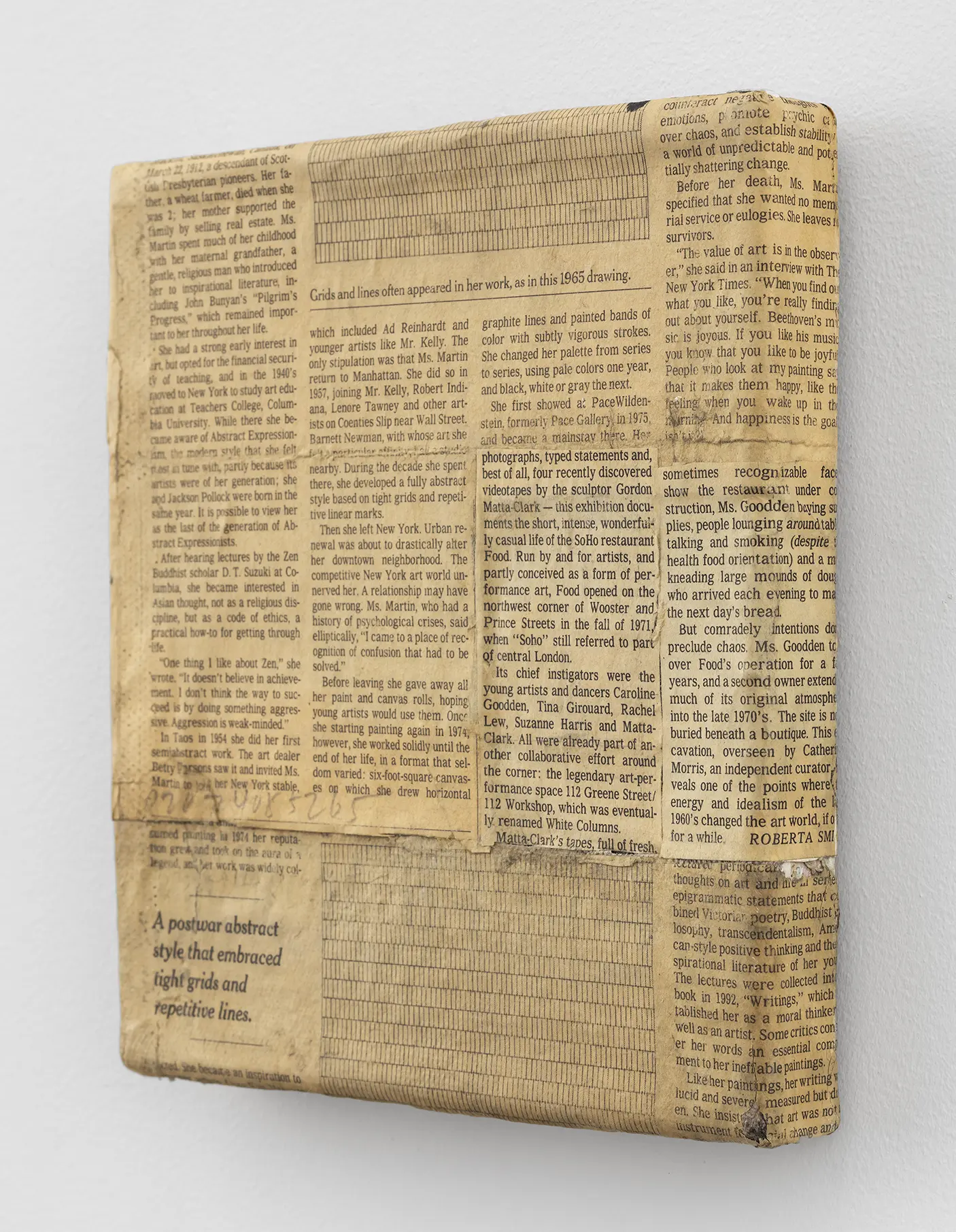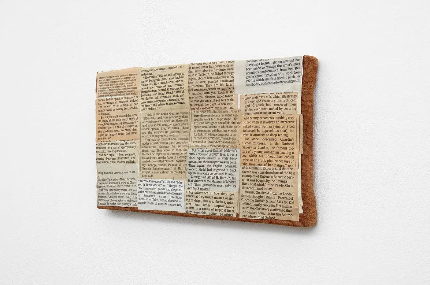 paint over newspaper on linen, 28 x 29 x 2.8 cm, 11 1/8 x 11 3/8 x 1 1/8 in