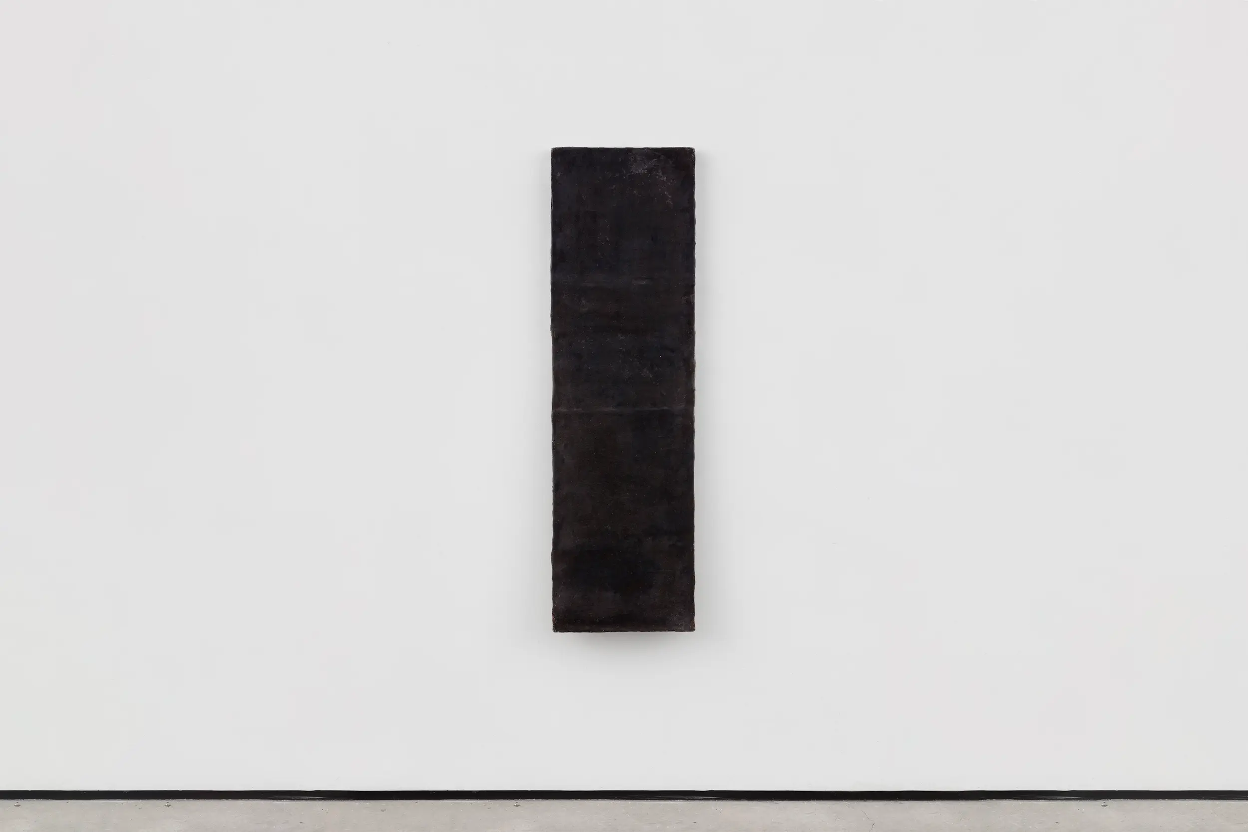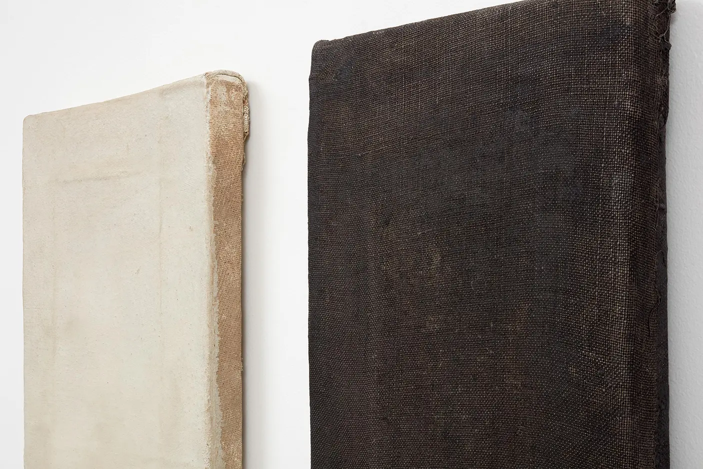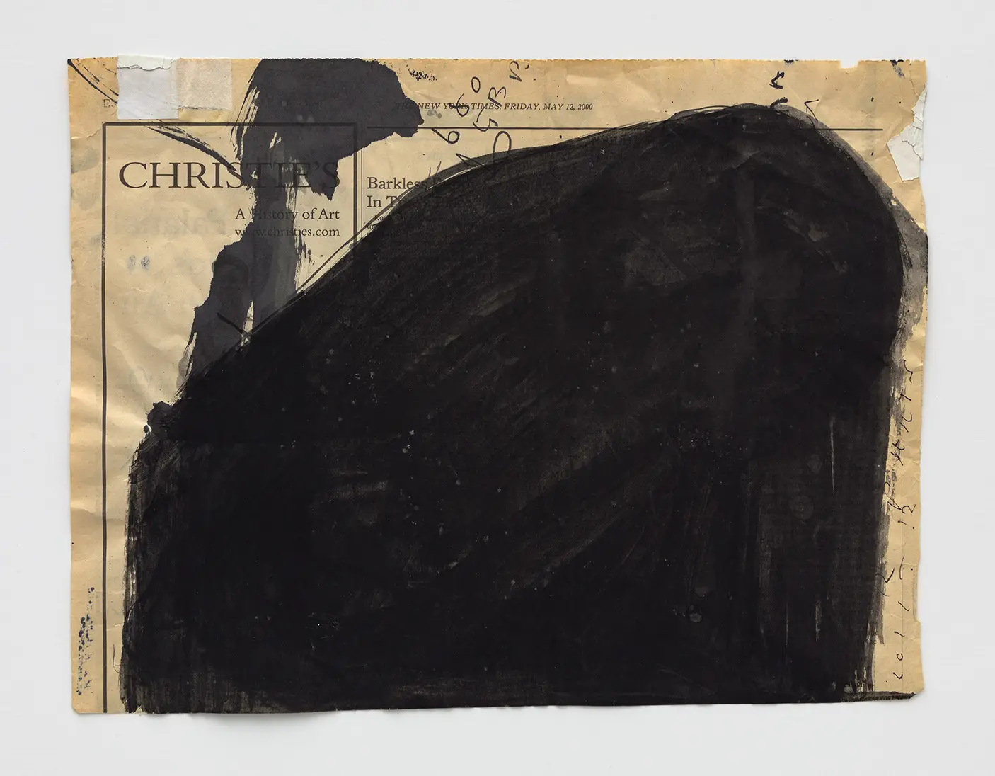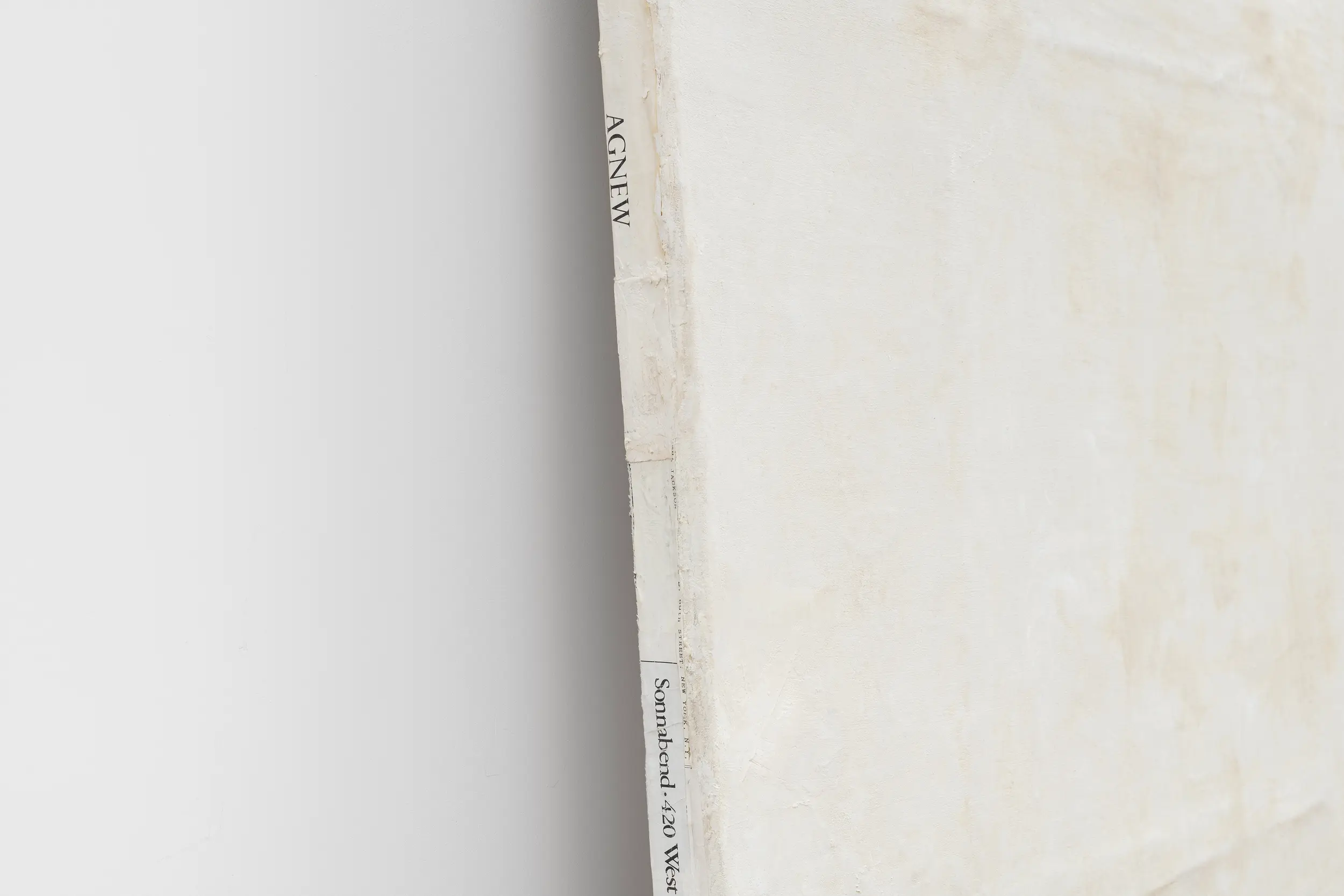 oil paint pigment ash, and printed matter on canvas and linen, 152.5 x 120 cm, 60 x 47 1/4 in