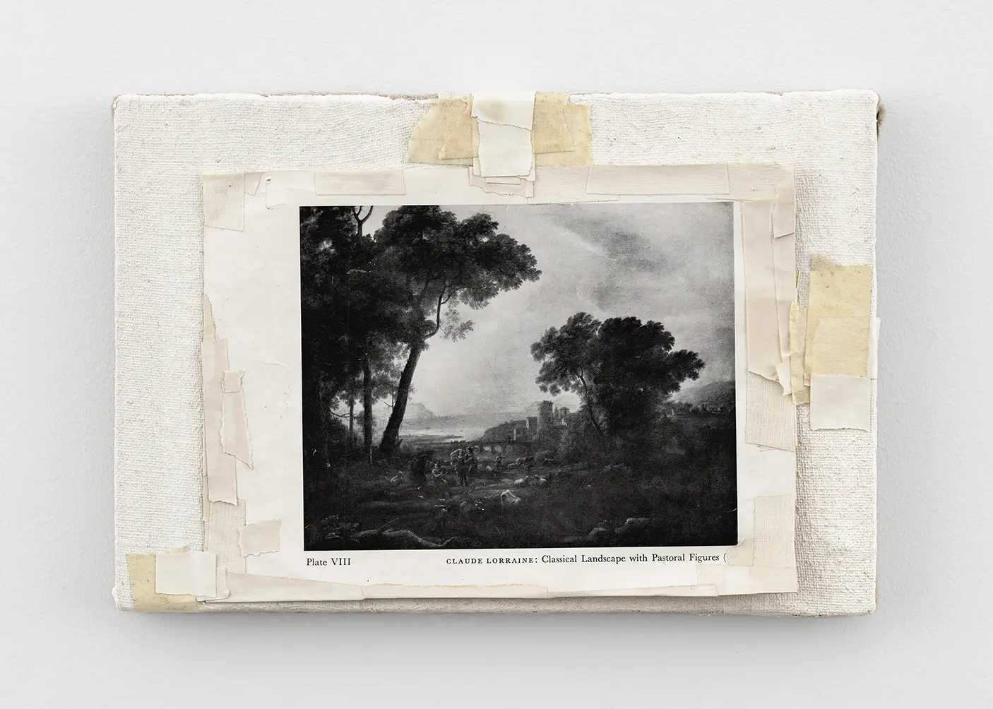 paint, tape and book page on stretched canvas, 20.32 x 29.85 cm, 8 x 11 3/4 in