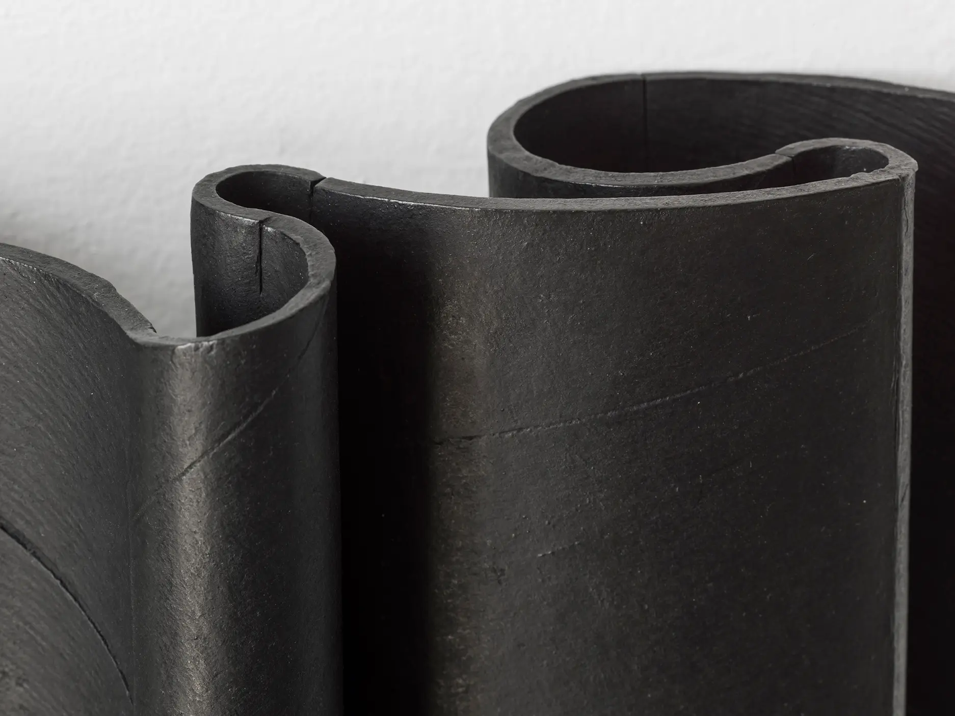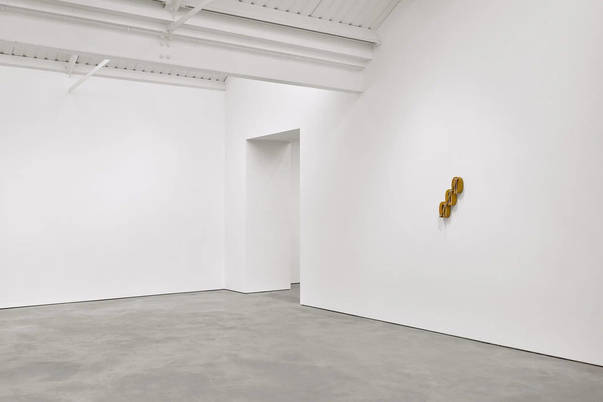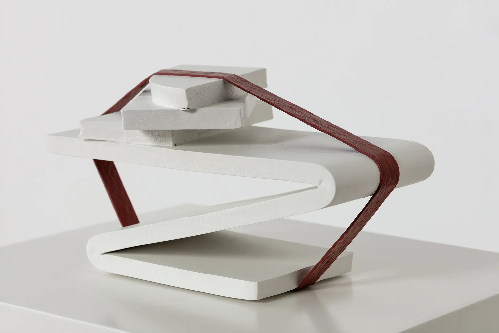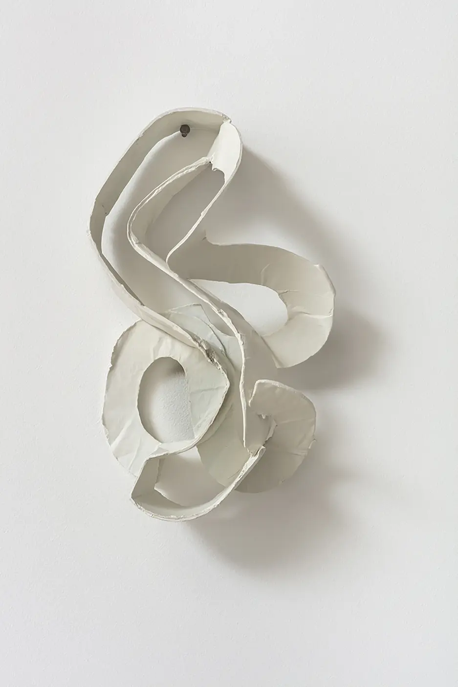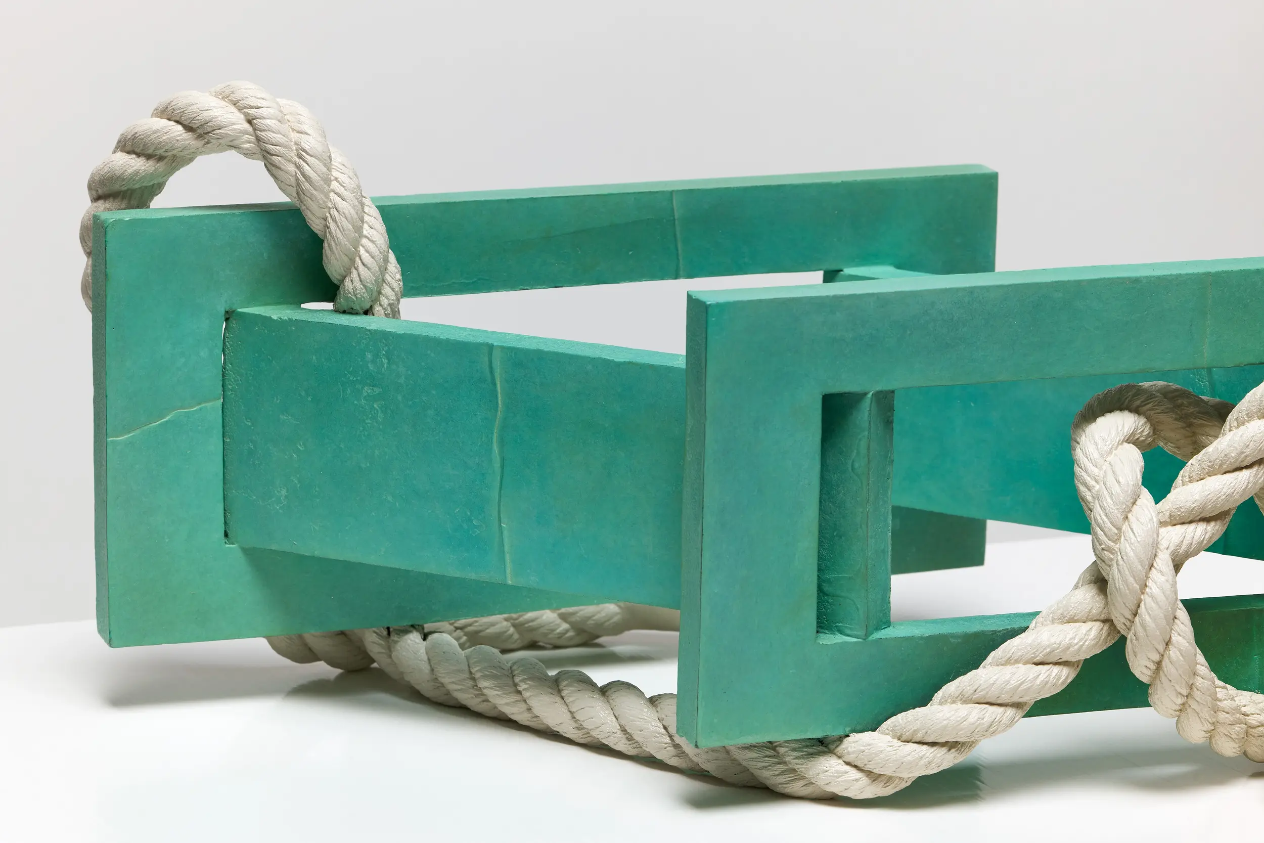 Depuis plus de vingt ans, les œuvres en bronze de Ricky Swallow explorent le processus de conversion par lequel un objet – ou une combinaison de matériaux – devient sculpture. Il part de matériaux ordinaires, domestiques – corde, bois, ruban de masquage, carton perforé –, qu’il assemble ensuite à travers des formes qui mettent en valeur les particularités et les imperfections propres à leur matérialité. Ces configurations d’objets et de textures sont ensuite reproduites avec minutie à travers des procédés analogiques : d’abord coulées en bronze, elles sont ensuite patinées ou peintes à l’huile, poursuivant leur transformation dans l’atelier. La participation directe de Swallow à ces étapes est essentielle pour maintenir un lien avec la forme finale et en conserver la maîtrise. L’apparente retenue des sculptures contraste avec leur grande complexité, tant sur le plan matériel que technique, par exemple : les fils d’une corde reproduits en métal ou les plis d’un carton qui persistent après la fonte. En ce sens, le travail de Swallow intègre de subtiles références à la peinture – en particulier à la tradition du still life néerlandais –, visibles à la fois dans la dimension figurative de son œuvre et dans ses fondements conceptuels. Mais ces références ne sont jamais littérales : l’effet de trompe-l’œil, présent dès ses premières œuvres, n’est jamais une fin en soi mais une méthode – un piège de l’attention, une stratégie pour ralentir la perception et prolonger l’expérience. Ce qui prime en définitive, c’est la dimension tactile et la présence physique des éléments sculptés où la matière semble avoir son propre comportement et son humeur, à la fois sensible et incarnée.