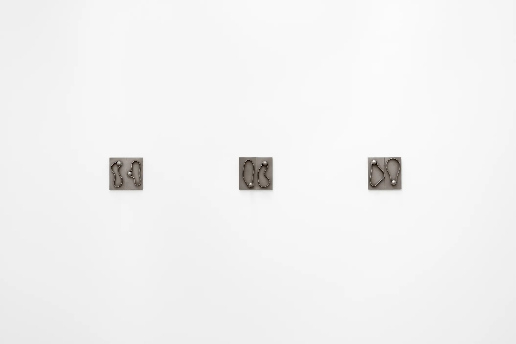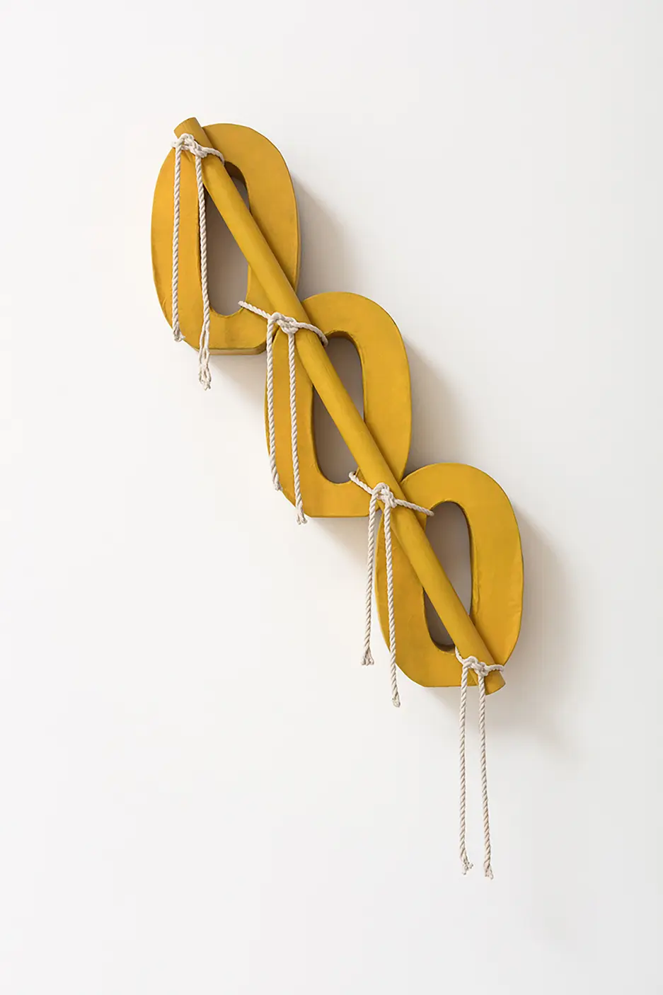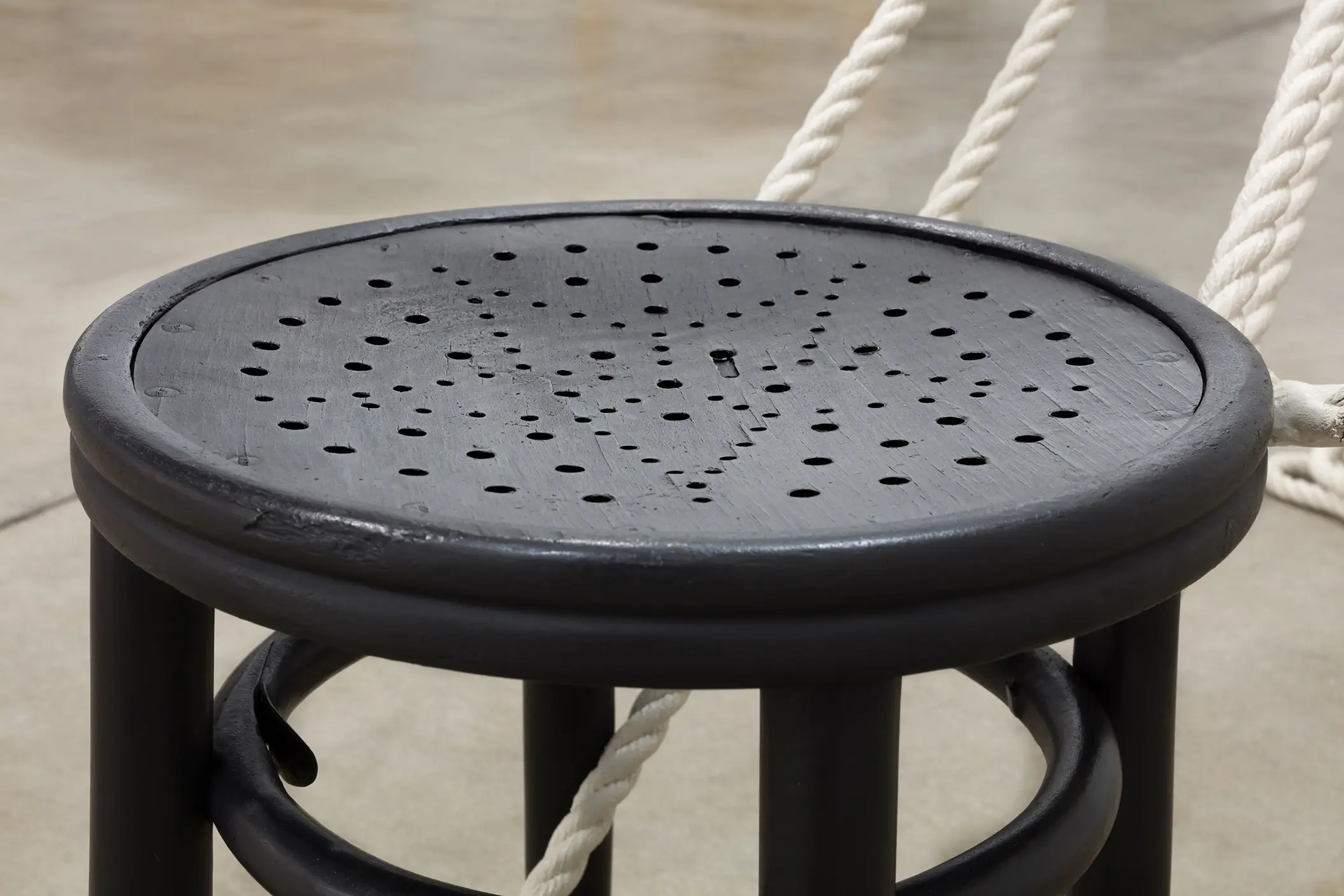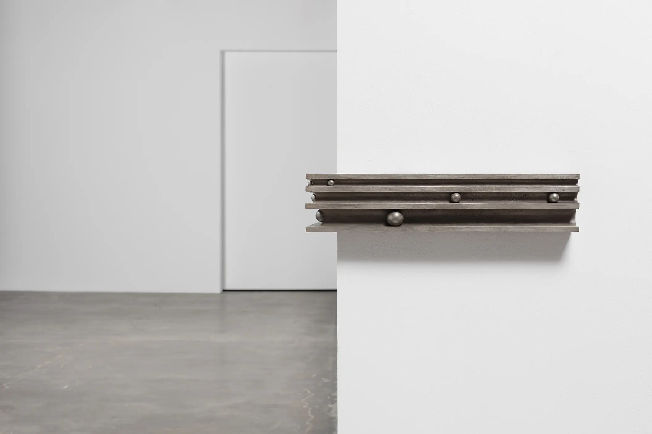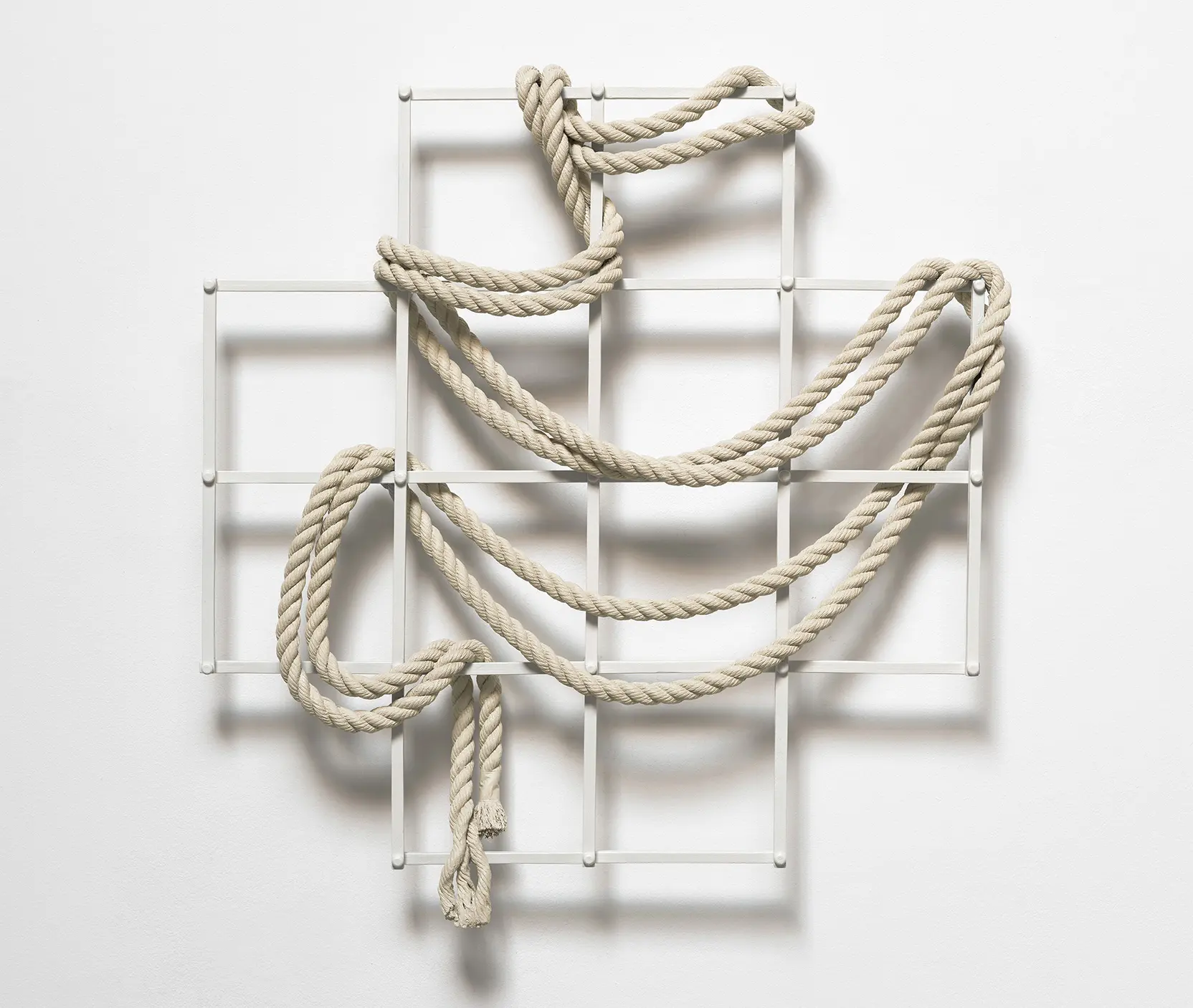 Depuis plus de vingt ans, les œuvres en bronze de Ricky Swallow explorent le processus de conversion par lequel un objet – ou une combinaison de matériaux – devient sculpture. Il part de matériaux ordinaires, domestiques – corde, bois, ruban de masquage, carton perforé –, qu’il assemble ensuite à travers des formes qui mettent en valeur les particularités et les imperfections propres à leur matérialité. Ces configurations d’objets et de textures sont ensuite reproduites avec minutie à travers des procédés analogiques : d’abord coulées en bronze, elles sont ensuite patinées ou peintes à l’huile, poursuivant leur transformation dans l’atelier. La participation directe de Swallow à ces étapes est essentielle pour maintenir un lien avec la forme finale et en conserver la maîtrise. L’apparente retenue des sculptures contraste avec leur grande complexité, tant sur le plan matériel que technique, par exemple : les fils d’une corde reproduits en métal ou les plis d’un carton qui persistent après la fonte. En ce sens, le travail de Swallow intègre de subtiles références à la peinture – en particulier à la tradition du still life néerlandais –, visibles à la fois dans la dimension figurative de son œuvre et dans ses fondements conceptuels. Mais ces références ne sont jamais littérales : l’effet de trompe-l’œil, présent dès ses premières œuvres, n’est jamais une fin en soi mais une méthode – un piège de l’attention, une stratégie pour ralentir la perception et prolonger l’expérience. Ce qui prime en définitive, c’est la dimension tactile et la présence physique des éléments sculptés où la matière semble avoir son propre comportement et son humeur, à la fois sensible et incarnée.