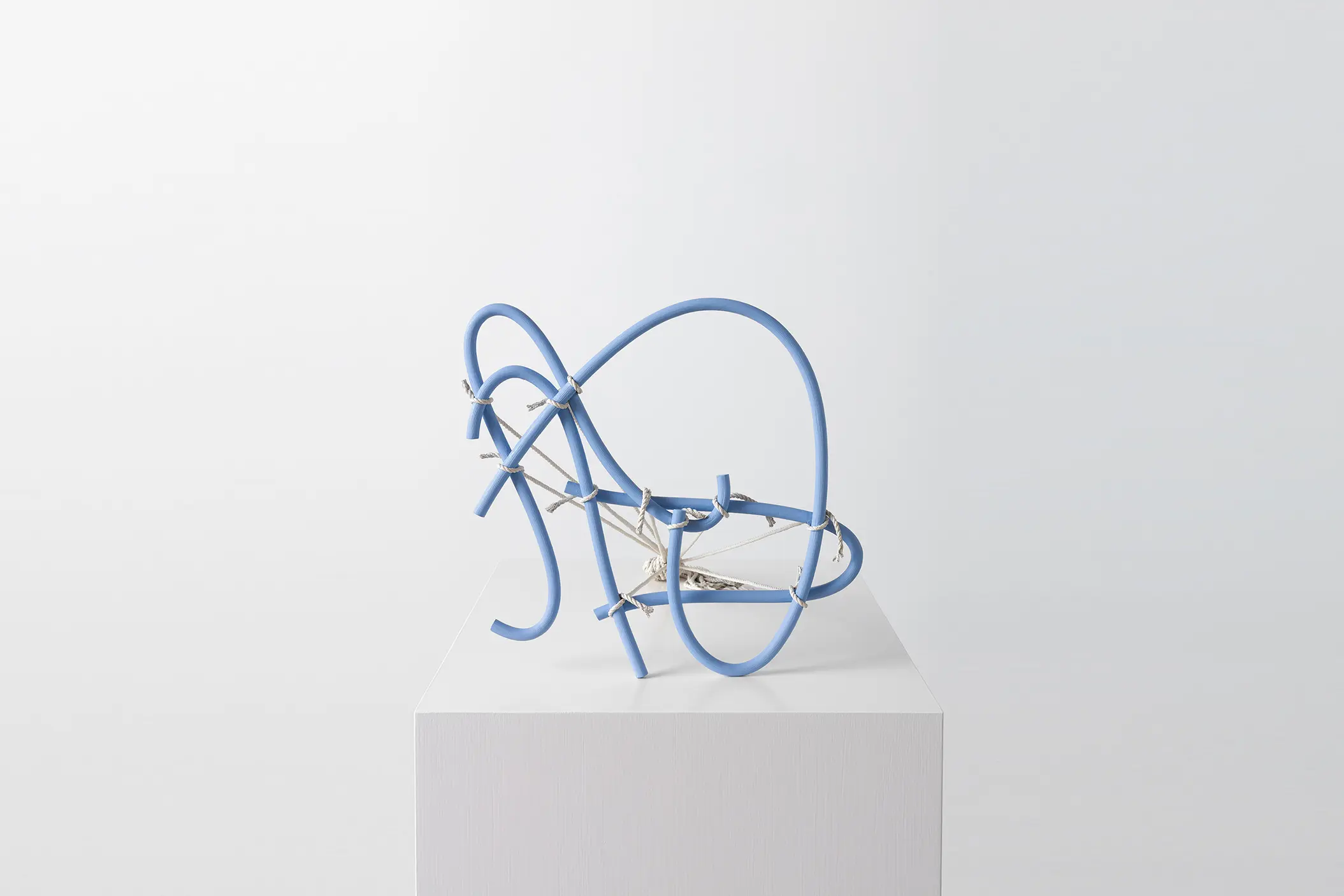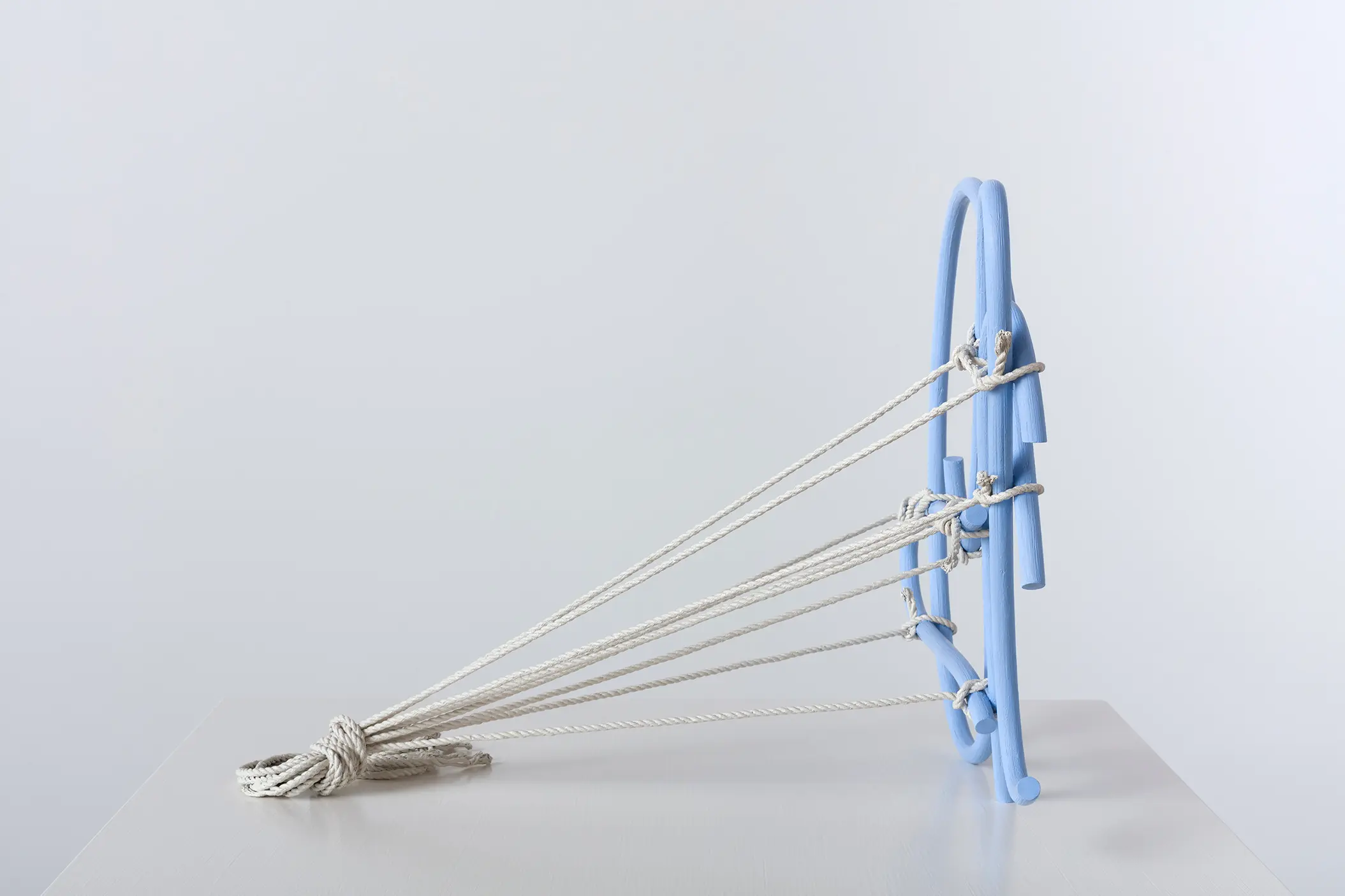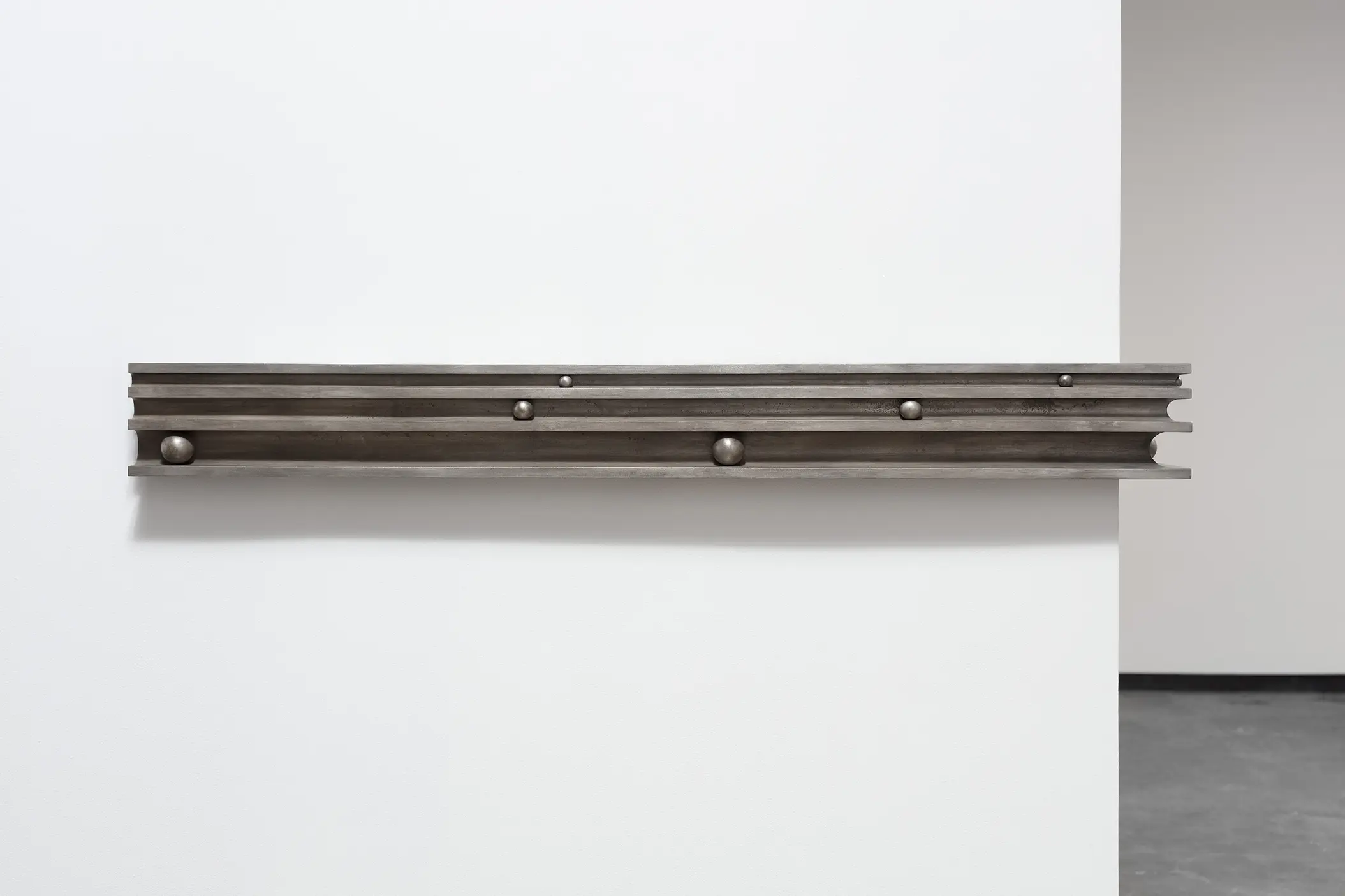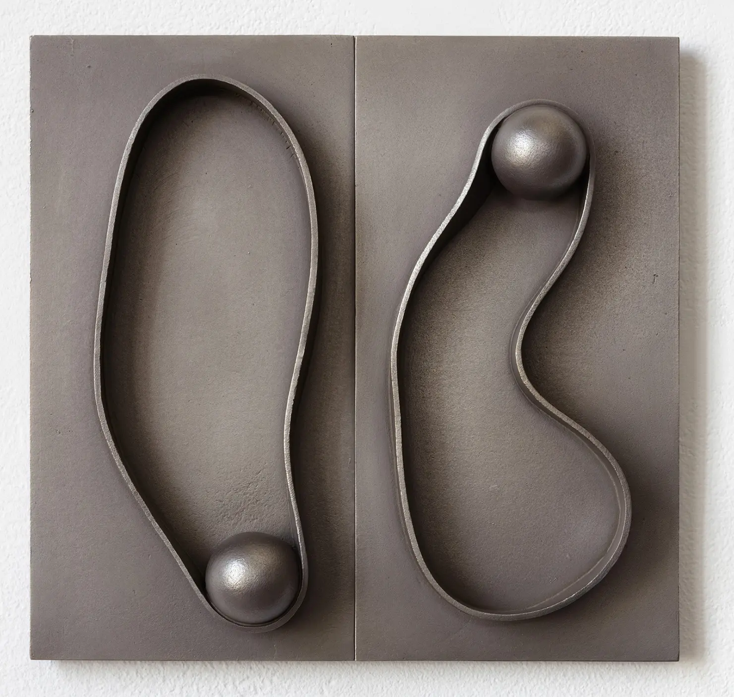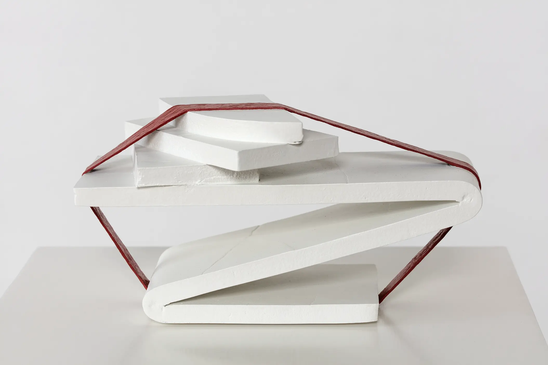 Depuis plus de vingt ans, les œuvres en bronze de Ricky Swallow explorent le processus de conversion par lequel un objet – ou une combinaison de matériaux – devient sculpture. Il part de matériaux ordinaires, domestiques – corde, bois, ruban de masquage, carton perforé –, qu’il assemble ensuite à travers des formes qui mettent en valeur les particularités et les imperfections propres à leur matérialité. Ces configurations d’objets et de textures sont ensuite reproduites avec minutie à travers des procédés analogiques : d’abord coulées en bronze, elles sont ensuite patinées ou peintes à l’huile, poursuivant leur transformation dans l’atelier. La participation directe de Swallow à ces étapes est essentielle pour maintenir un lien avec la forme finale et en conserver la maîtrise. L’apparente retenue des sculptures contraste avec leur grande complexité, tant sur le plan matériel que technique, par exemple : les fils d’une corde reproduits en métal ou les plis d’un carton qui persistent après la fonte. En ce sens, le travail de Swallow intègre de subtiles références à la peinture – en particulier à la tradition du still life néerlandais –, visibles à la fois dans la dimension figurative de son œuvre et dans ses fondements conceptuels. Mais ces références ne sont jamais littérales : l’effet de trompe-l’œil, présent dès ses premières œuvres, n’est jamais une fin en soi mais une méthode – un piège de l’attention, une stratégie pour ralentir la perception et prolonger l’expérience. Ce qui prime en définitive, c’est la dimension tactile et la présence physique des éléments sculptés où la matière semble avoir son propre comportement et son humeur, à la fois sensible et incarnée.