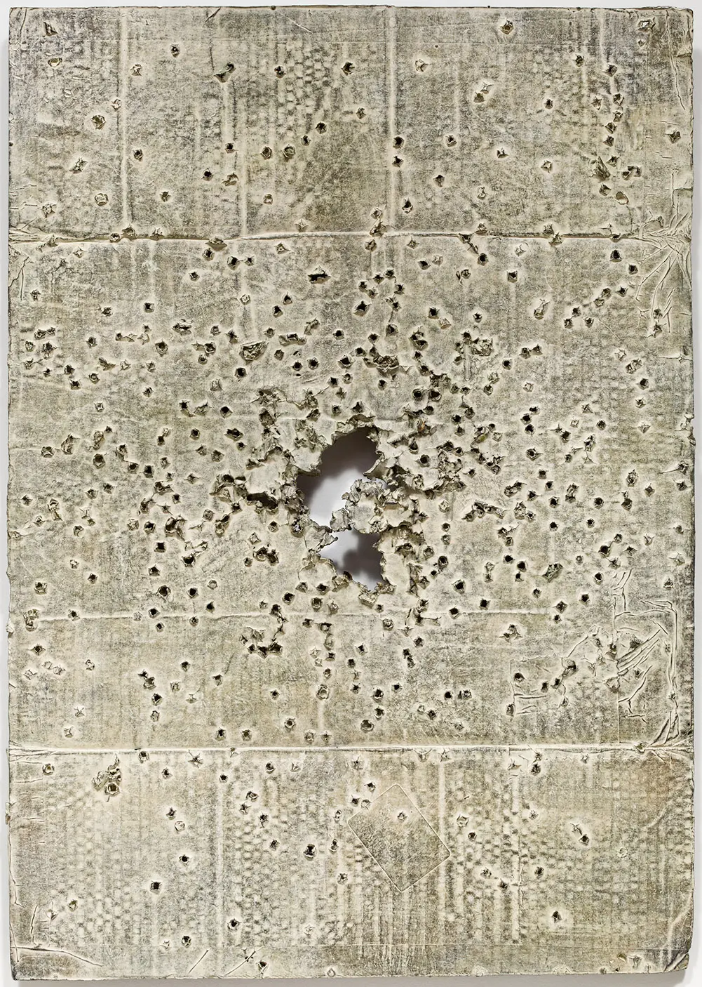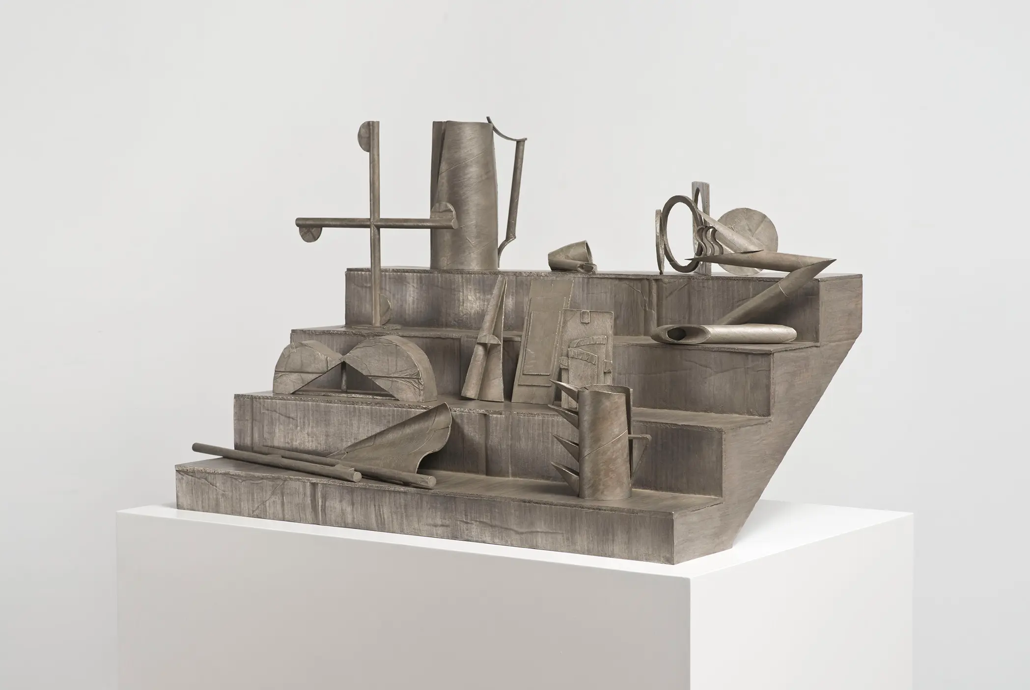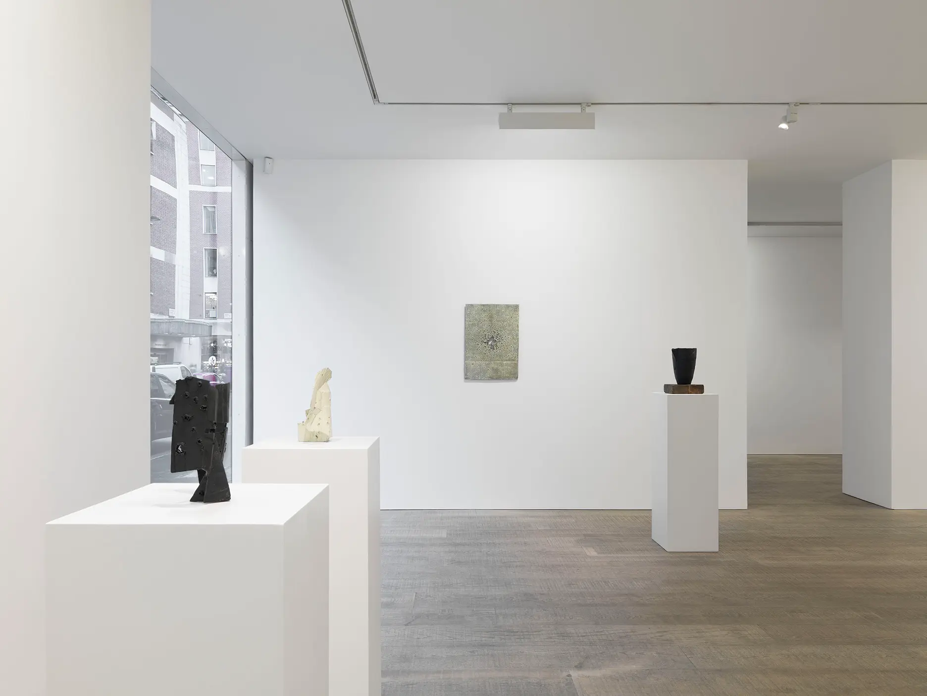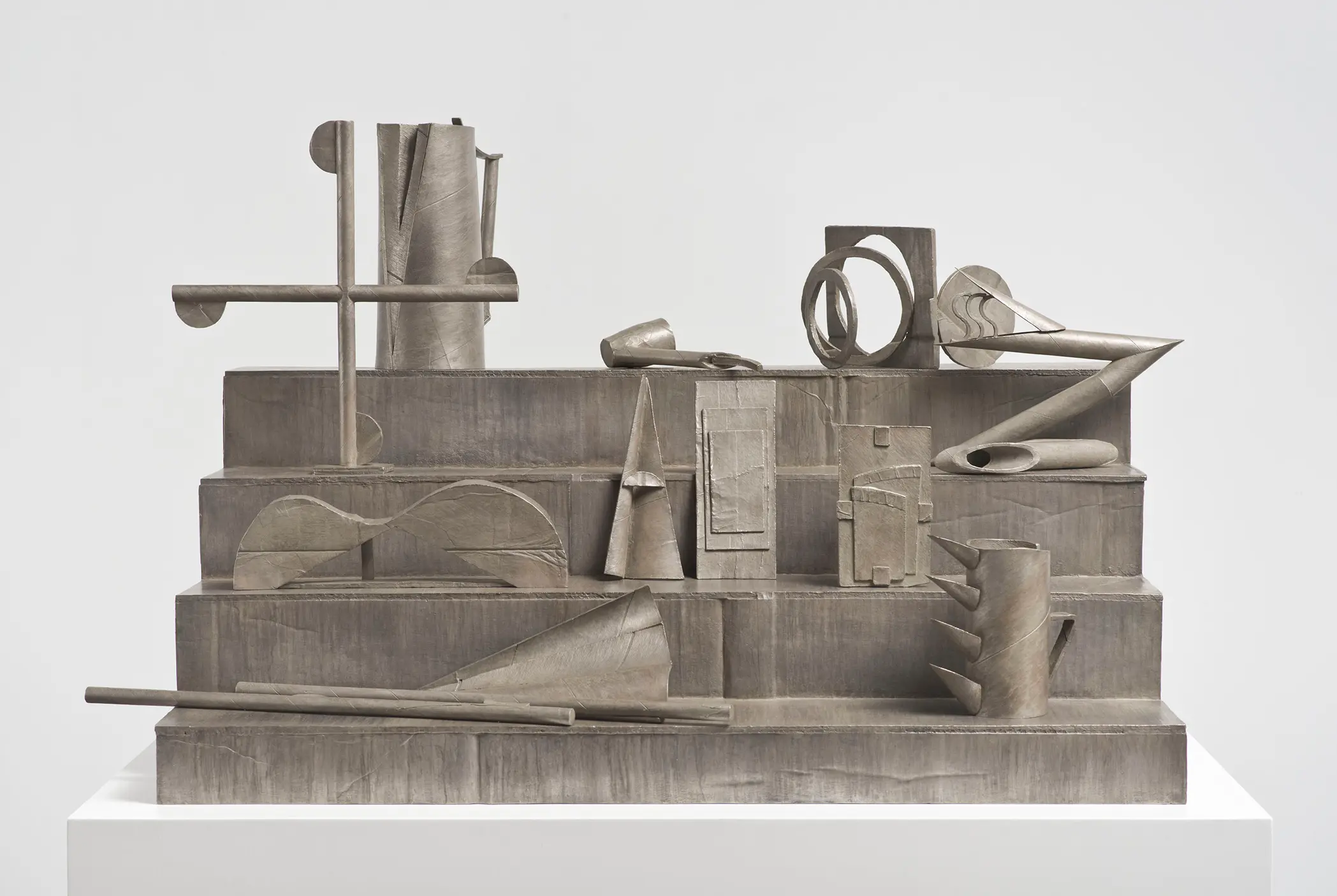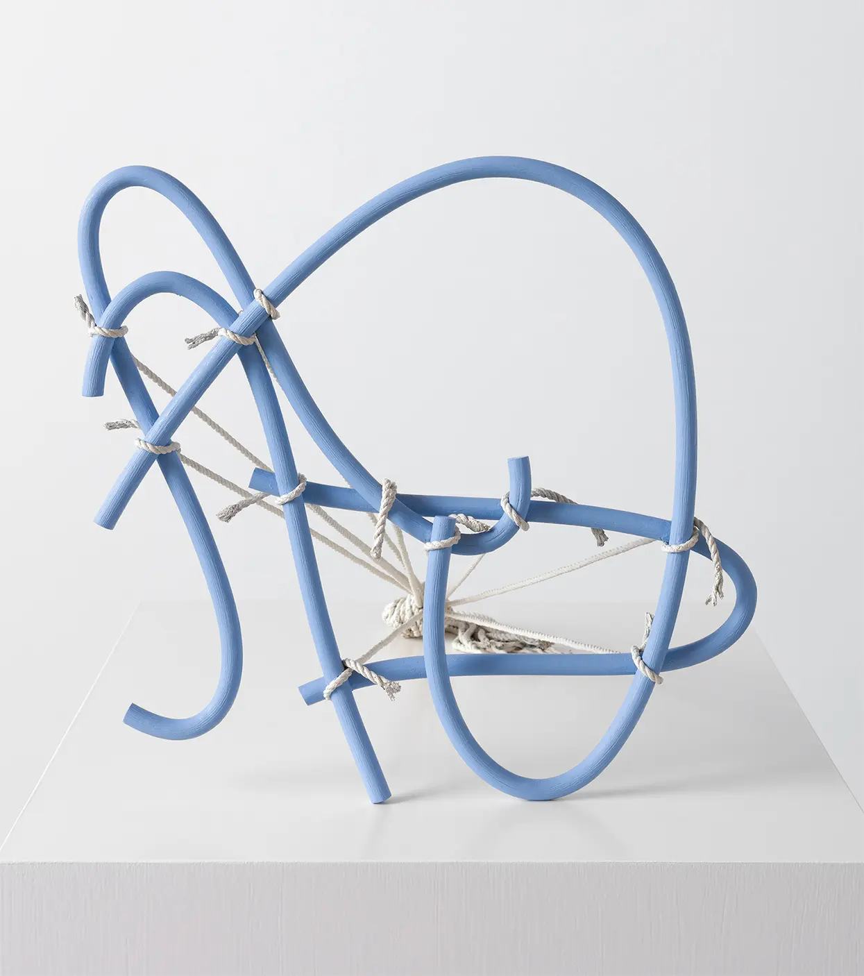 Depuis plus de vingt ans, les œuvres en bronze de Ricky Swallow explorent le processus de conversion par lequel un objet – ou une combinaison de matériaux – devient sculpture. Il part de matériaux ordinaires, domestiques – corde, bois, ruban de masquage, carton perforé –, qu’il assemble ensuite à travers des formes qui mettent en valeur les particularités et les imperfections propres à leur matérialité. Ces configurations d’objets et de textures sont ensuite reproduites avec minutie à travers des procédés analogiques : d’abord coulées en bronze, elles sont ensuite patinées ou peintes à l’huile, poursuivant leur transformation dans l’atelier. La participation directe de Swallow à ces étapes est essentielle pour maintenir un lien avec la forme finale et en conserver la maîtrise. L’apparente retenue des sculptures contraste avec leur grande complexité, tant sur le plan matériel que technique, par exemple : les fils d’une corde reproduits en métal ou les plis d’un carton qui persistent après la fonte. En ce sens, le travail de Swallow intègre de subtiles références à la peinture – en particulier à la tradition du still life néerlandais –, visibles à la fois dans la dimension figurative de son œuvre et dans ses fondements conceptuels. Mais ces références ne sont jamais littérales : l’effet de trompe-l’œil, présent dès ses premières œuvres, n’est jamais une fin en soi mais une méthode – un piège de l’attention, une stratégie pour ralentir la perception et prolonger l’expérience. Ce qui prime en définitive, c’est la dimension tactile et la présence physique des éléments sculptés où la matière semble avoir son propre comportement et son humeur, à la fois sensible et incarnée.