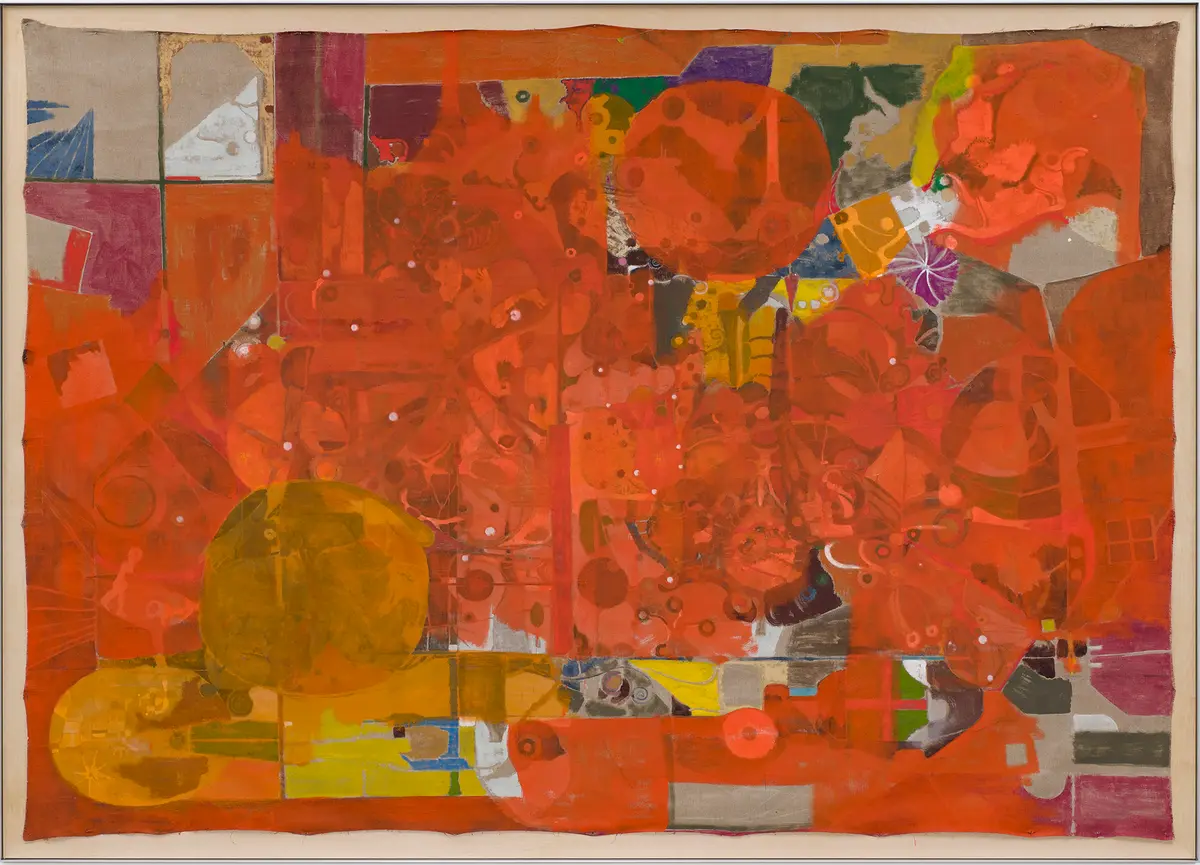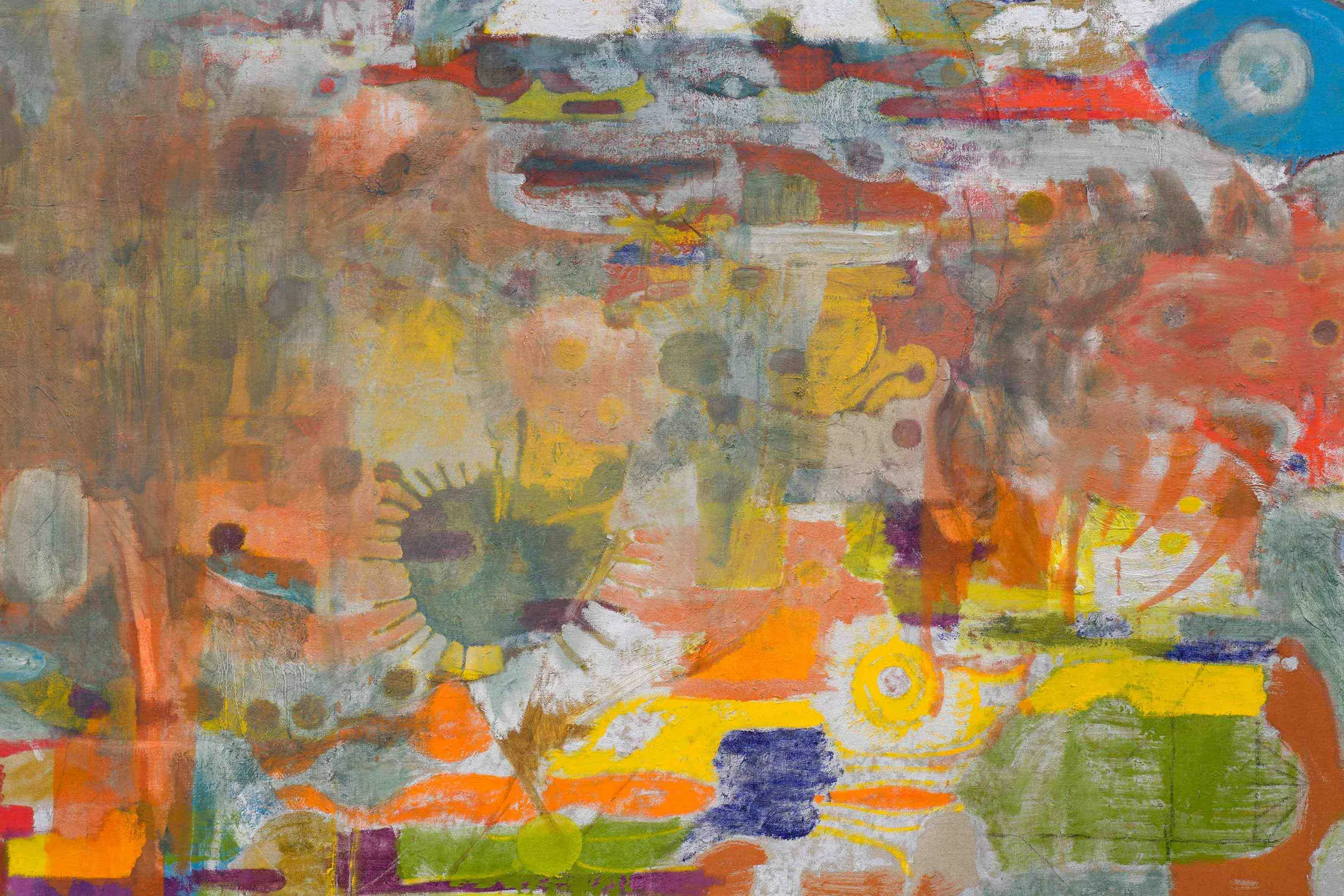 Caguiat began making the paintings for which he is well known on the wall of a studio apartment in Chinatown in New York. He was laid up after an accident and on crutches for weeks, his leg turning a shocking violet color. They began at one scale because it was the largest possible dimension available to him on the only open wall. They grew larger and nearly square to match the next wall available to him, larger still on the following, monumentally large in an Oakland warehouse ... The paintings, rolled up, have traveled with him on bicycles, in subways, taxis, borrowed cars. This is why they are unstretched. No critic or historian wants to know that the kernel of a lodestar was formed by circumstance, but they should.