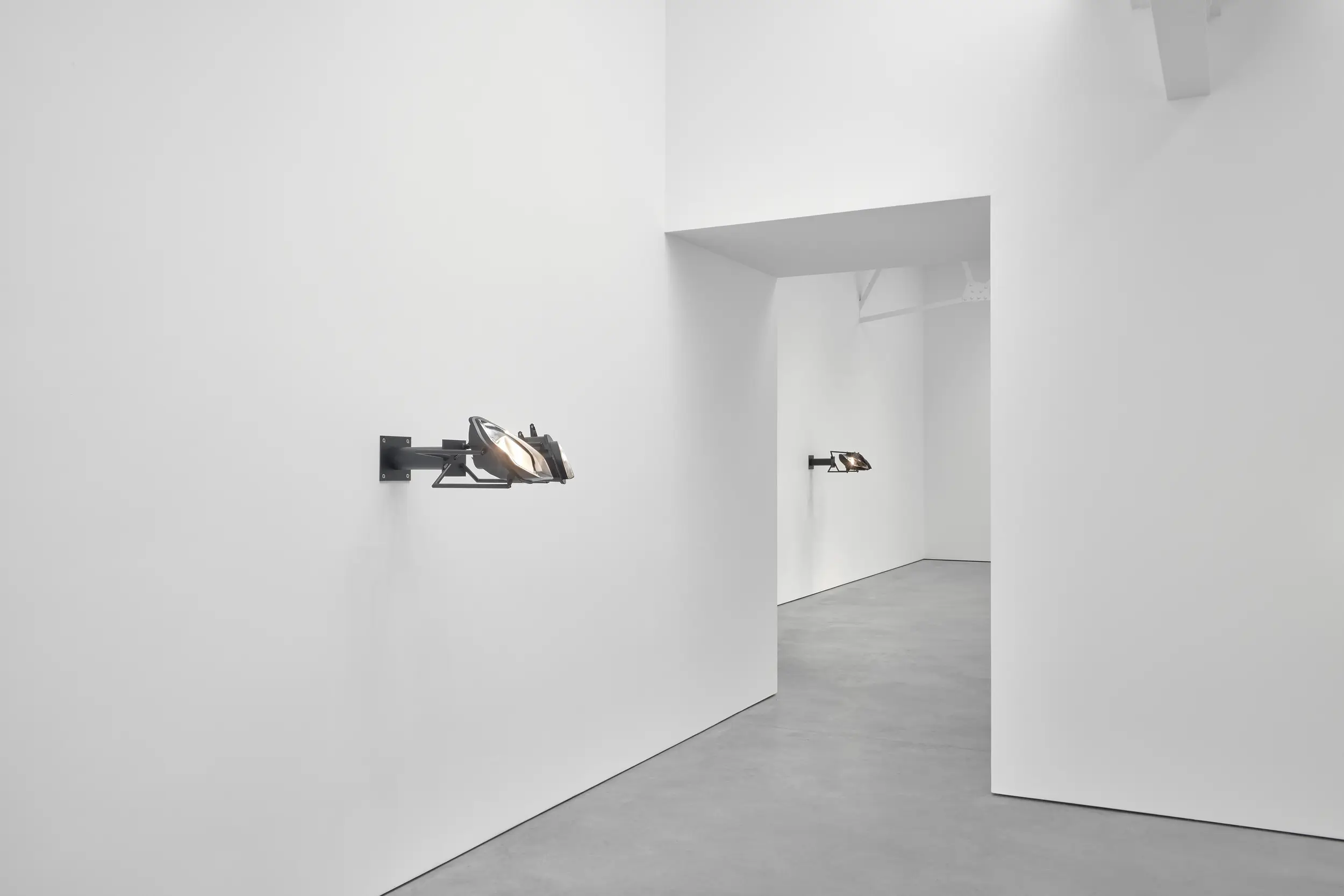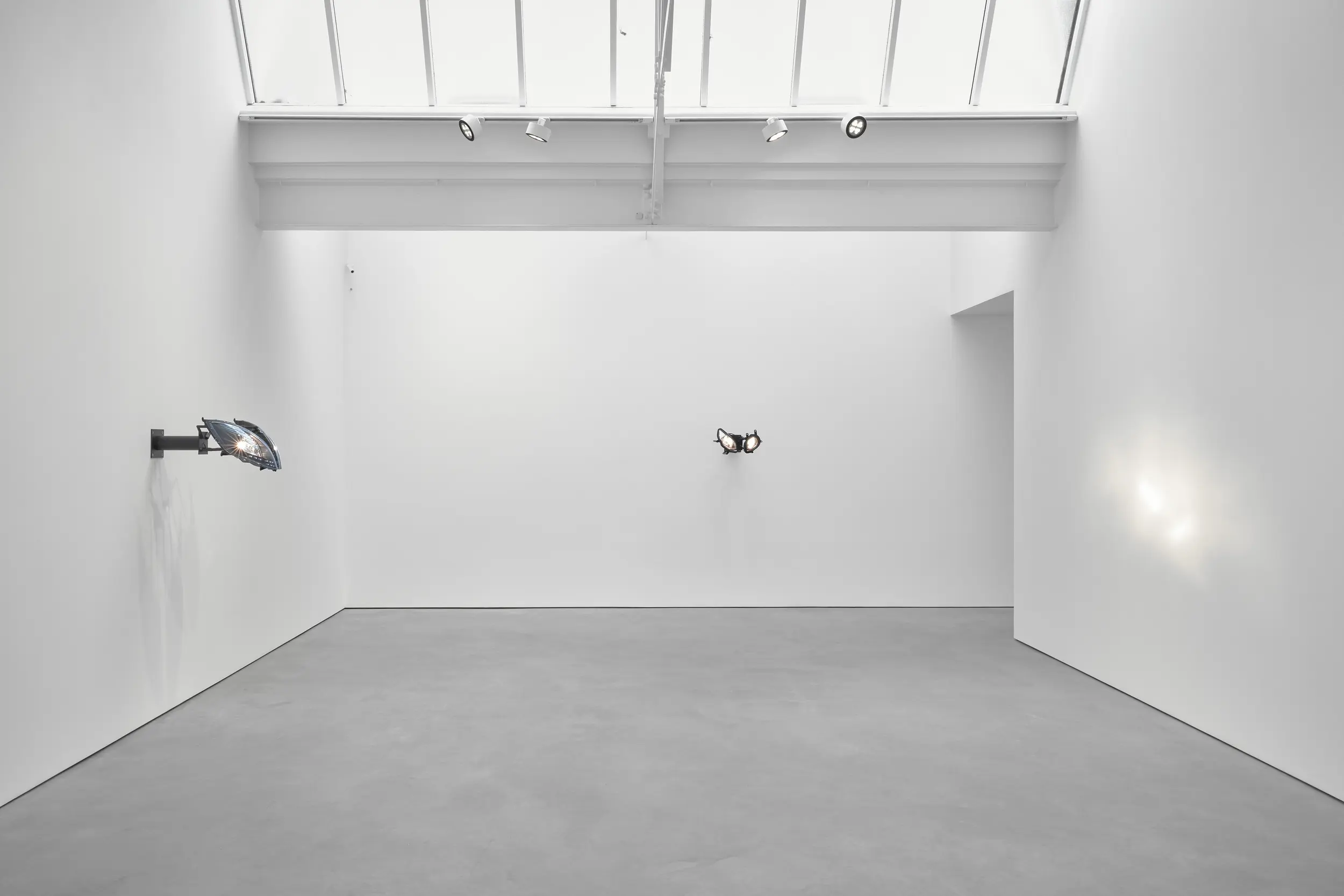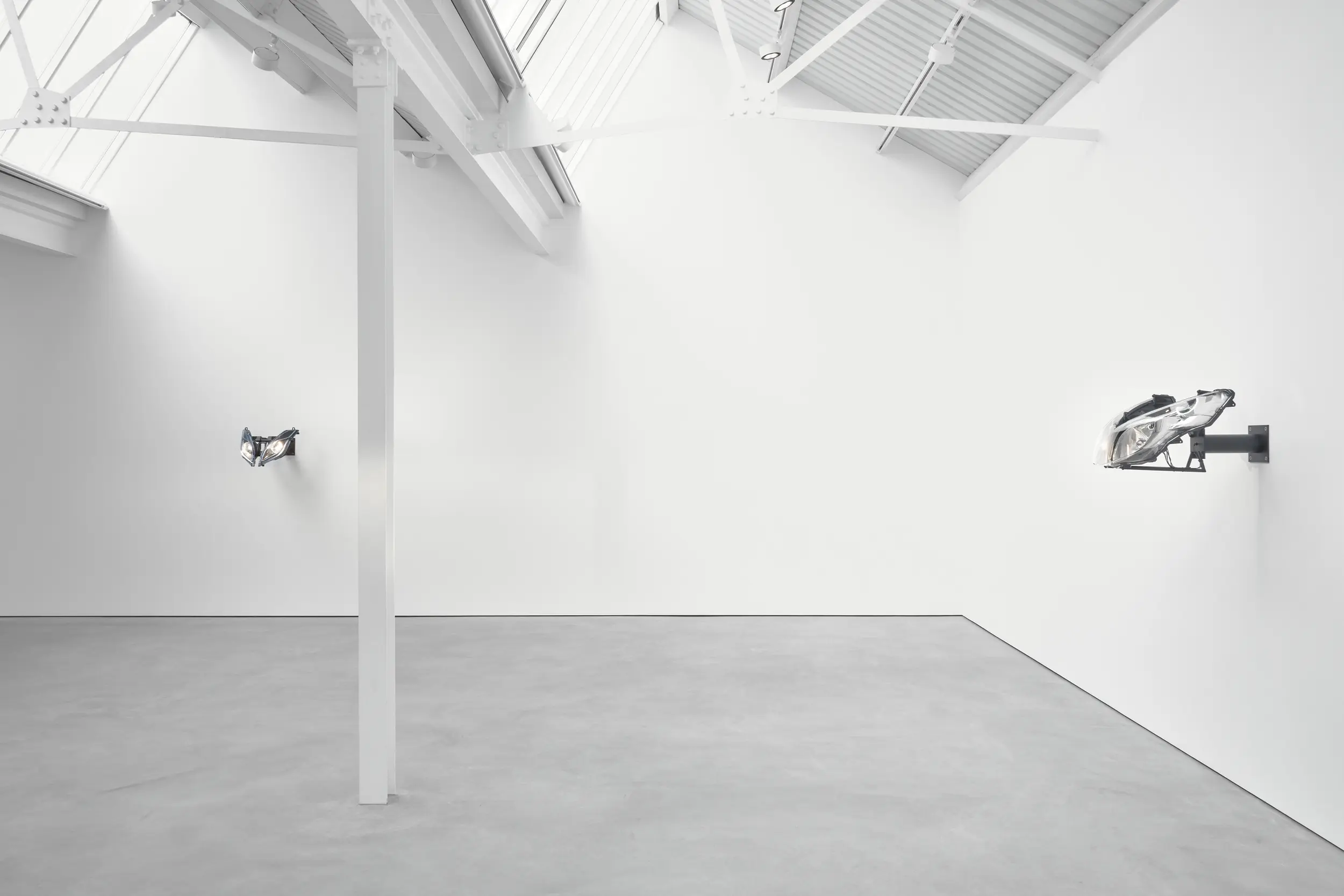 This exhibition at Modern Art consists of wall-mounted lamps made from scooter headlights.