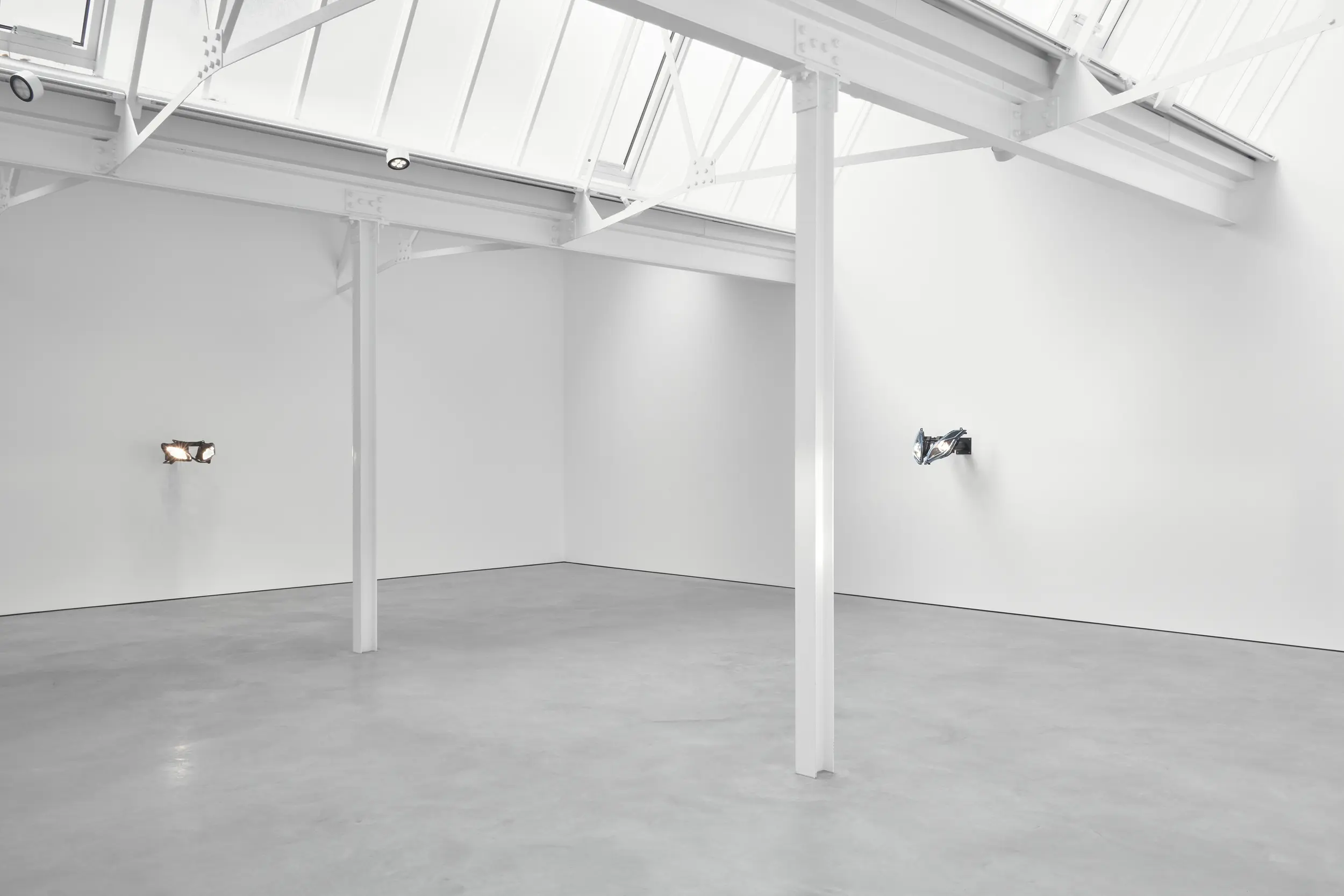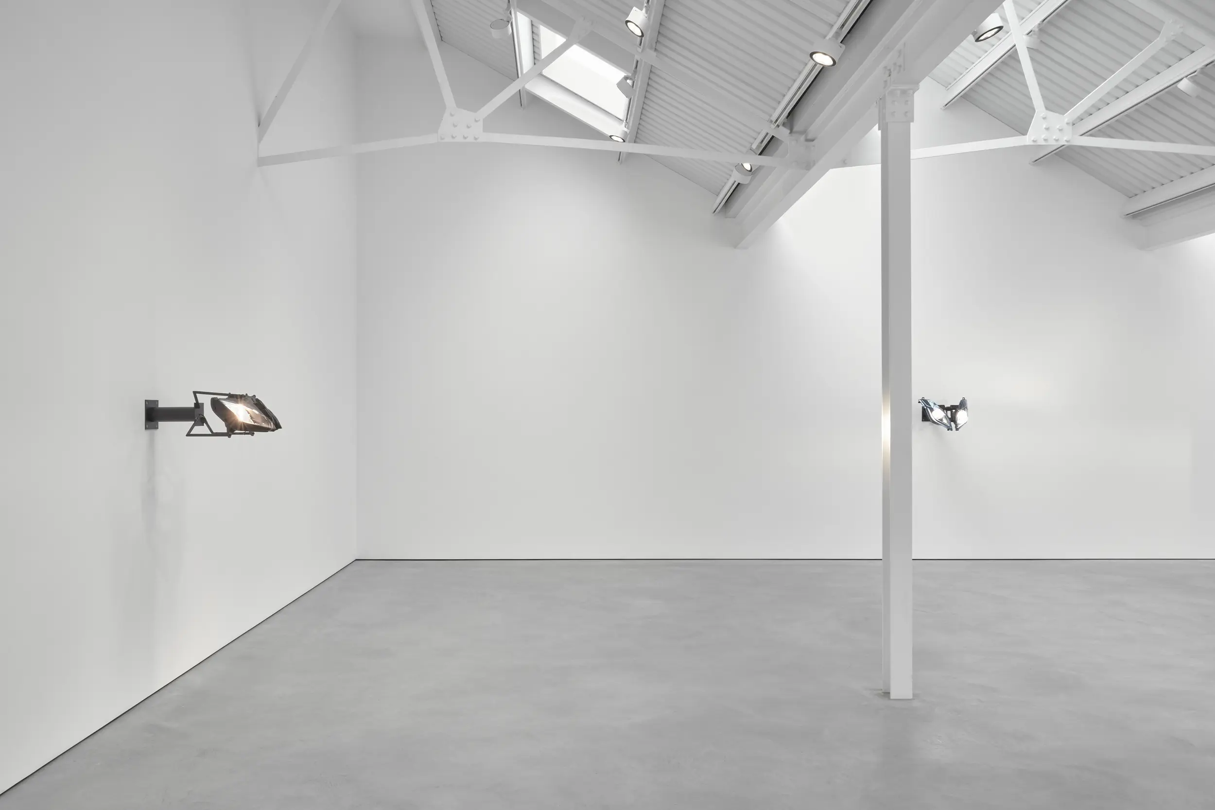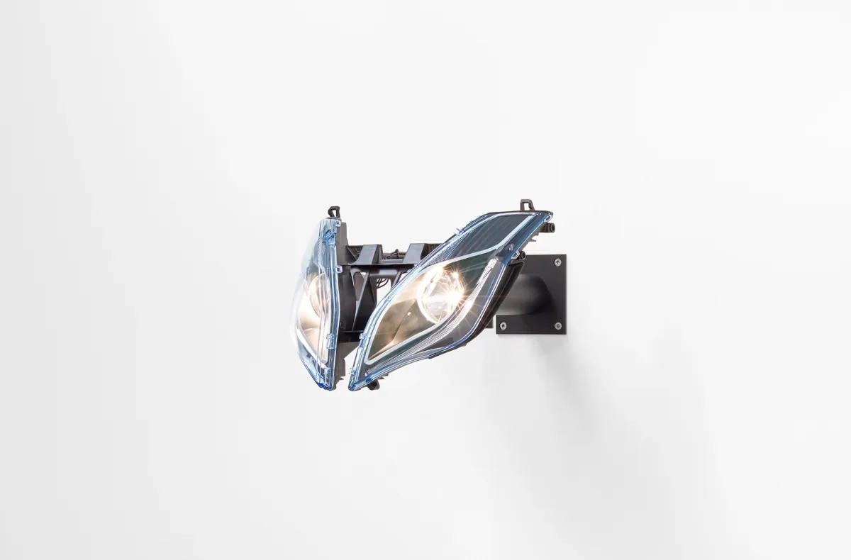 This exhibition at Modern Art consists of wall-mounted lamps made from scooter headlights.