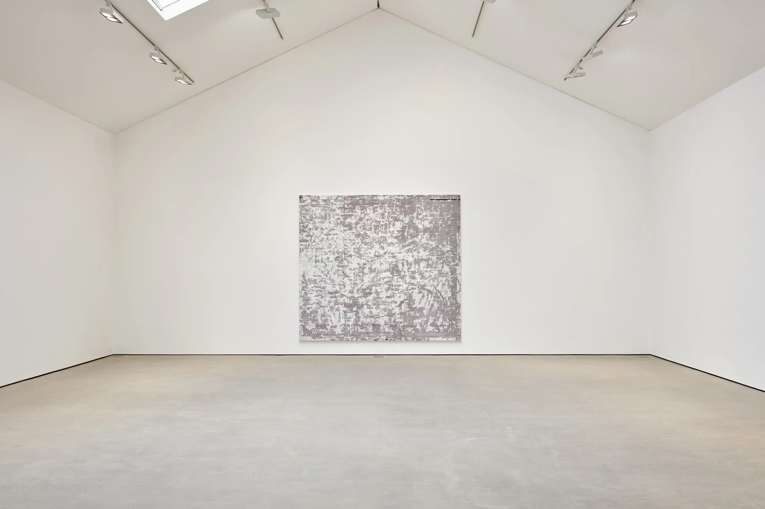 In her new body of work for Modern Art, Humphries has scanned her own paintings made over the past decade and generated each of their scans into ASCII (American Standard Code for Information Interchange). This data has then been rendered into a set of stencils used to transfer the code onto the canvas via thick layers of paint applied by hand, then overlaid with further mark-making. The resulting body of work is heavily layered and multi-faceted, with Humphries’ own hand lying in tension with the mechanical and numerical processes that form its foundation. In these latest paintings, Humphries explores the abstract possibilities of the reproduction of code, and by using facsimiles of previous works she renders new paintings whose emotive content contains traces of memory and ghosts in the process of their translation.