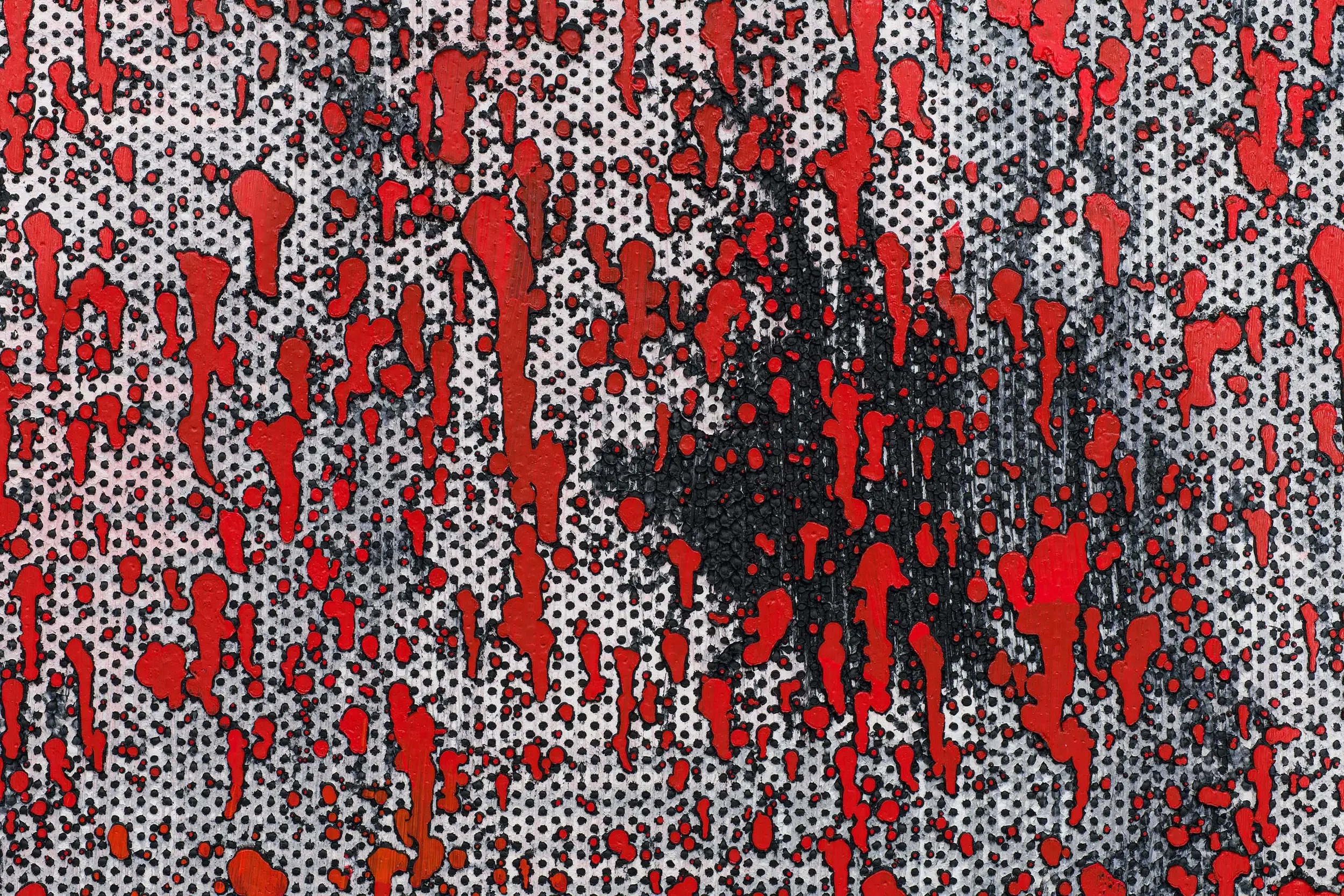 Over the past four decades, Jacqueline Humphries has been working through the question of what contemporary abstract painting can mean in a society mediated online. Excavating the limits of her medium, Humphries generates a density of languages, forms and gestures native not only to the history of painting but also the codes and aesthetic registers that belong to the endless scroll of data and commerce on the flat cold surfaces of screens. Using stencils, fluorescent paint and black light, to name a few of her materials, Humphries’ work revels in its playful profanity, the pleasure of its sheer materiality seeping from its surface. Humphries describes her search as one for “a kind of psychological hook, as if there’s almost suspense or a sense of something wrong”. This nameless sensation creeps across much of her oeuvre; her large-scale, commanding paintings inviting close inspection, while at the same time eluding and confusing the ways in which their surfaces were worked by Humphries herself.