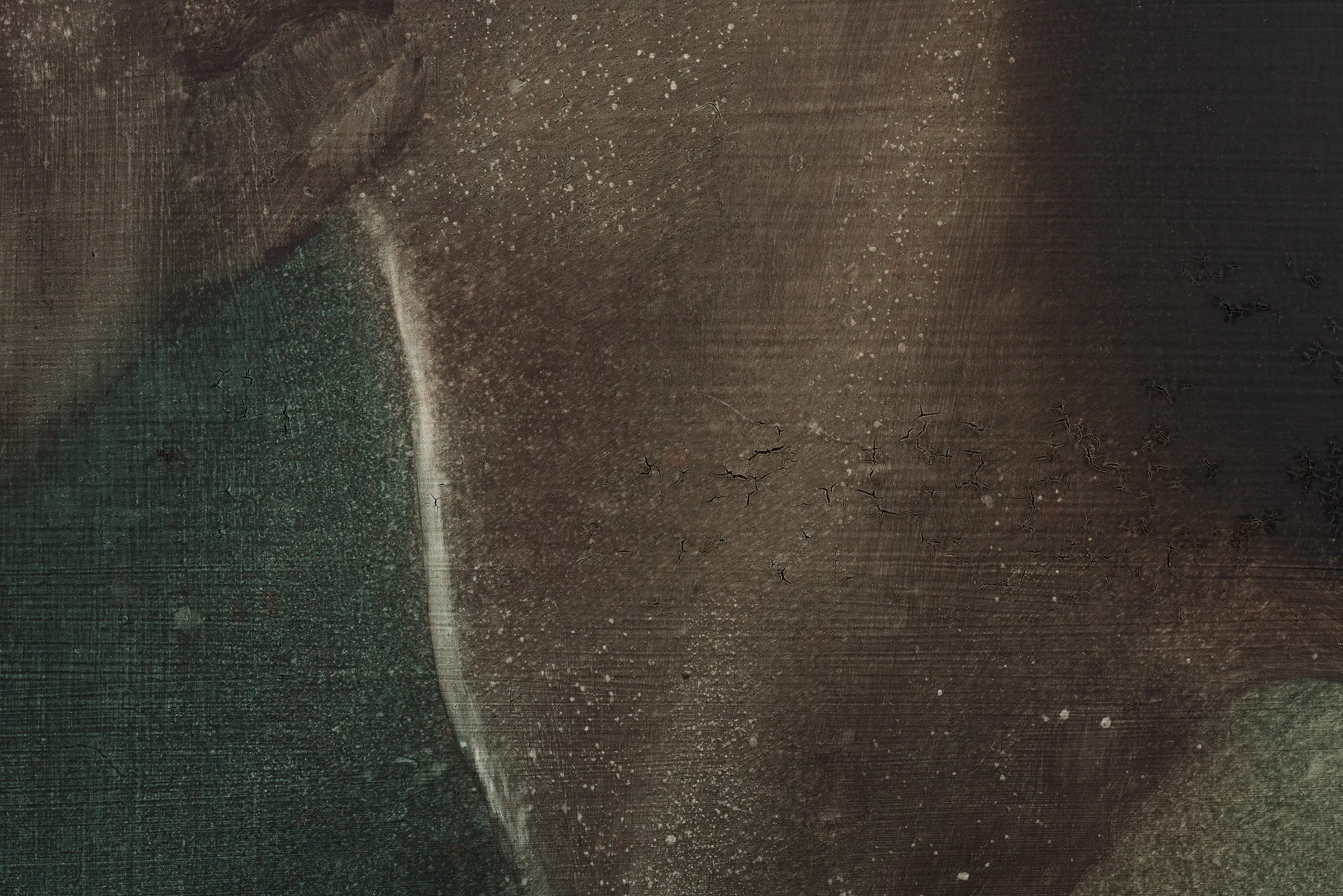 Along with the layers of gesso, there are almost always layers upon layers of paintings underneath the finished works. Yaeger doesn’t ever erase back to white, instead muddling the color down to a red-brown hue—“a ground like the one Titian would have used,” he says. For some canvases, the artist will work directly on that ground, and for others he will again apply layers of gesso.